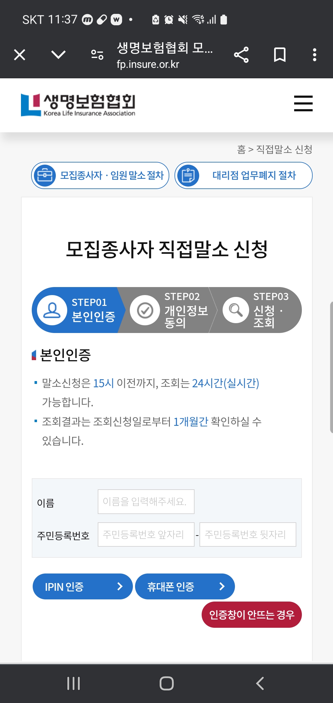 본인인증을 합니다.
