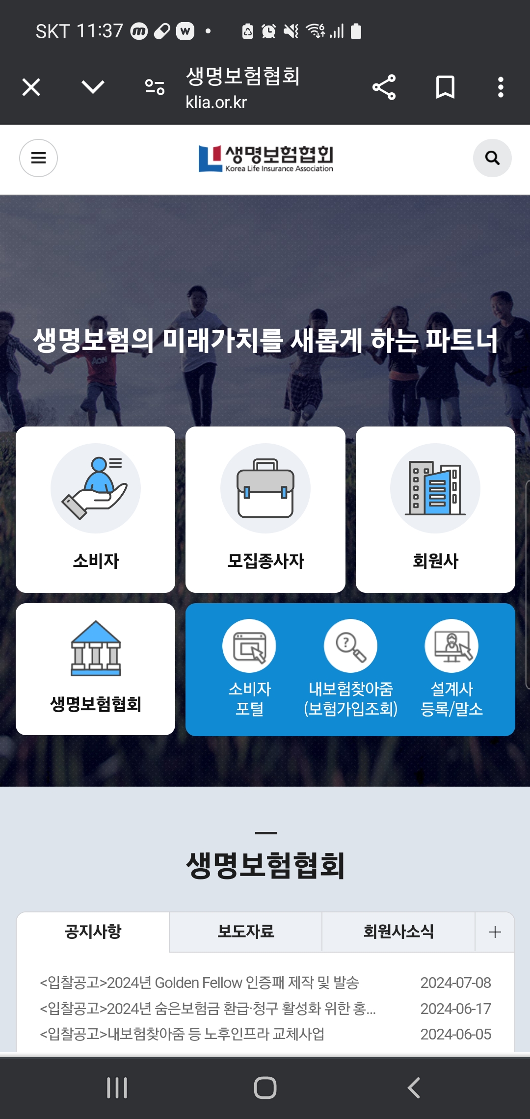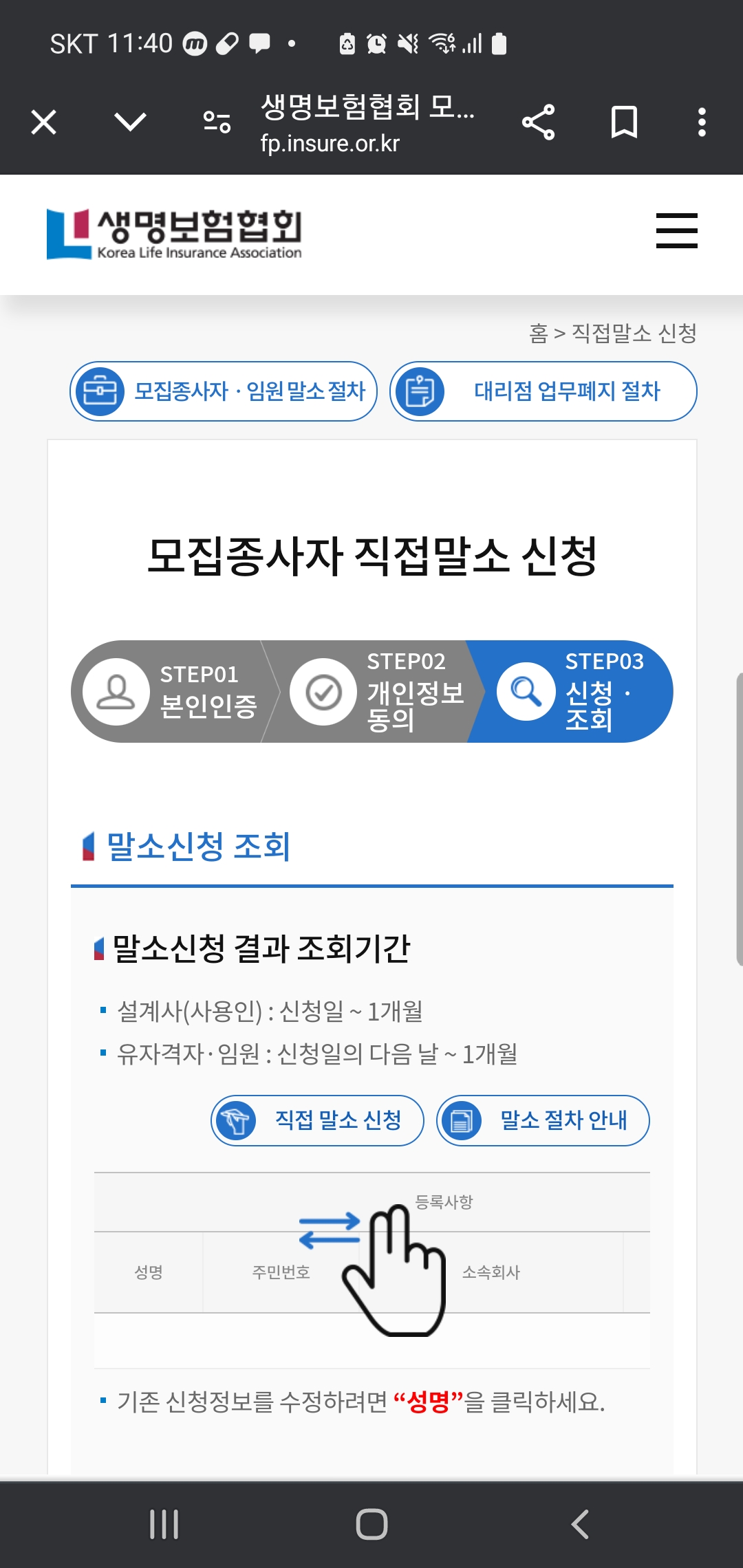 내용증명을 보내고, 드디어 11일째가 되는 날입니다. 직접말소를 하기 위해 생명보험협회 홈페이지로 들어갑니다.