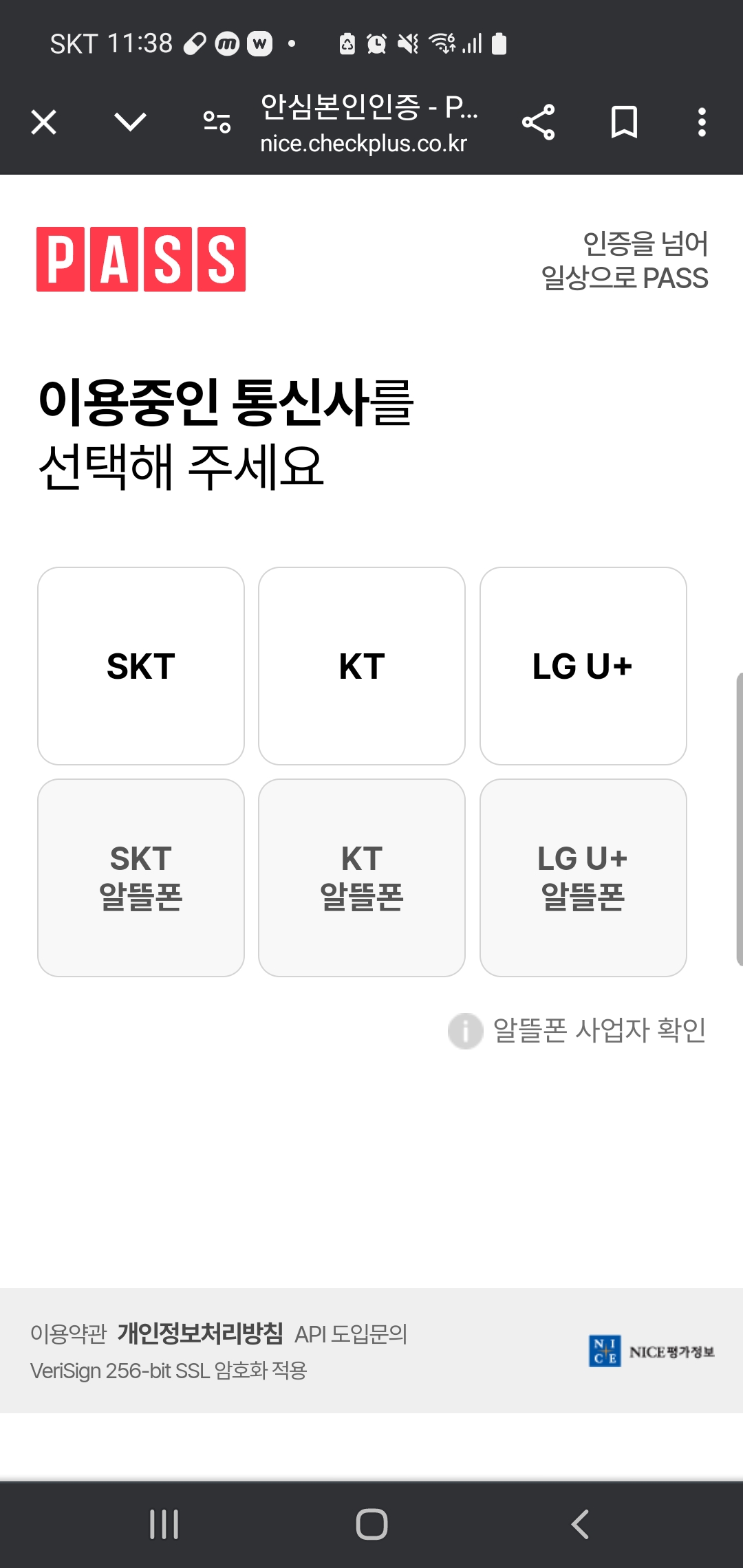 휴대폰통신사를 선택합니다.