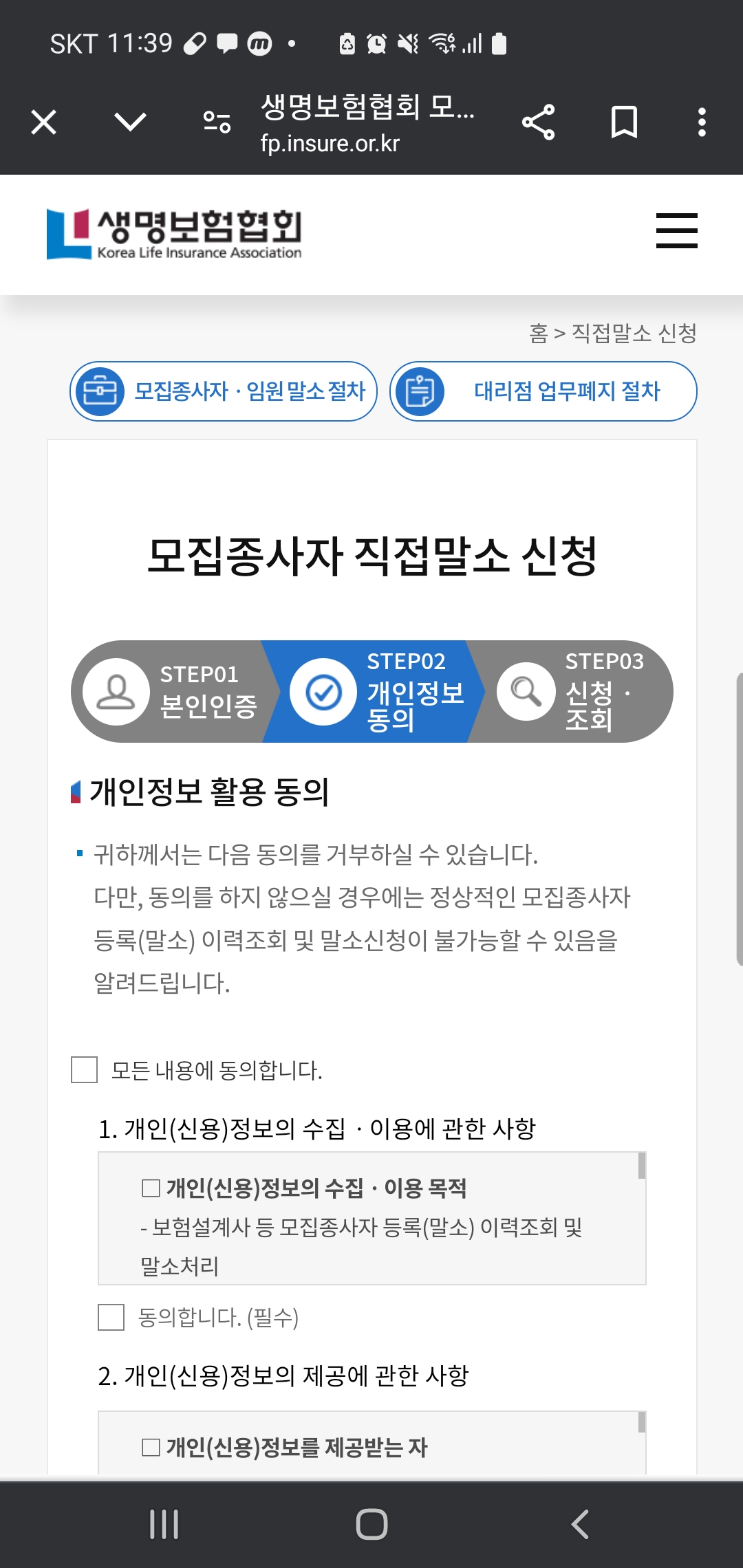 개인정보를 동의를 해주고요.