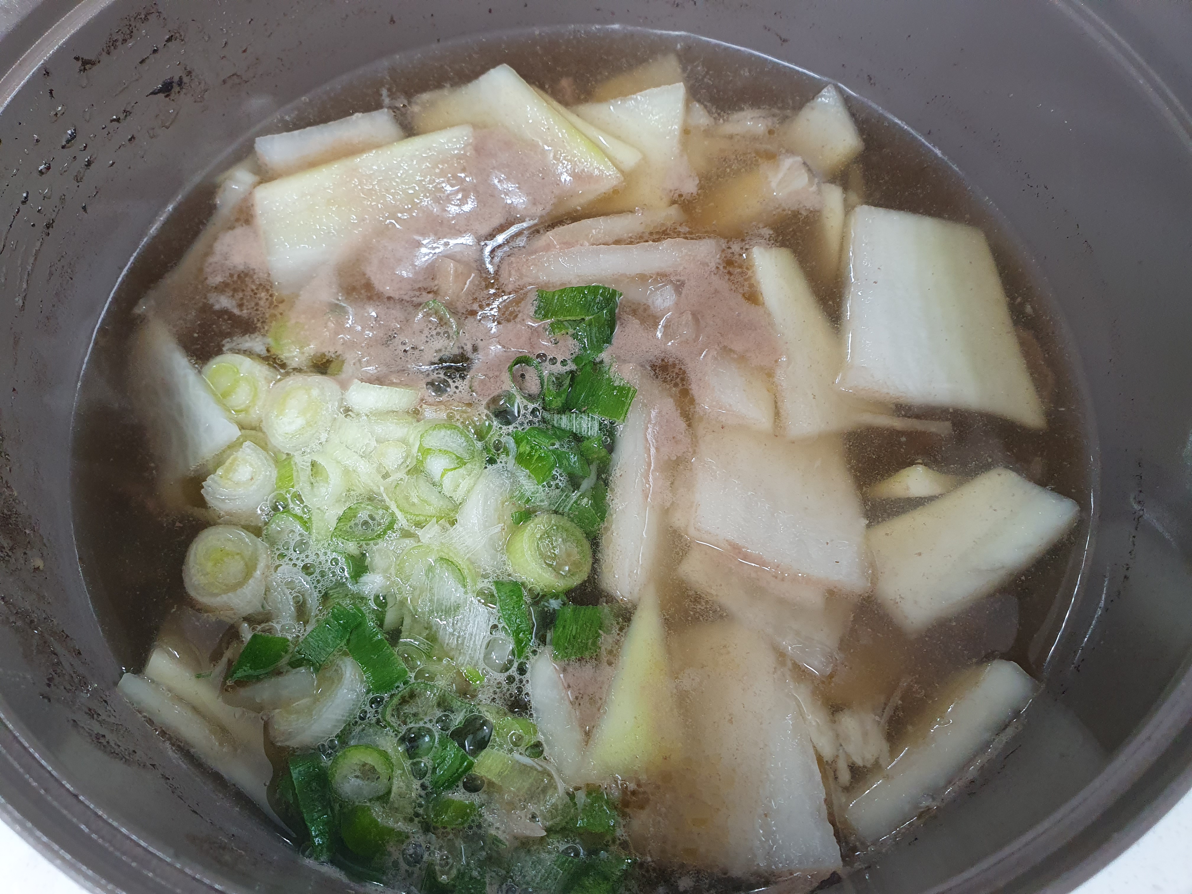 무는 냉장고에 있던 무를 사용했습니다. 너무 두껍게 썰지 않았구요.