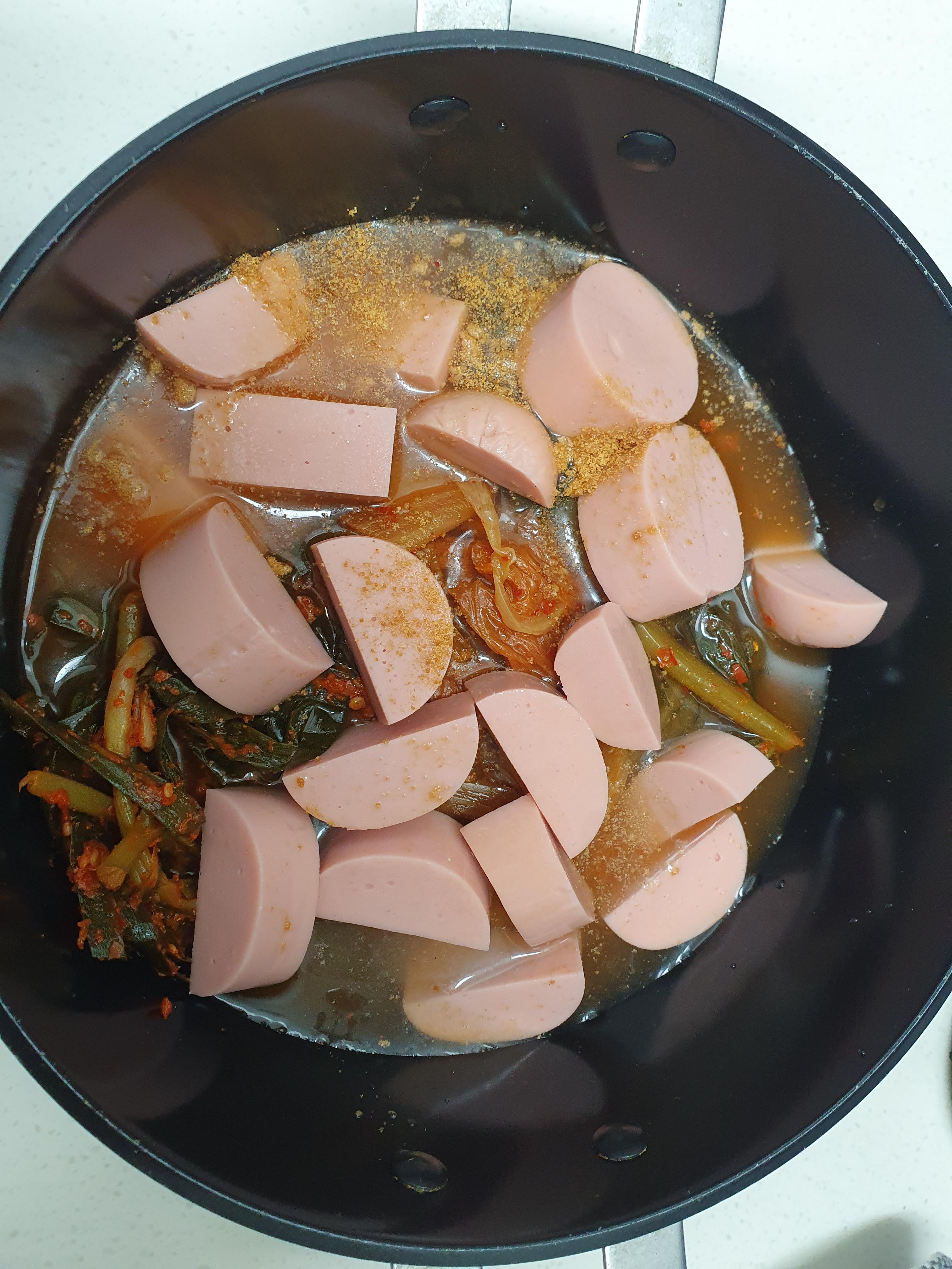 냉장고에 유통기한이 오늘까지인 소시지가 하나 있었습니다. 오늘 다 먹어야 할 거 같아서 소시지김치찌개와 소시지부침을 만들어 보기로 했습니다.