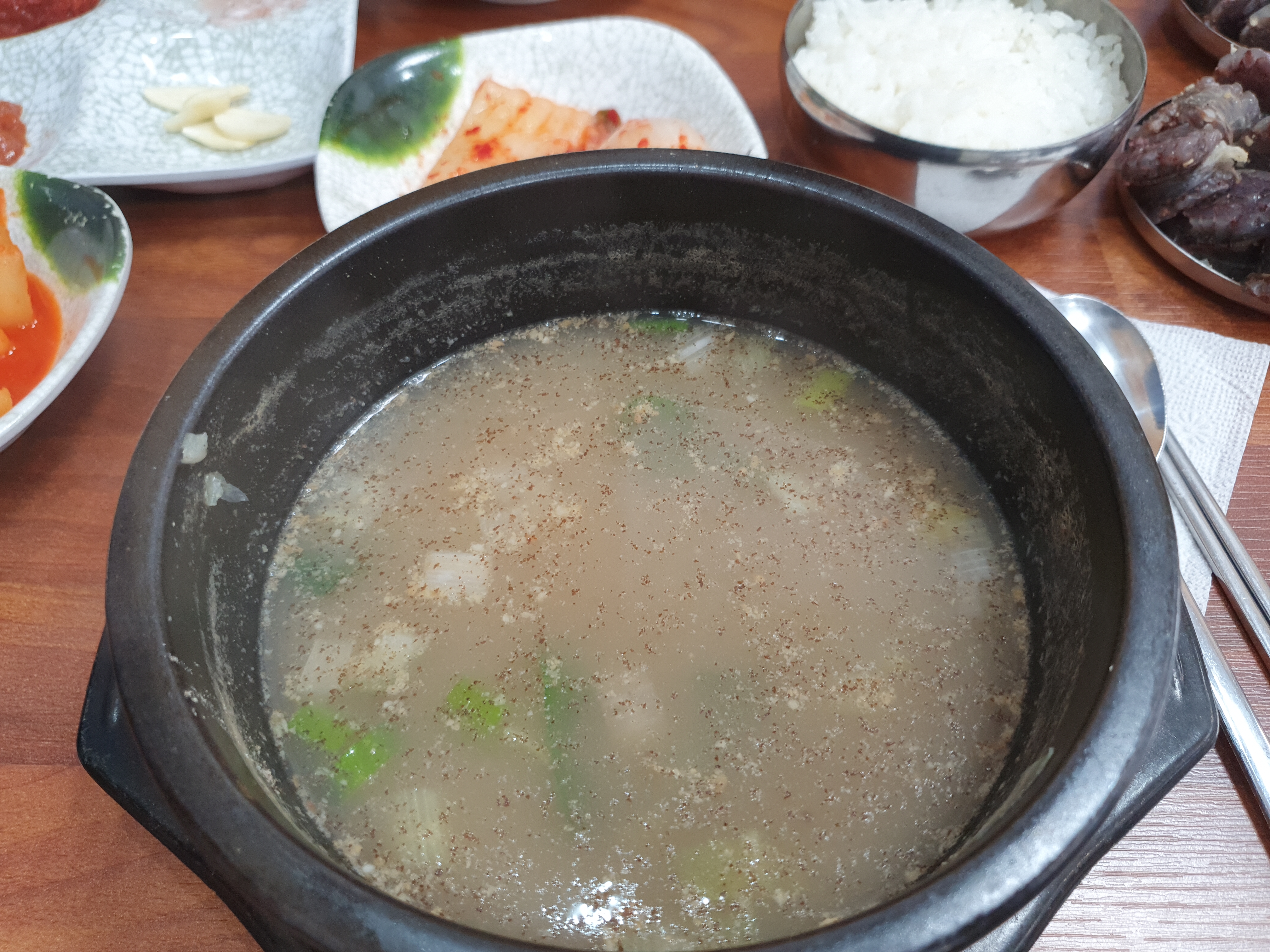 그리고 순대국에 들깨를 많이 부었습니다.