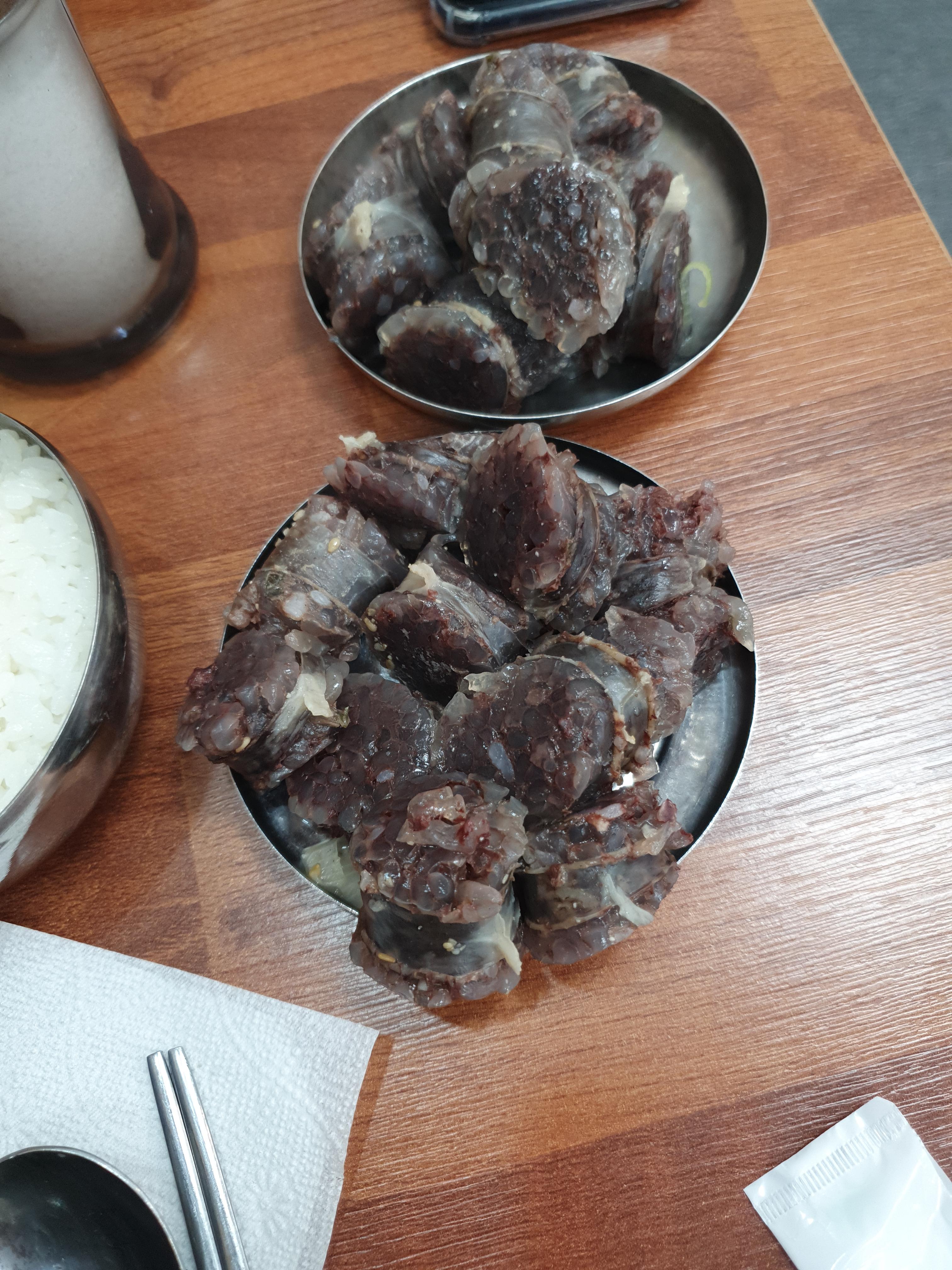 순대국밥 맛있게 다 먹었습니다. 그리고 식은 순대를 또 먹습니다.