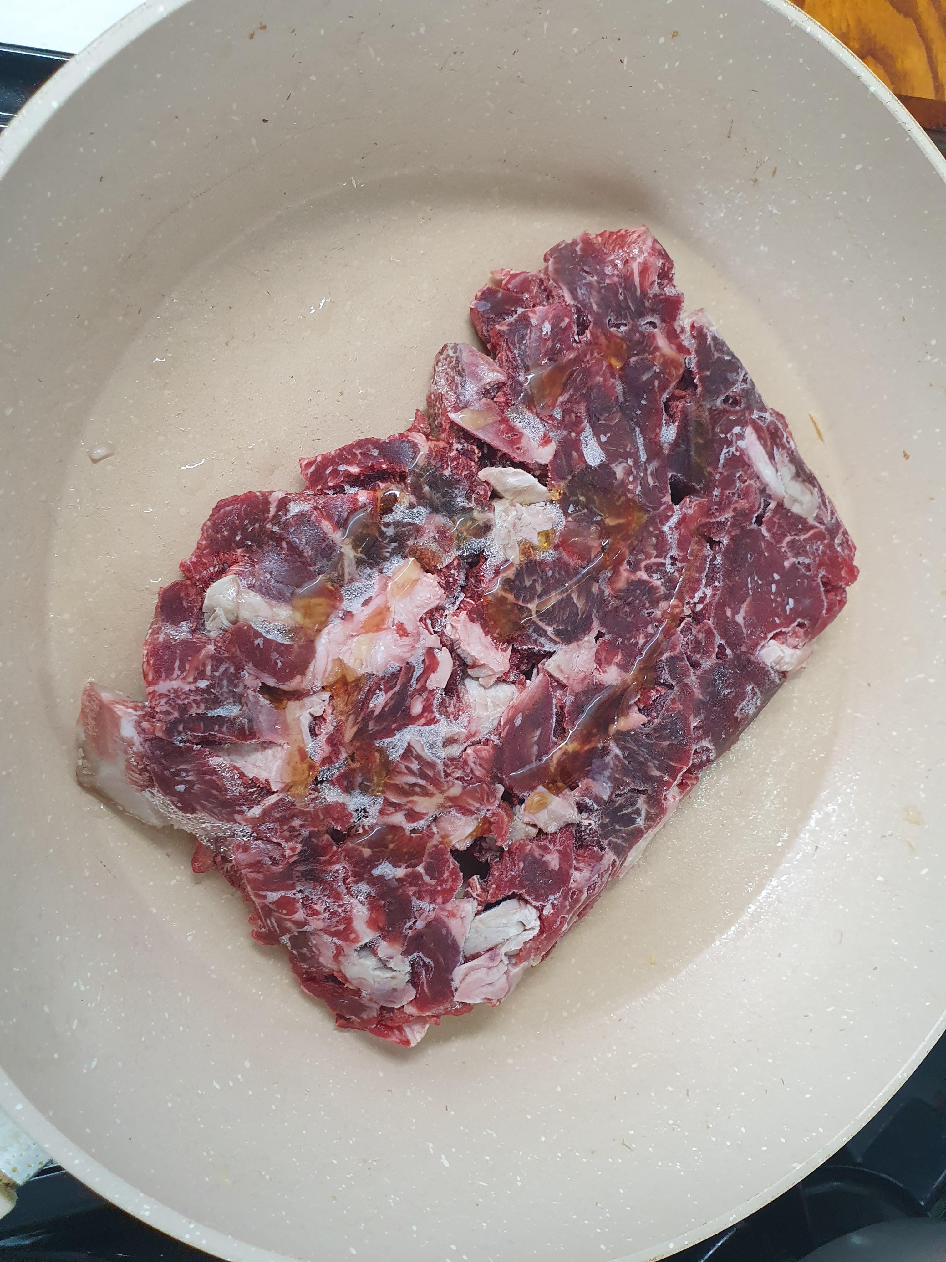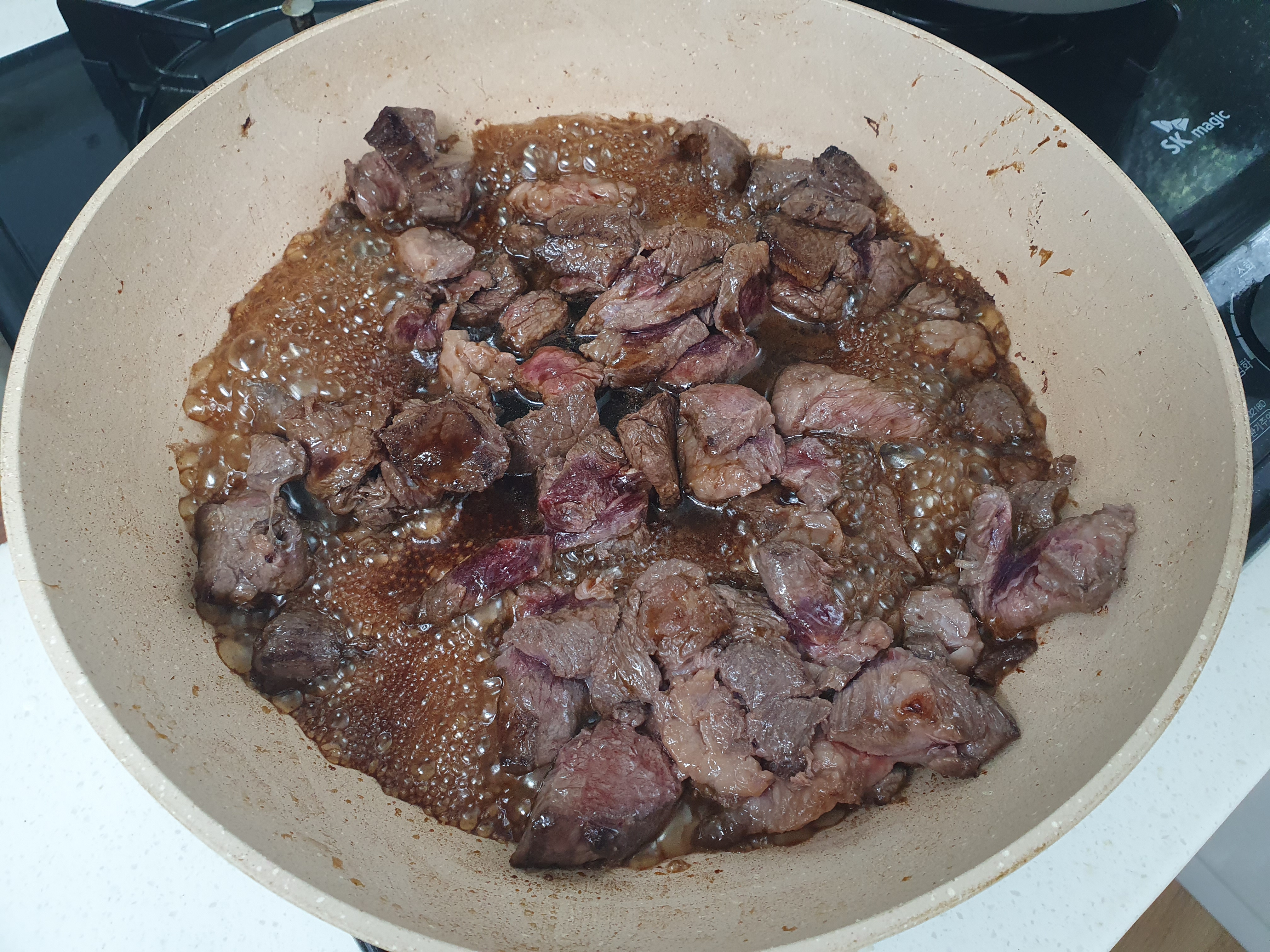 소고기가 반정도 익으면 간장으로 간을 해줍니다.