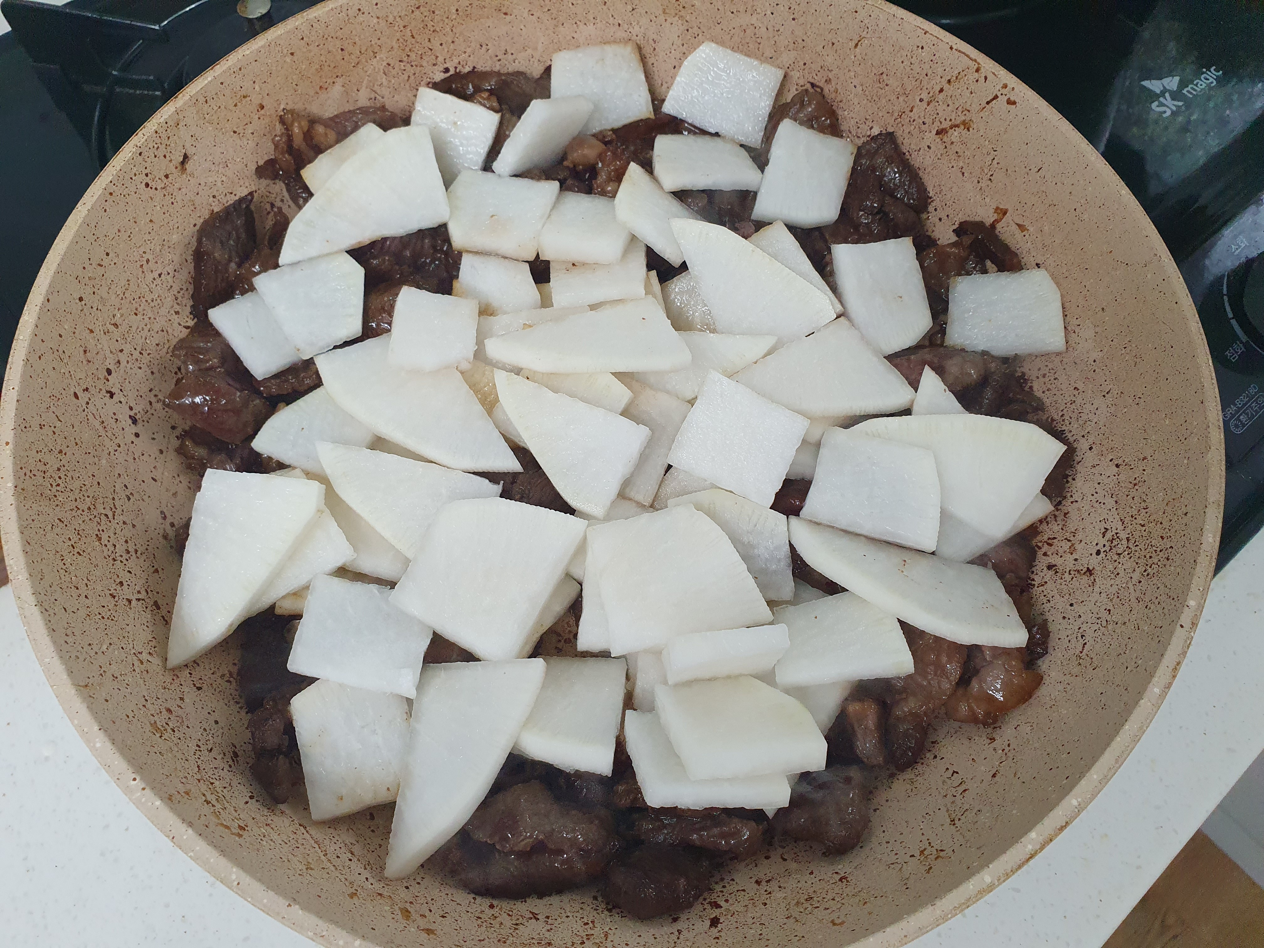 그리고 여기에 무도 넣어 주면서 볶아 줍니다.