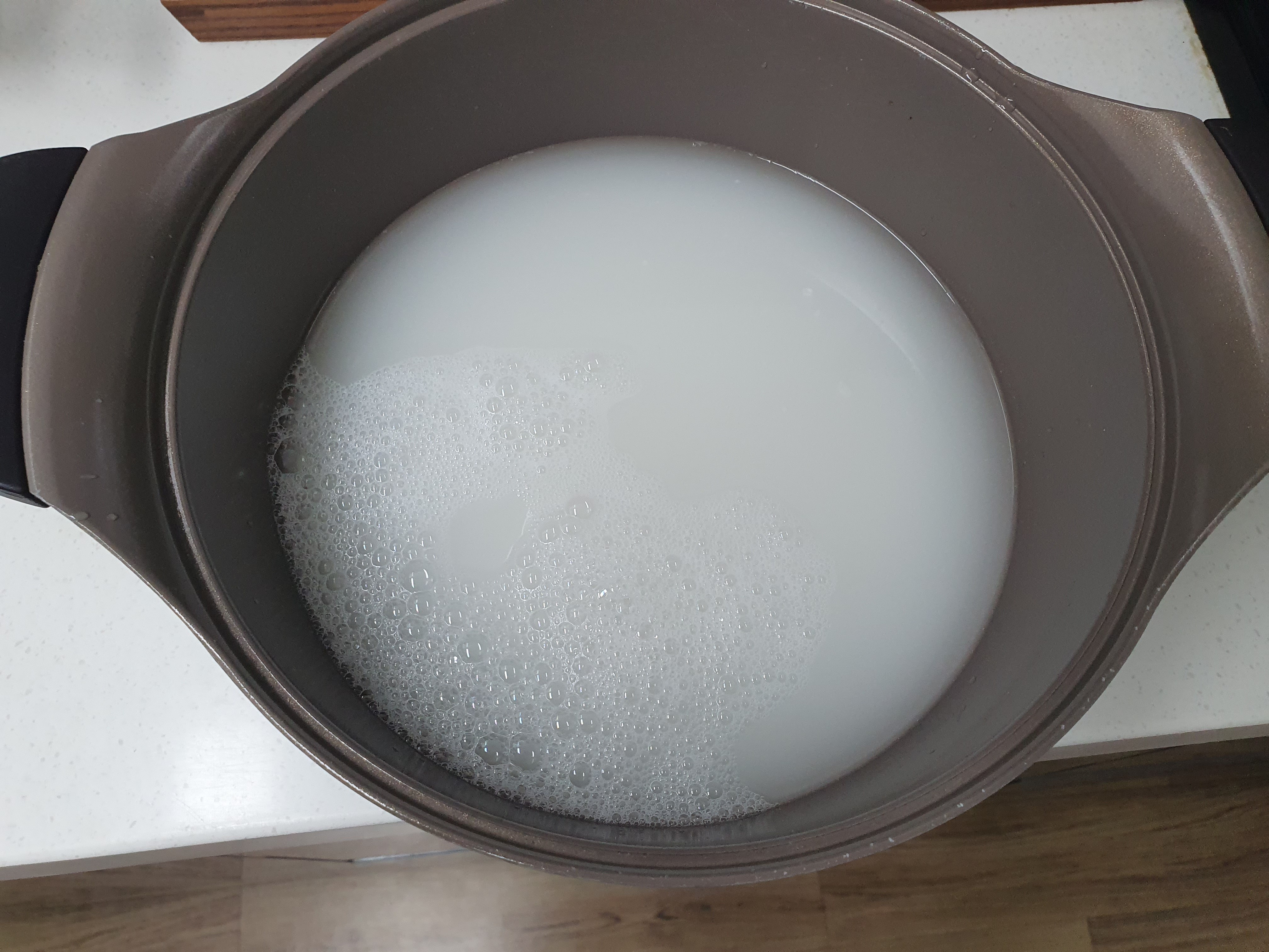 시험관에 좋다는 소고기무국을 끓여 보기로 했습니다. 국물맛을 내는데 쌀뜬물을 이용해 보기로 했습니다.