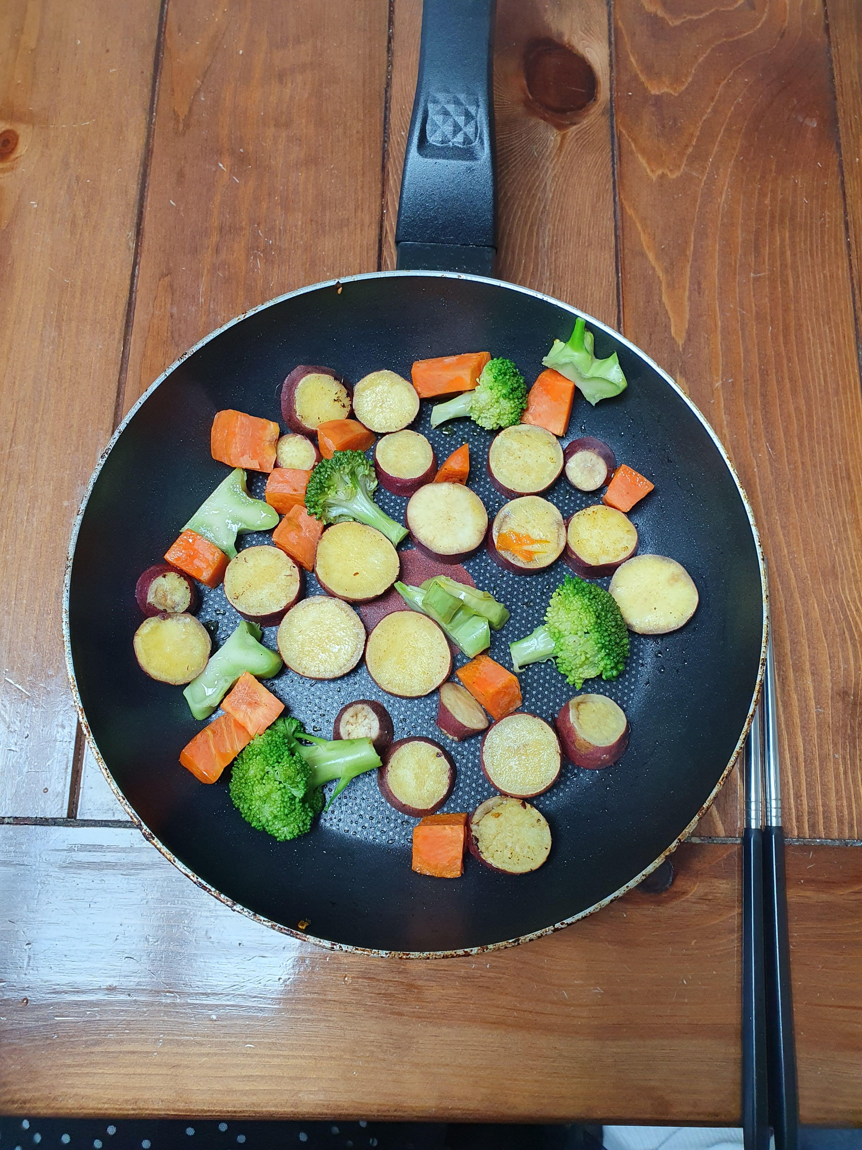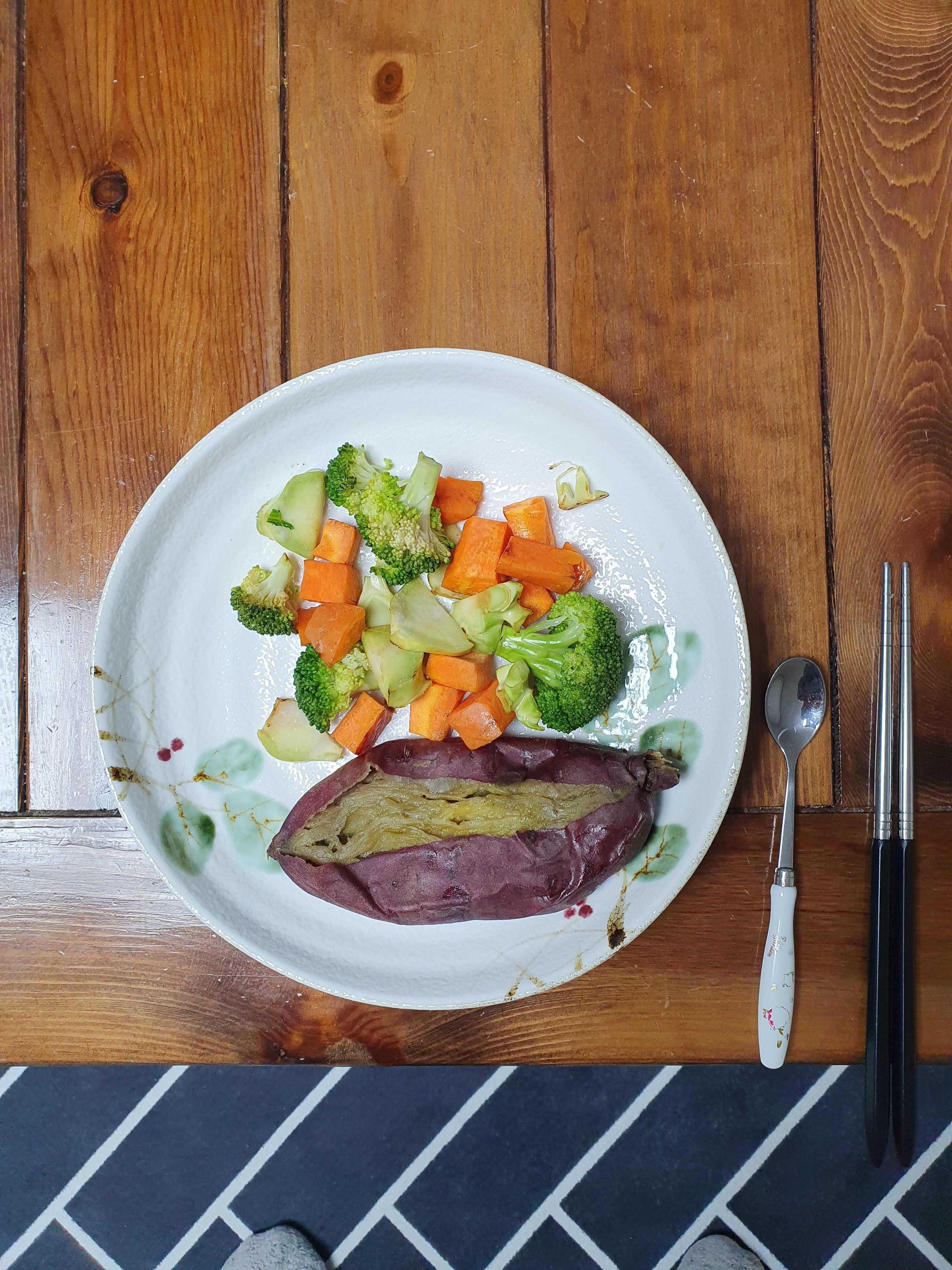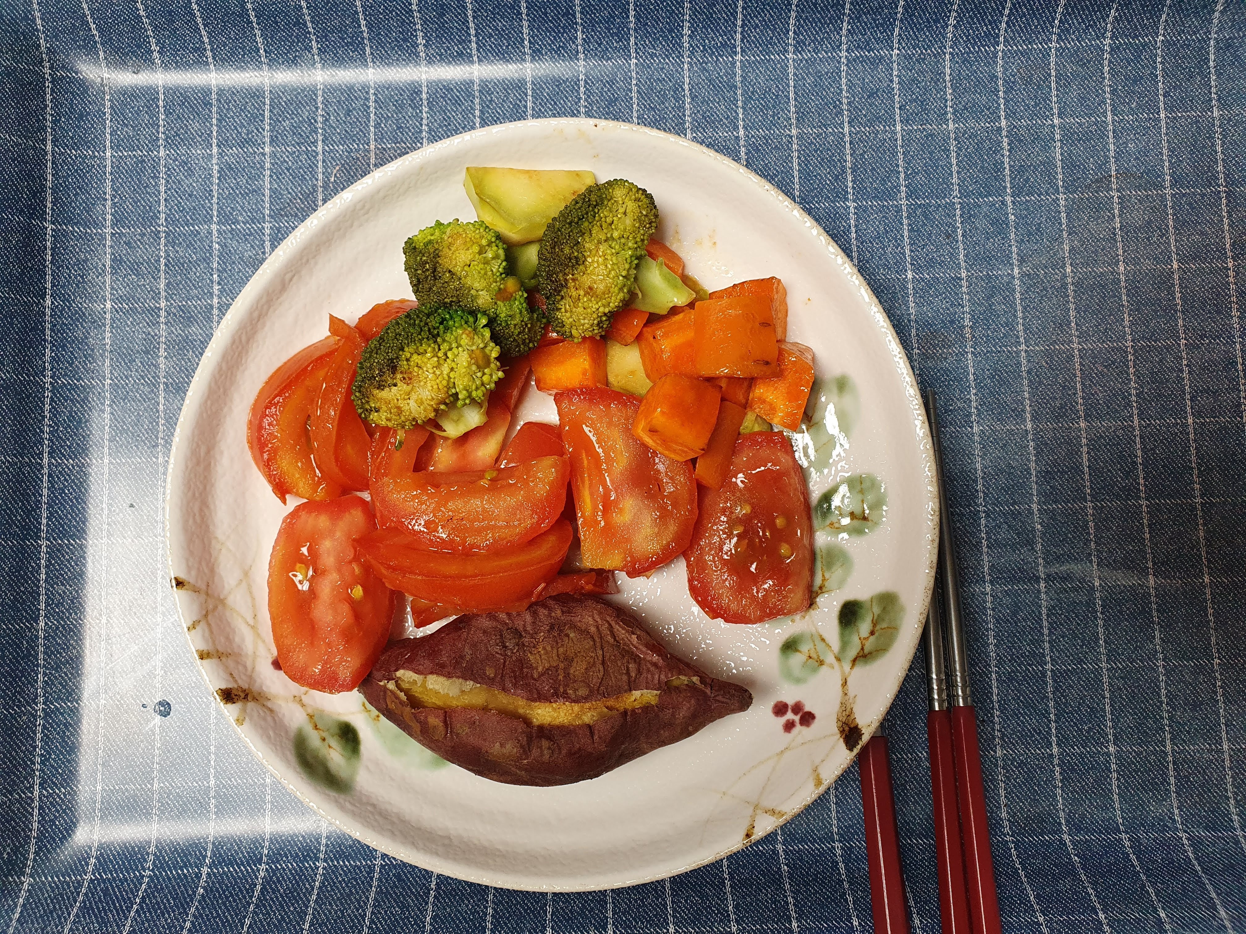 6.3. 월요일에는 아침 샐러드에 찐 고구마를 추가해서 먹었습니다. 고구마에는 섬유질, 칼륨, 칼슘이 들어 있습니다.