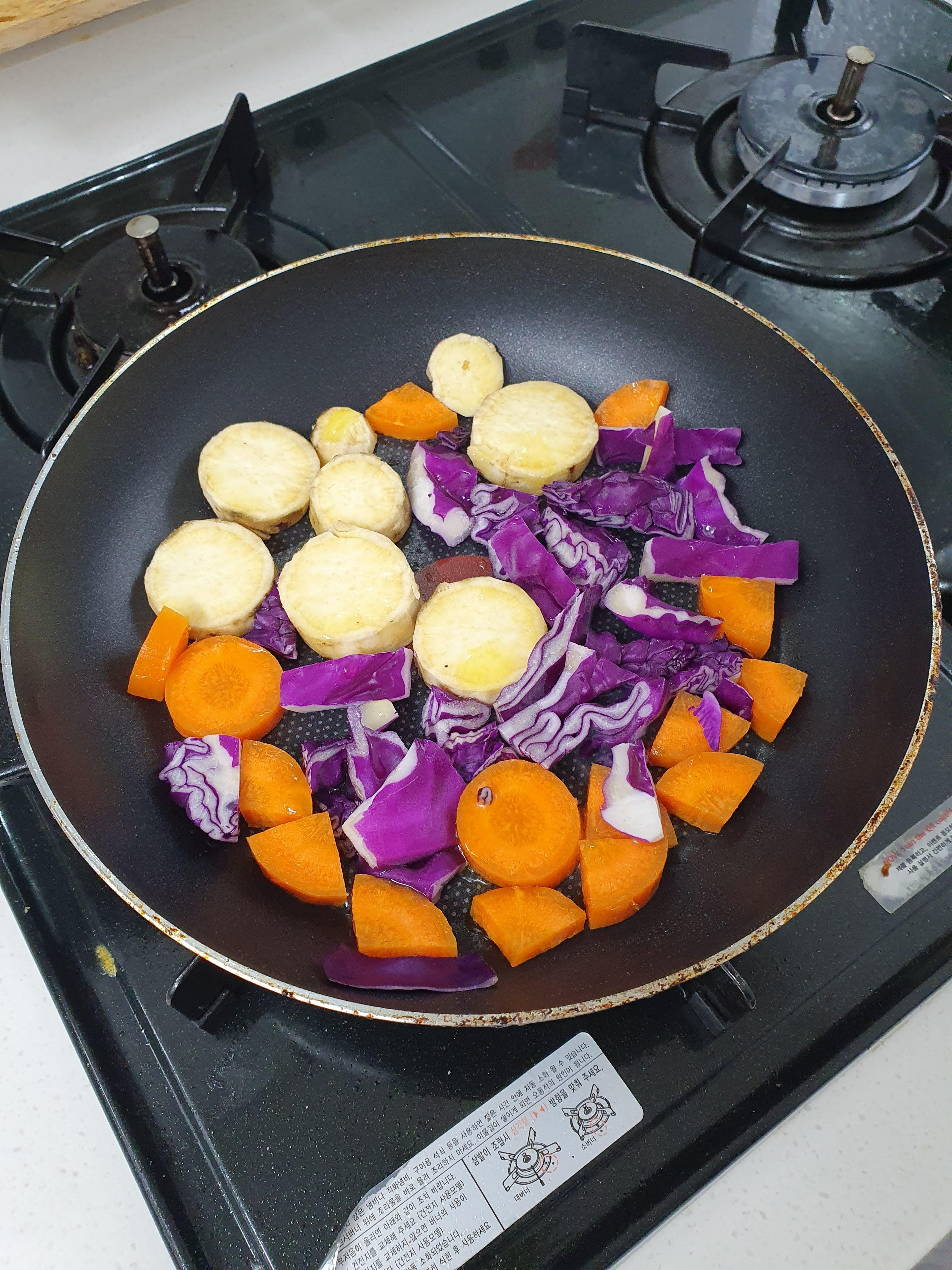 아침은 빨, 파, 노 채소에 올리브를 뿌려서 채소 건강식으로 먹었습니다.