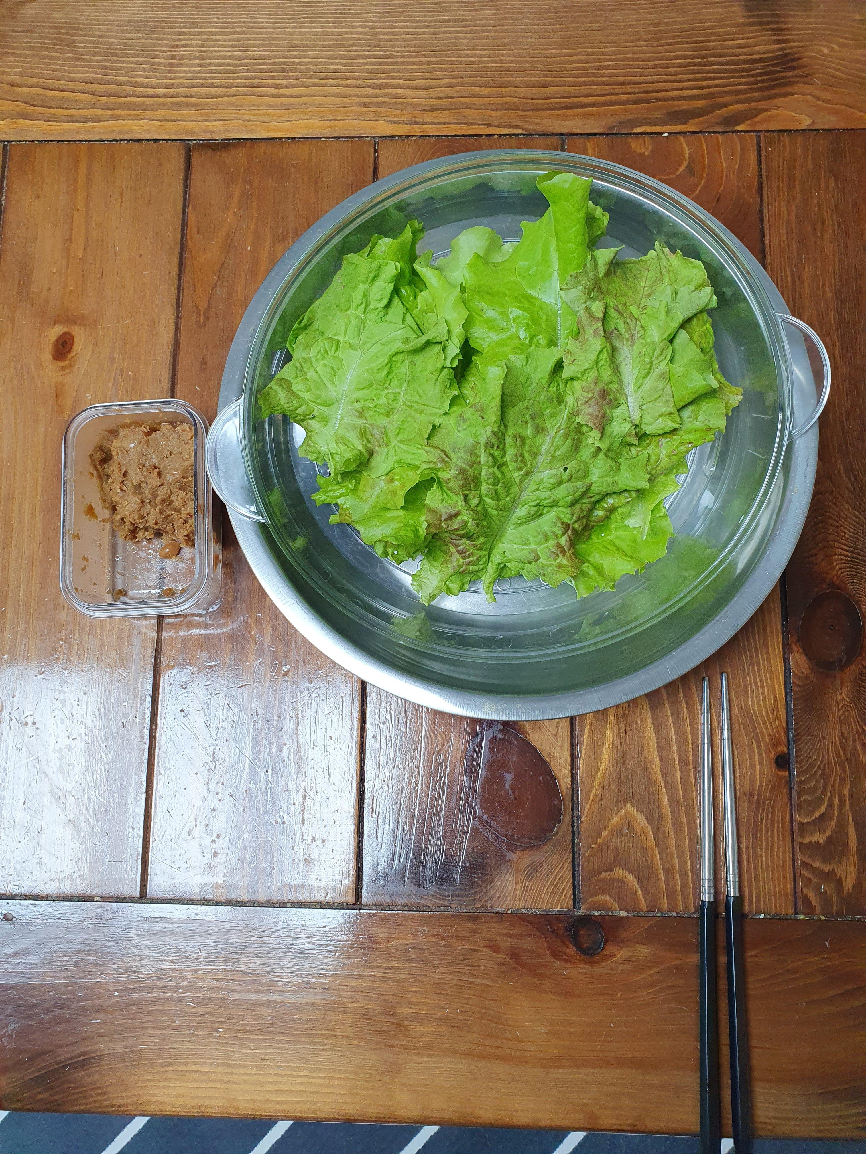 상추와 된장도 먹었습니다. 상추에는 철분이 들어 있습니다. 된장은 담배의 발암물질을 제거하는 효과가 있습니다.