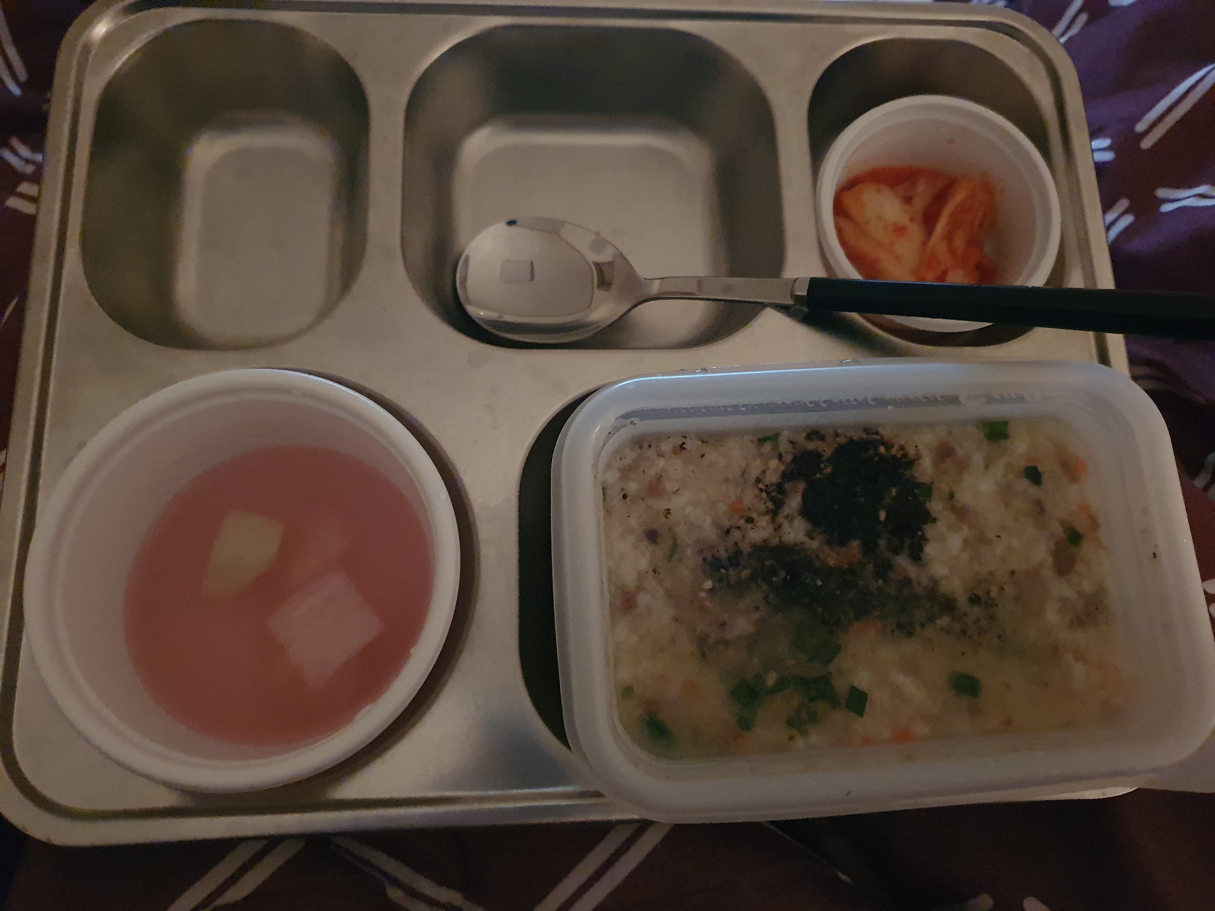 자궁경을 한 날부터 3일 정도는 누워 있으면서 식단에 신경을 썼습니다. 자궁경을 한 당일에는 죽으로 세 끼를 먹었습니다. 죽이라서 소화는 잘 되네요. 2시간 정도 지나면 소화가 잘돼서 꼬르륵 배에서 소리가 나네요 ㅋ
