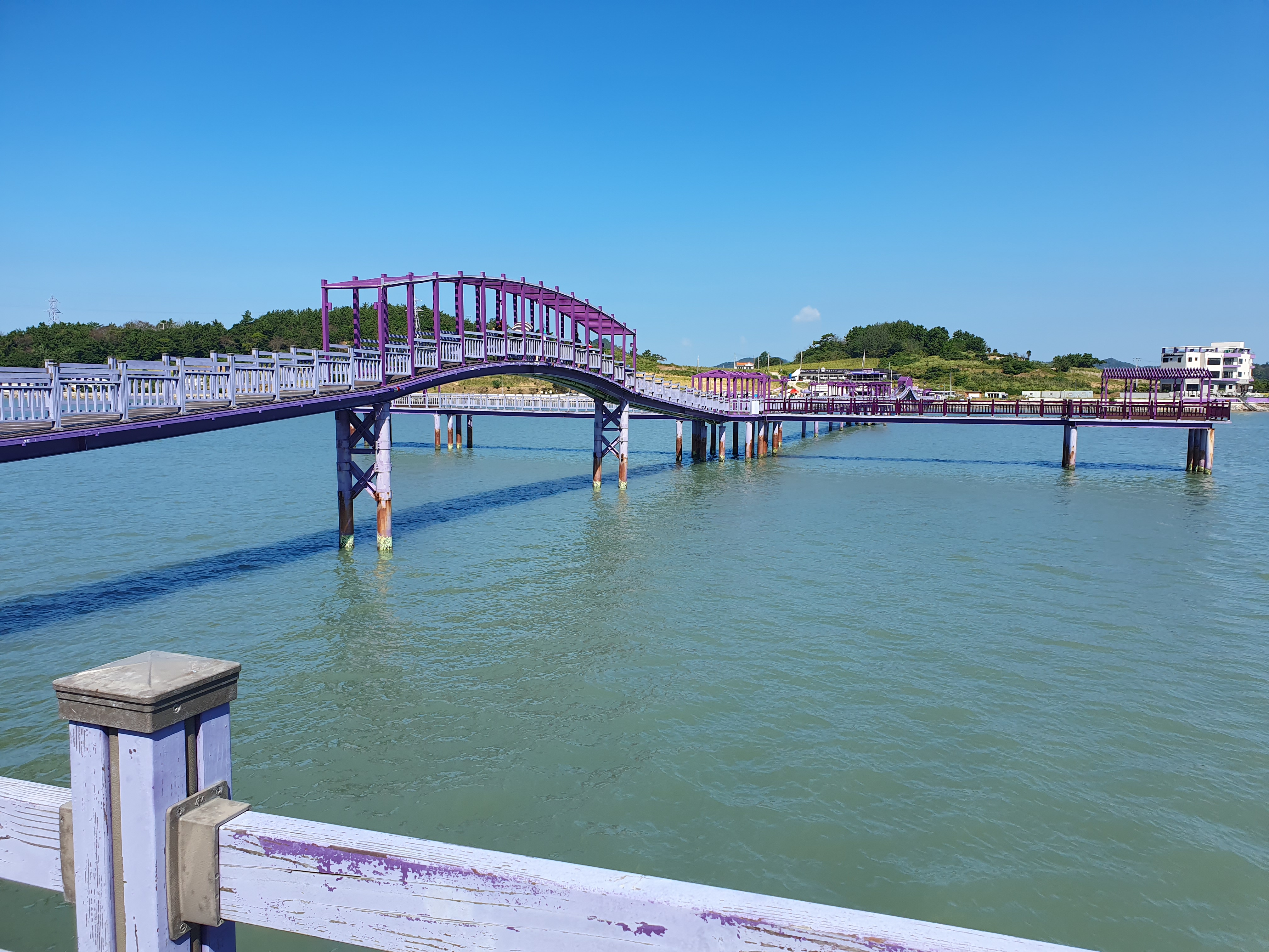 박지도로 들어가는 퍼플교는 고정이 되어 있어서 반월도쪽의 퍼플교처럼 바닷물에 뜨고 그렇치는 않습니다.