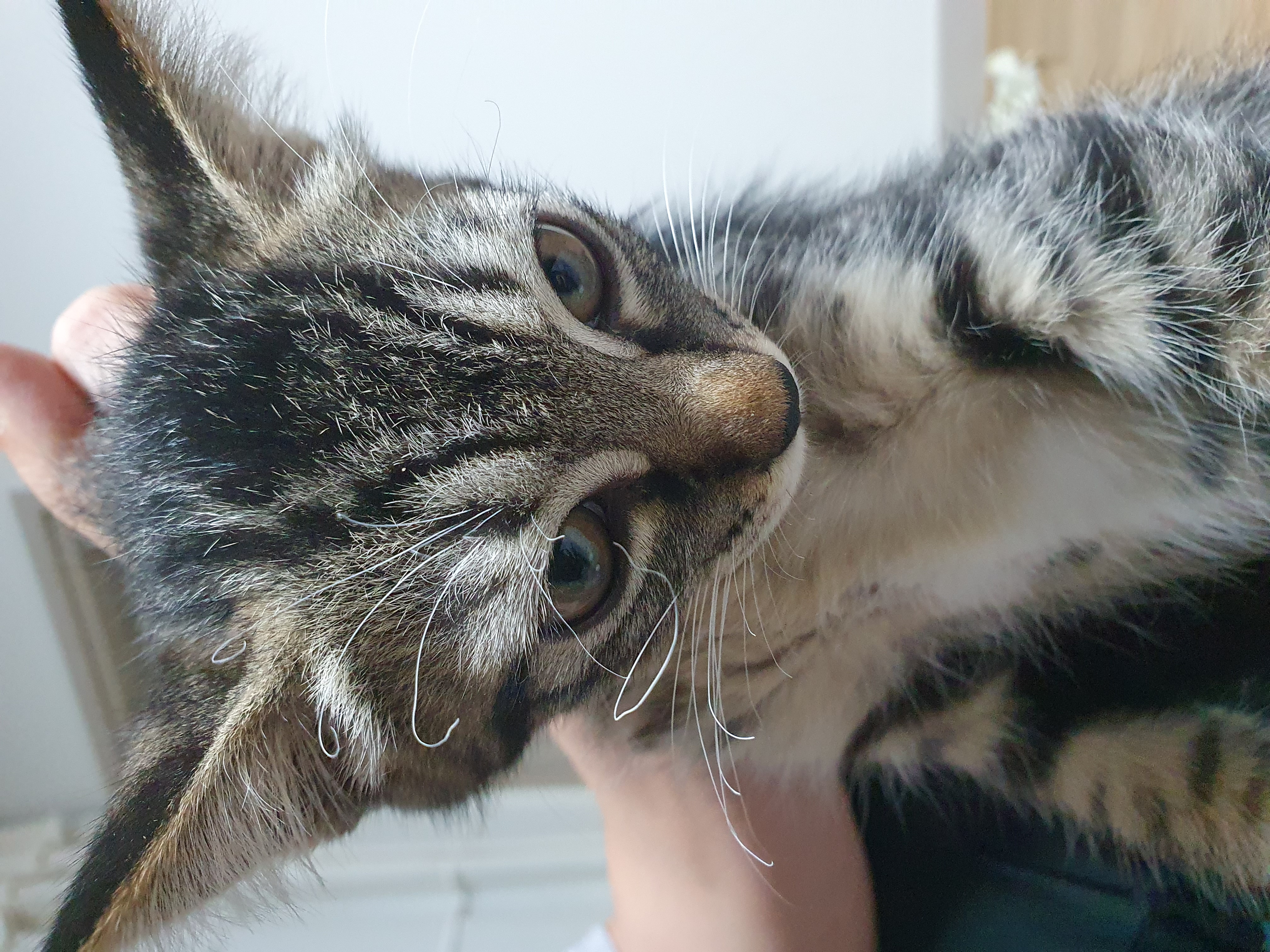 우리집 둘째 야옹이, 고등어 태비인 송이입니다. 혼낼 때 목덜미를 잡으면 이렇게 반항적인 눈을 합니다. ㅋ