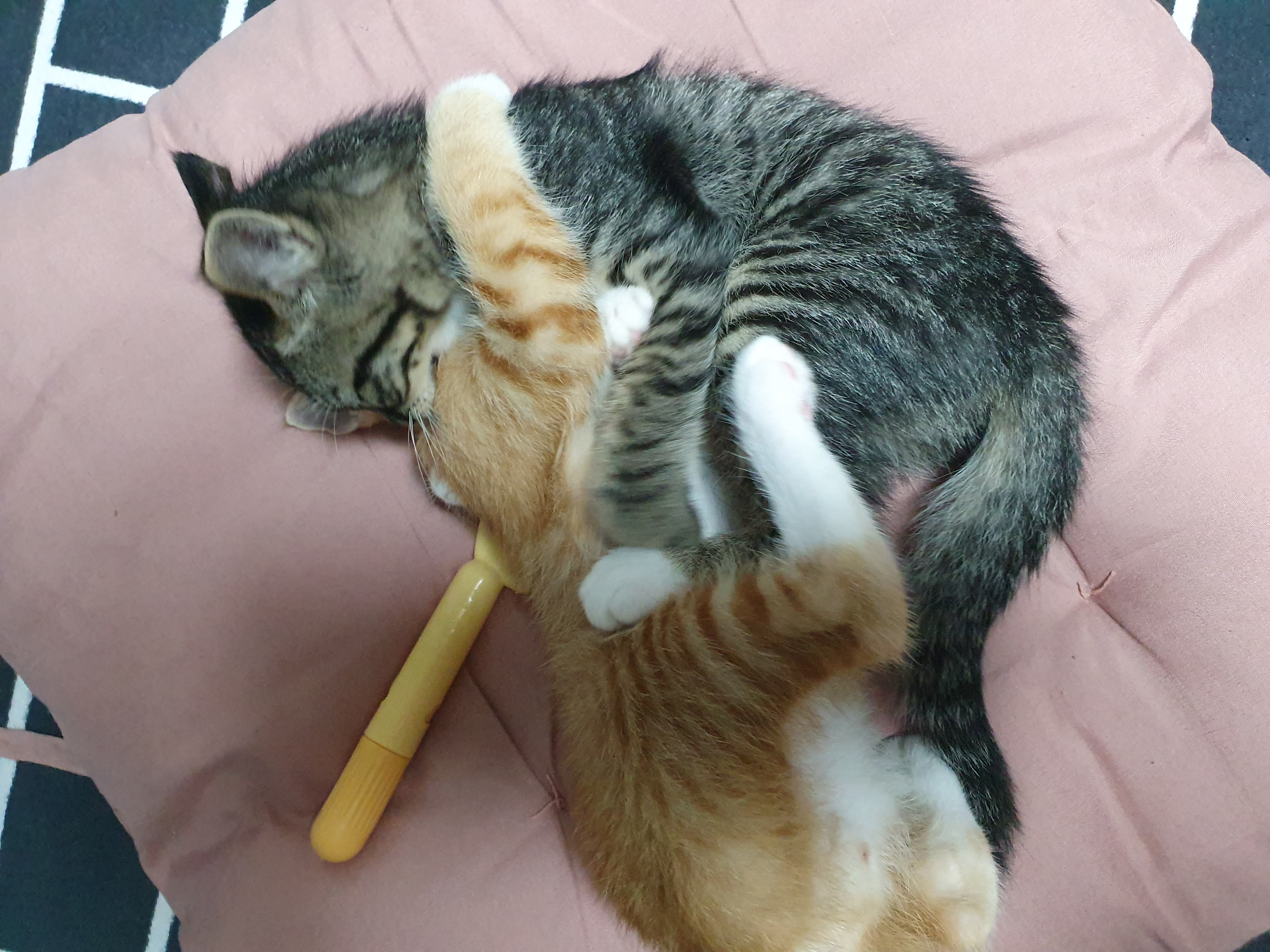 빗베고 자다가 장난치는 고양이 형제