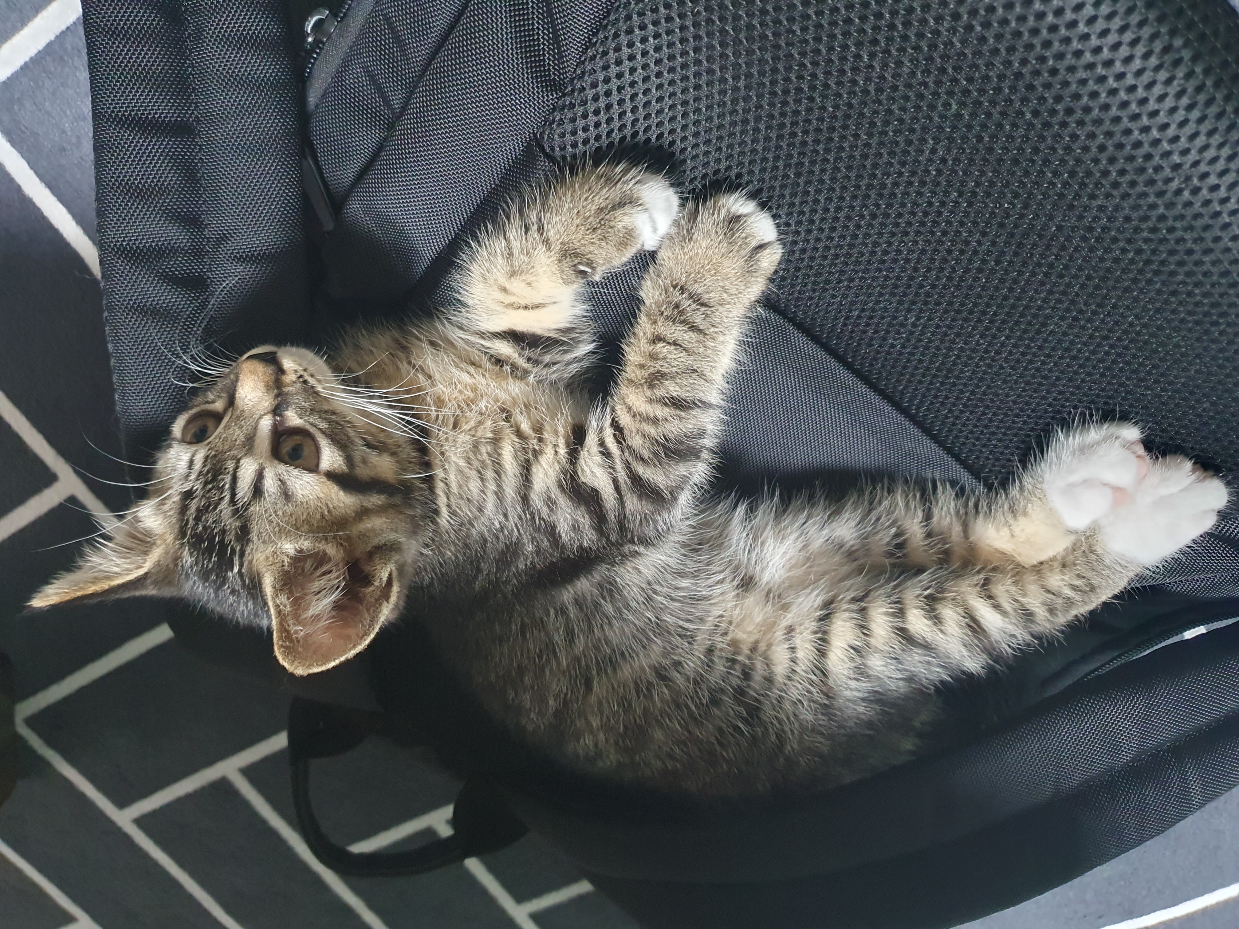 송이는 백팩위에서 쉬고 있네요~