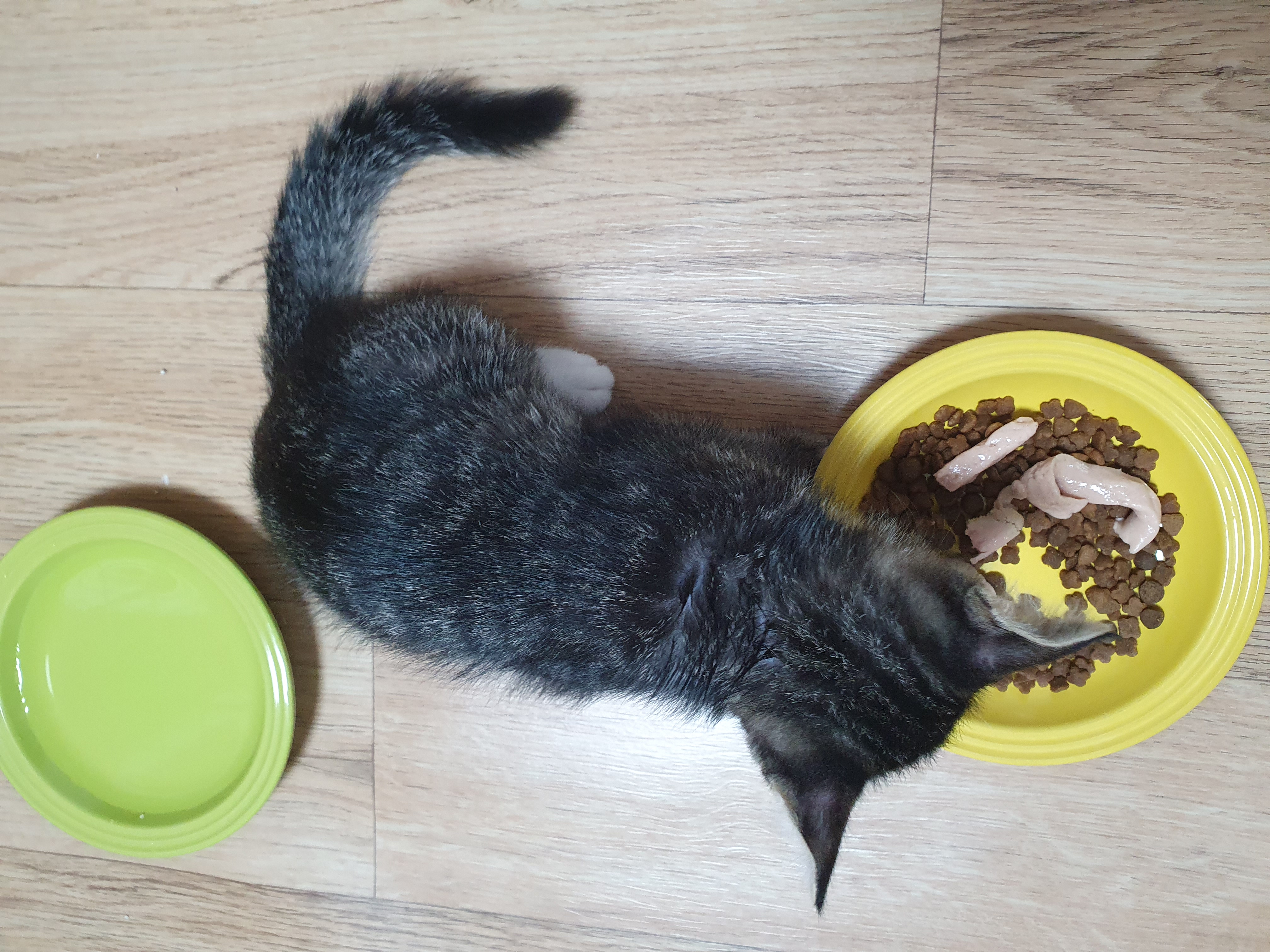 오전부터 주사를 맞아서 배고팠는지 사료도 잘 먹습니다.
