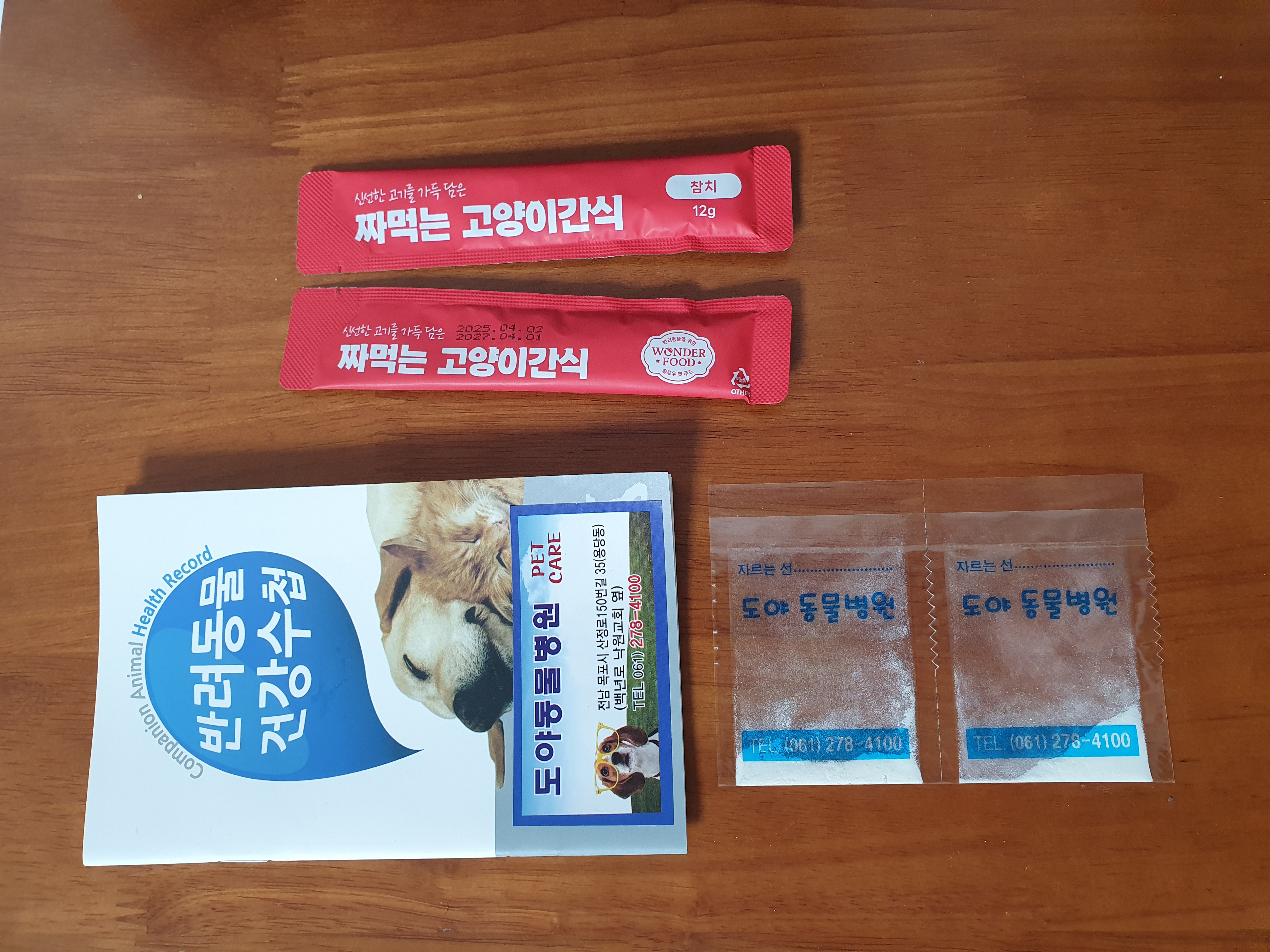병원에 도착해서는 조용합니다. 주사 맞는 시간은 짧았습니다. 제가 다니는 동물병원에서는 한 마리당 35000원 병원비가 나왔습니다.