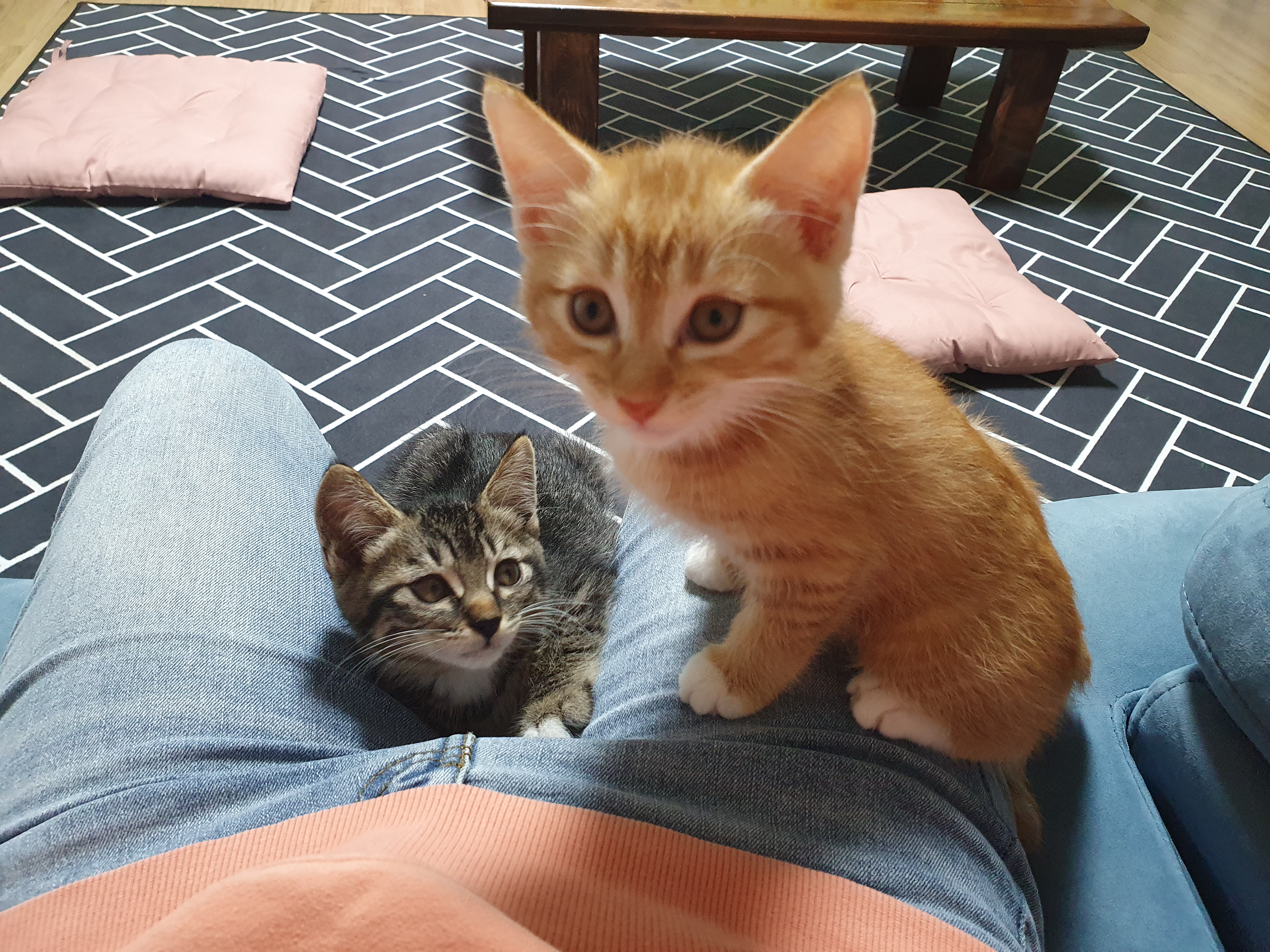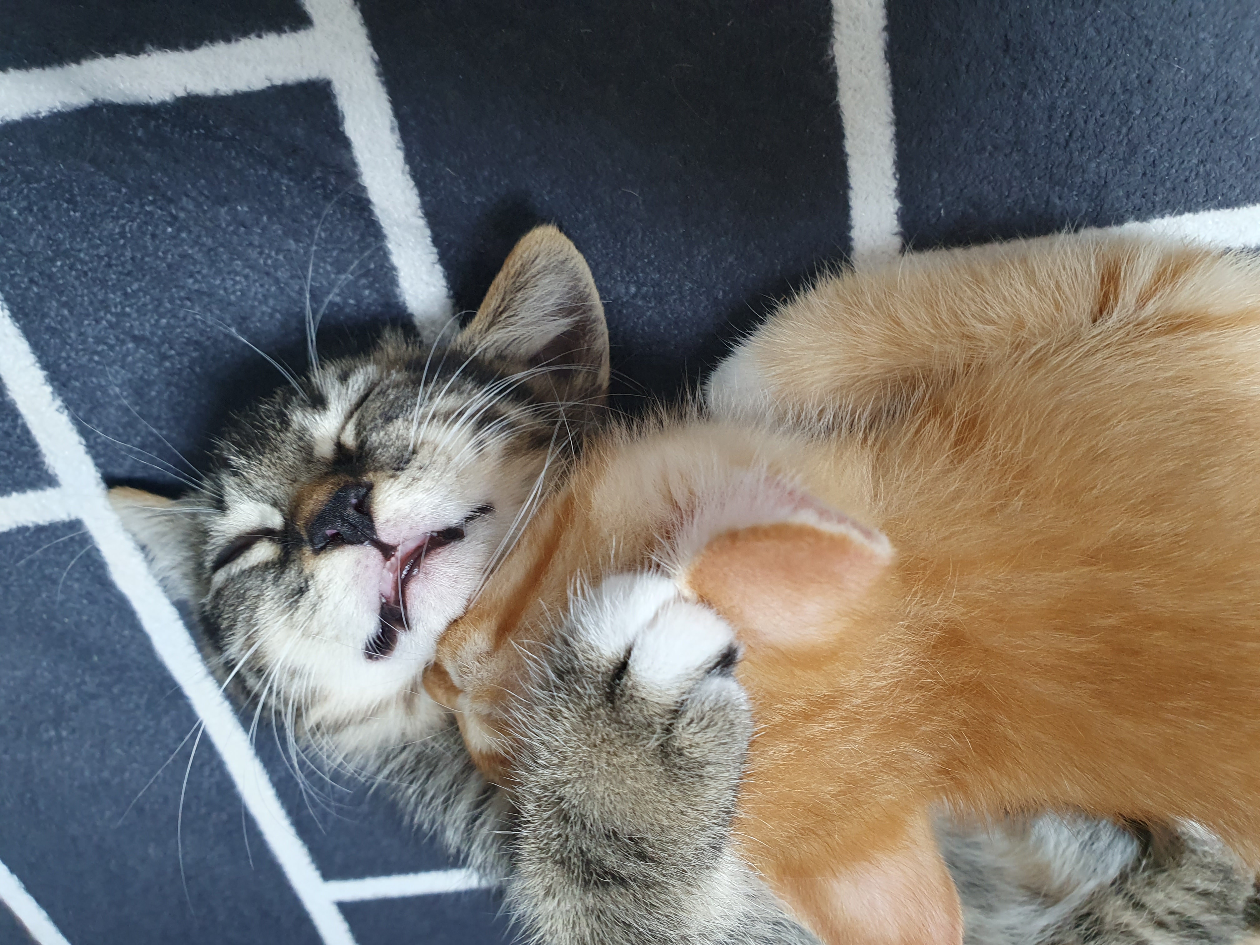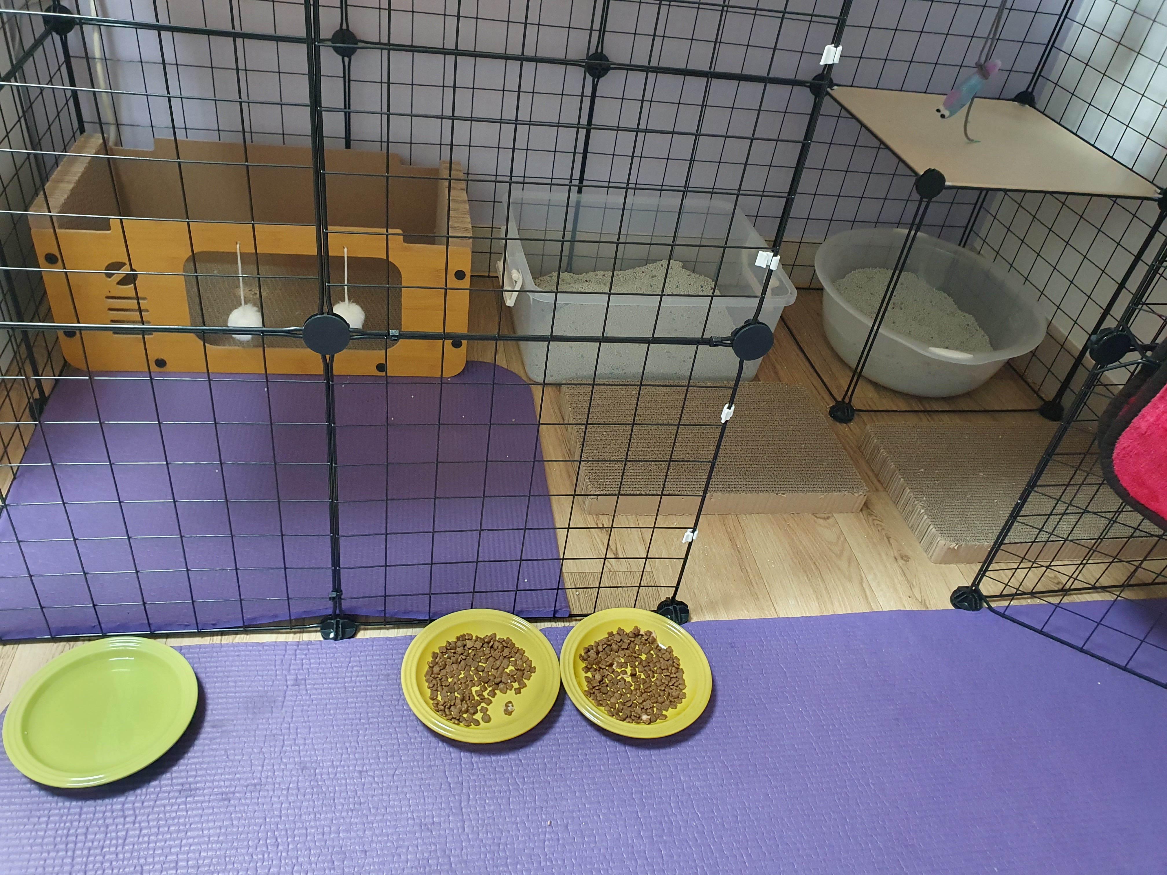 날이 추워지기 시작해서 고양이집에 안 쓰는 요가매트를 잘라서 깔아 주었습니다.