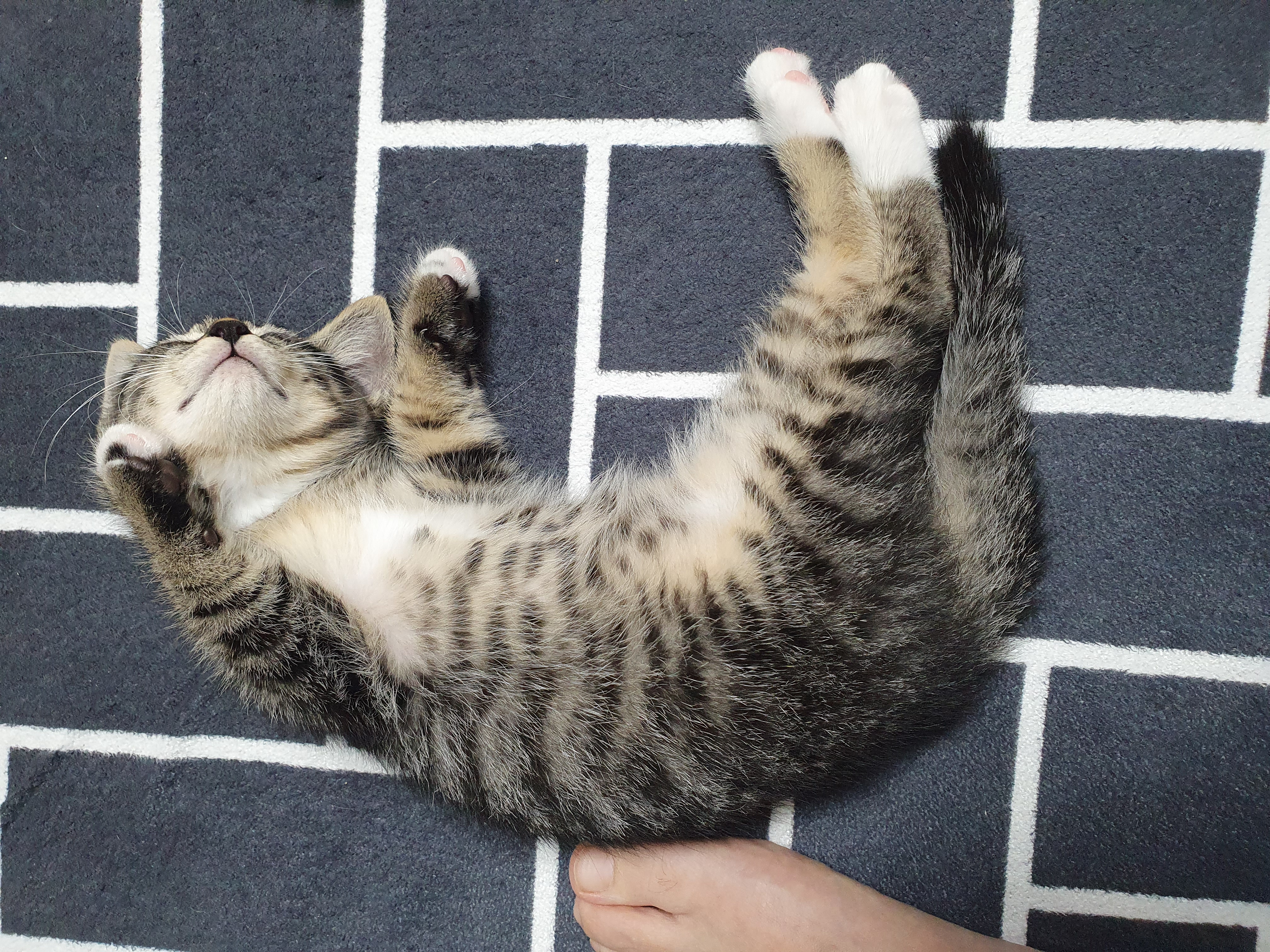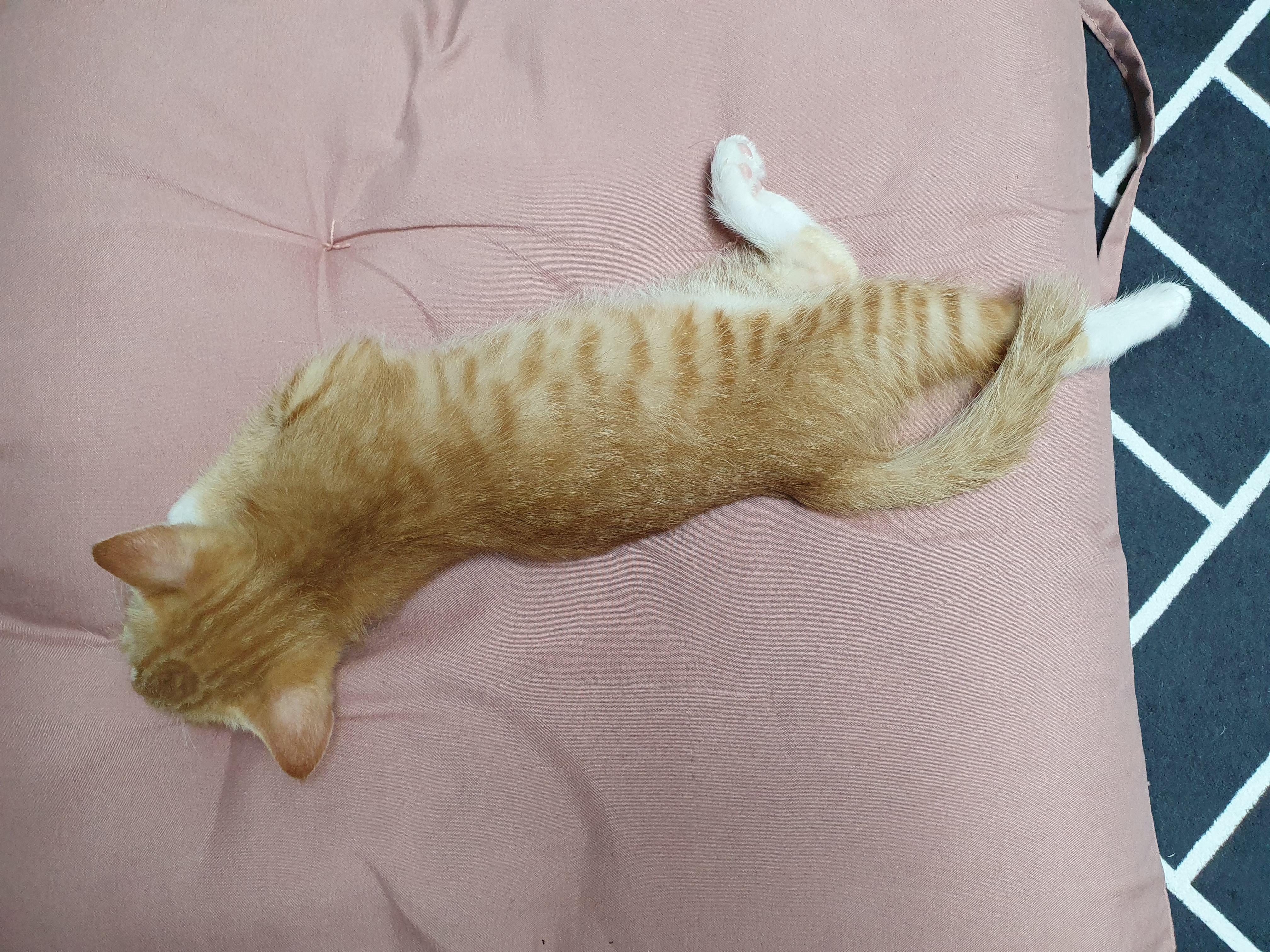 송이는 몸을 쭈욱 펴고 자는 편입니다.
