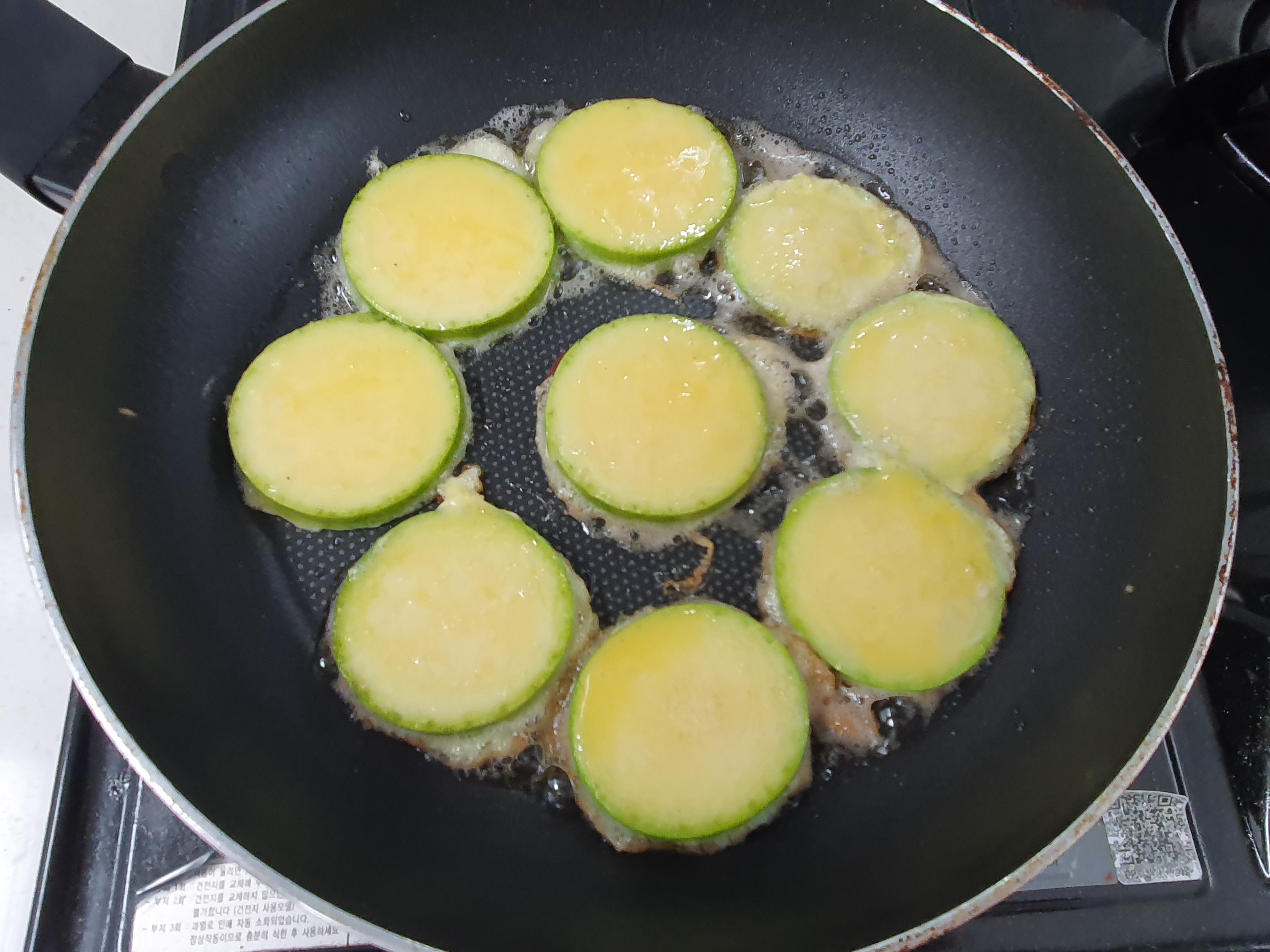 애호박전을 밀가루 없이 달걀옷만 입혀서 만들어 보았습니다.