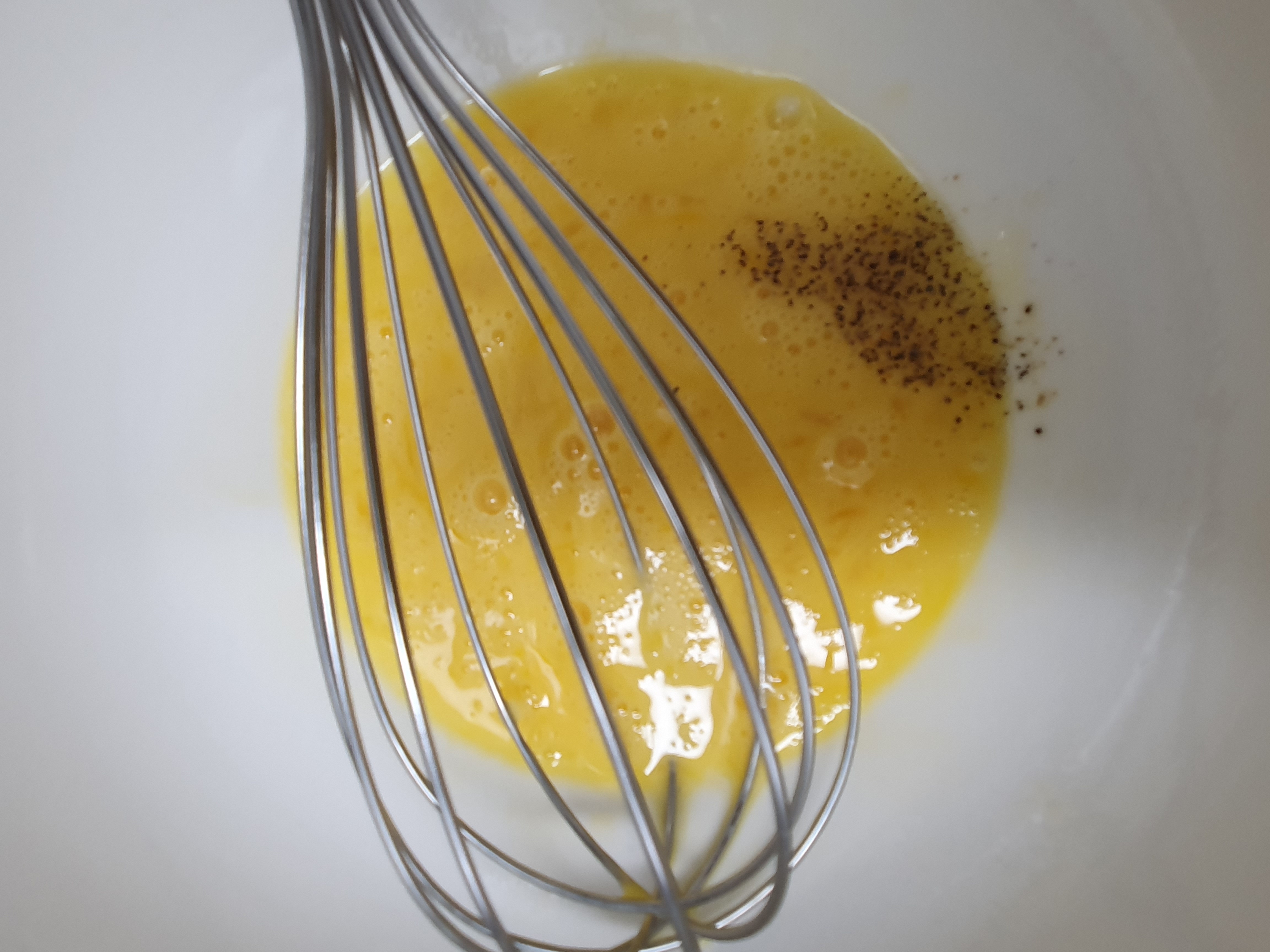 달걀 2개를 풀어 줍니다. 간은 후추로만 했습니다.