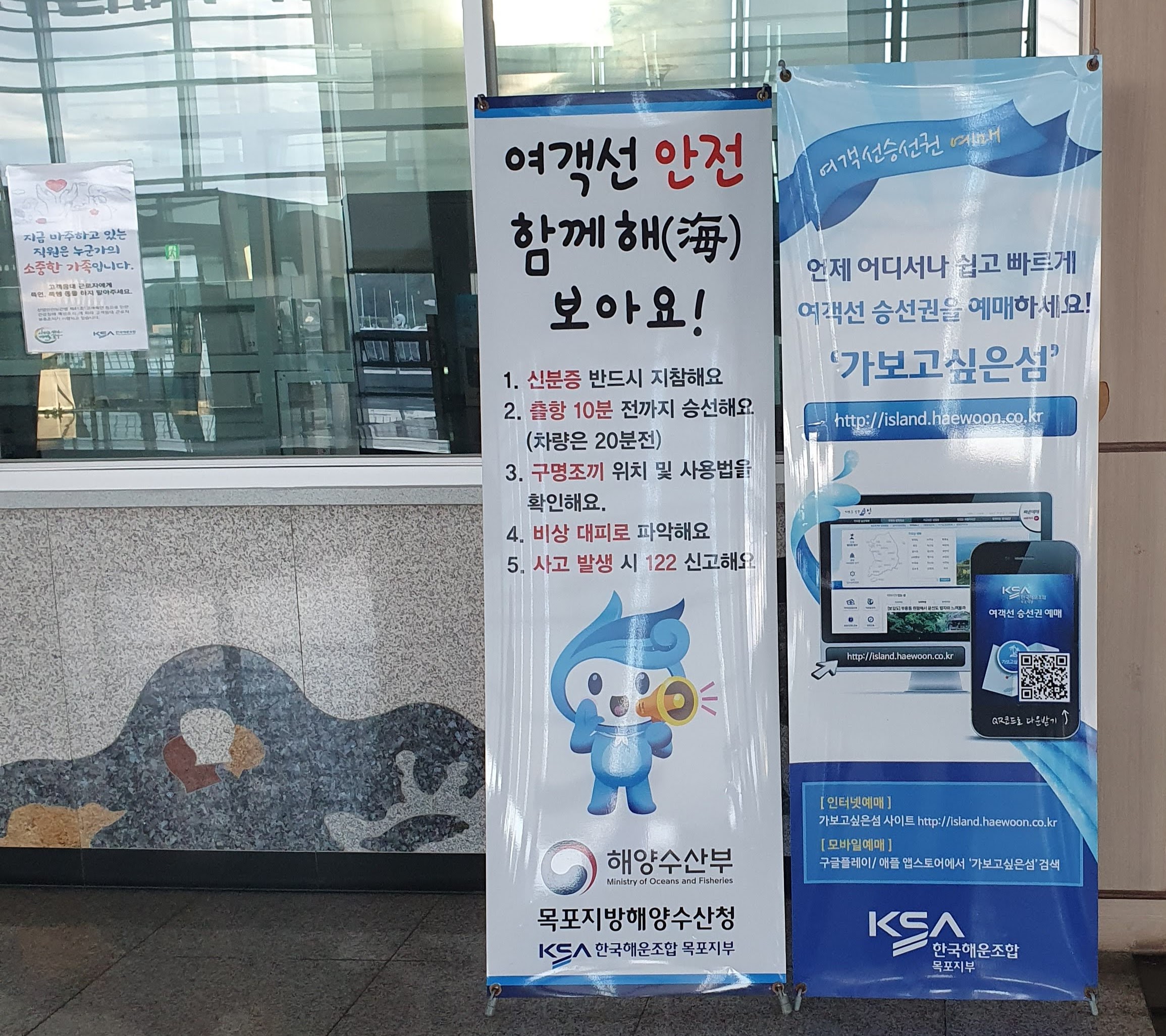 주의할 사항은 신분증을 지참해야 승선권 구매가 가능하고, 5분전에 승선권을 구매해야 승선이 가능합니다. 외달도에는 주차공간이 협소함으로 차량은 목포연안여객선터미널에 주차해 놓으시는 게 좋습니다.