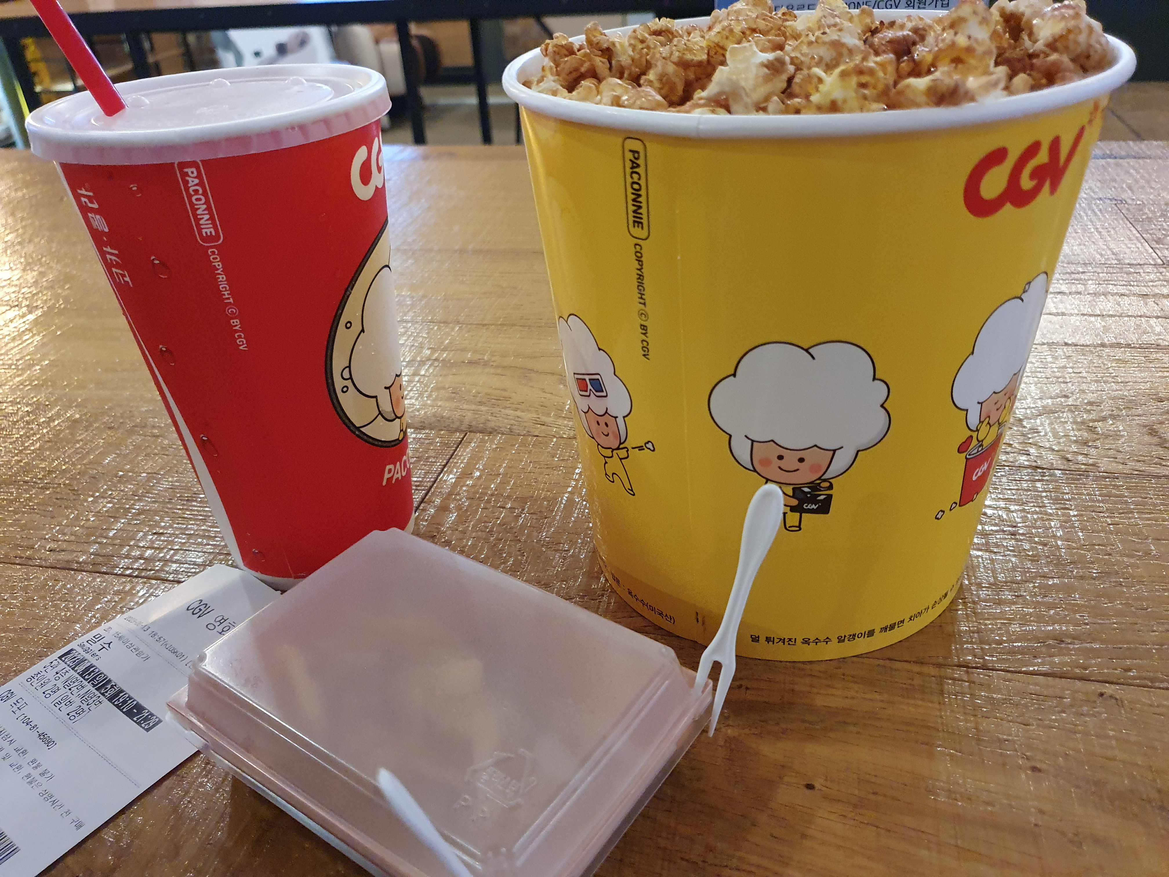 오늘도 신랑이랑 '밀수'영화를 보러 cgv에 갔습니다. 케첩팝콘도 있었지만 달콤팝콘을 오랜만에 먹었습니다.