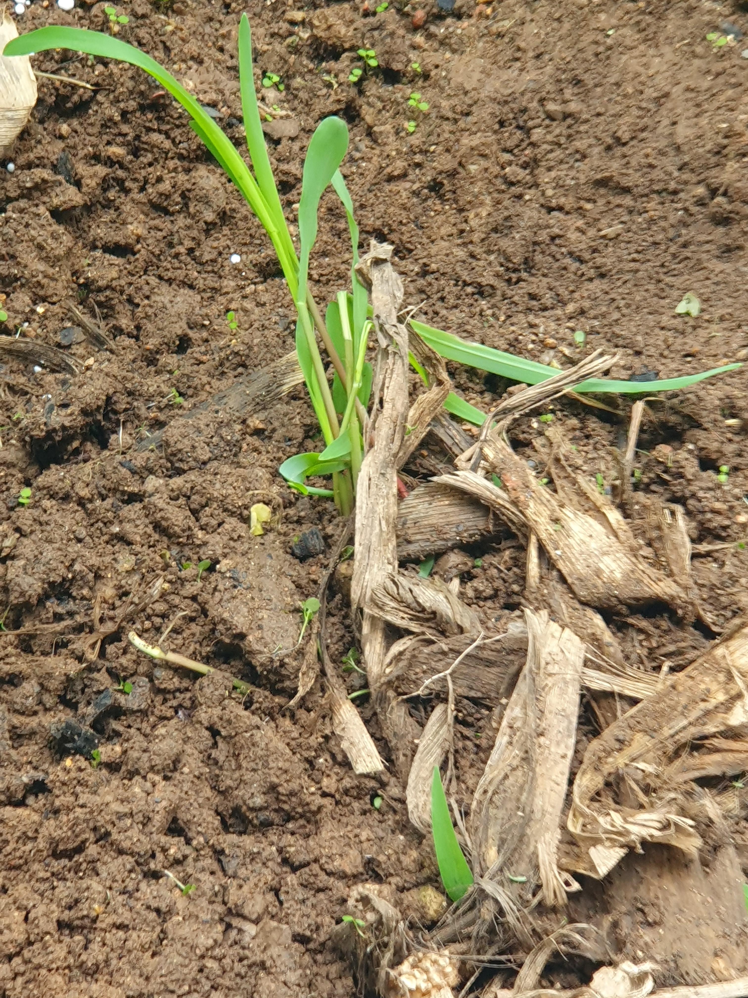 전에 옥수수껍데기를 버린 곳에서 옥수수 새싹이 나오고 있습니다. 공간이 좁아서 넓은 곳으로 옮겨 심었습니다.