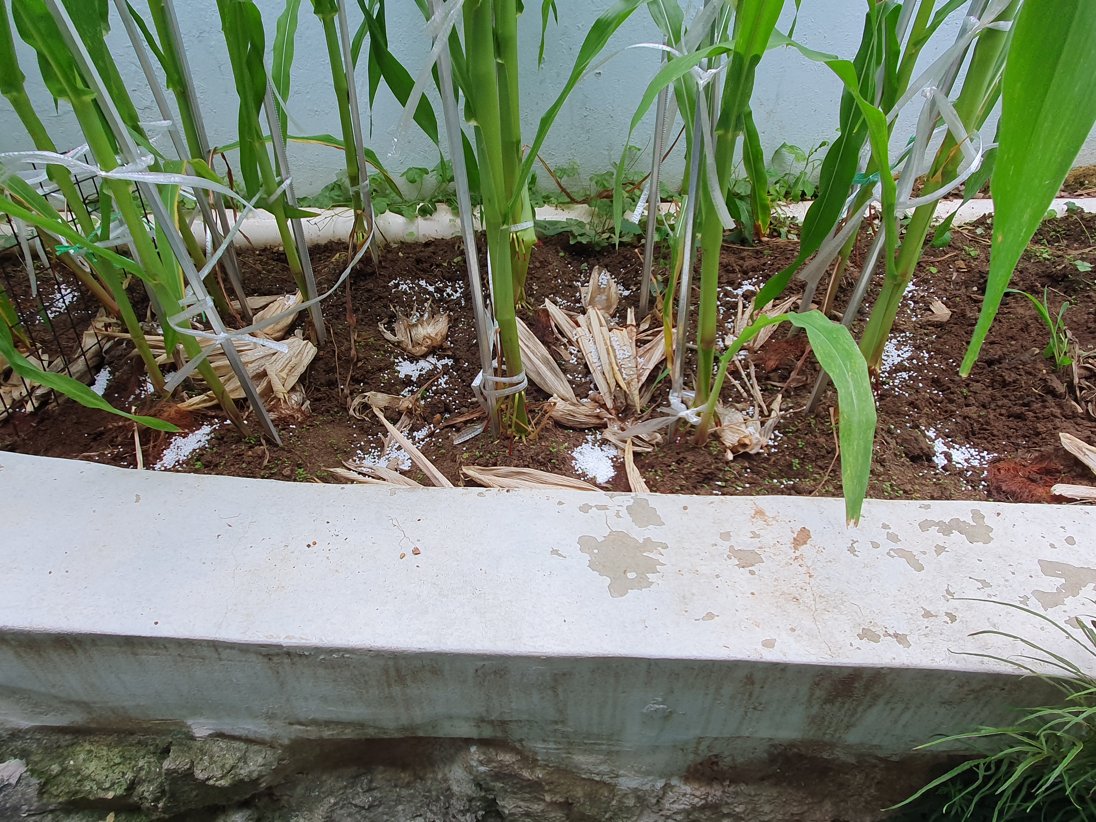 옥수수가 열리기 시작하는 시기에 비료도 마지막으로 주었습니다.