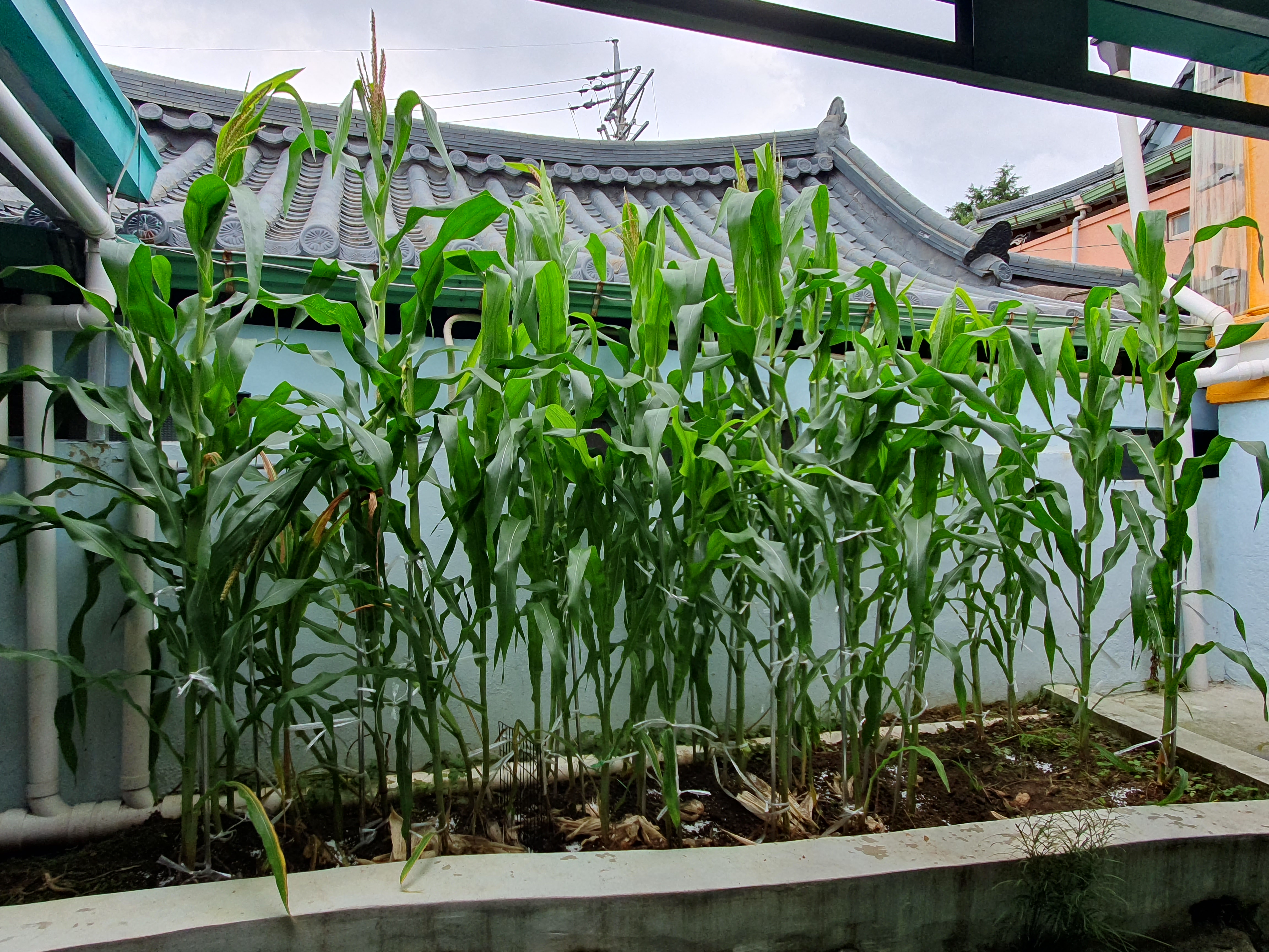 세어보니, 6개의 옥수수가 보이기 시작했습니다. 오늘밤부터 비가 온다는데 옥수수들이 잘 버텨 주기를 바랍니다.