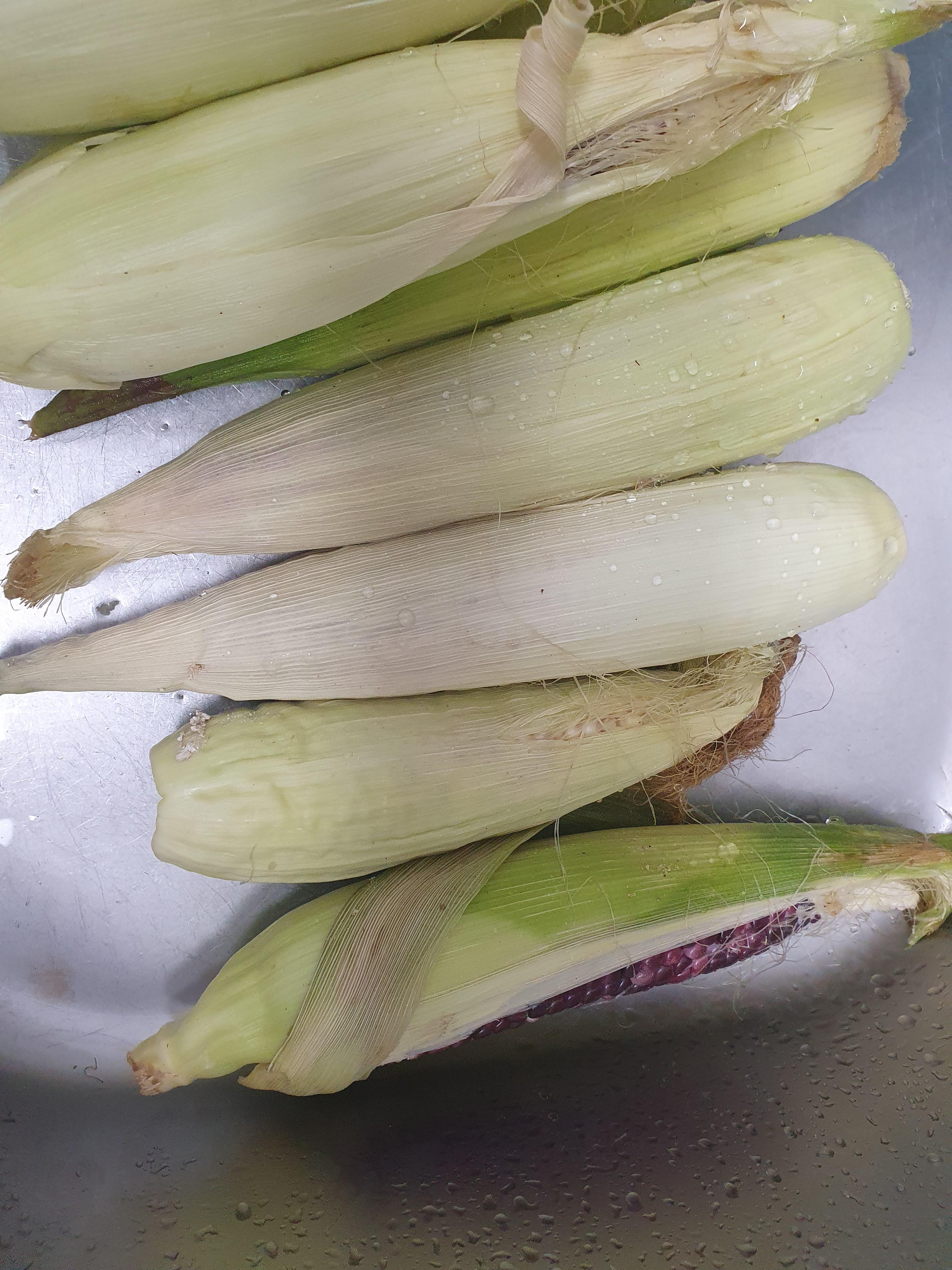 그리고 물로 씻었습니다. 옥수수는 총 18개였는데 2개는 썪기 시작해서 버렸습니다. 크기가 큰 거는 몇 개 있고, 작은 게 많았습니다.