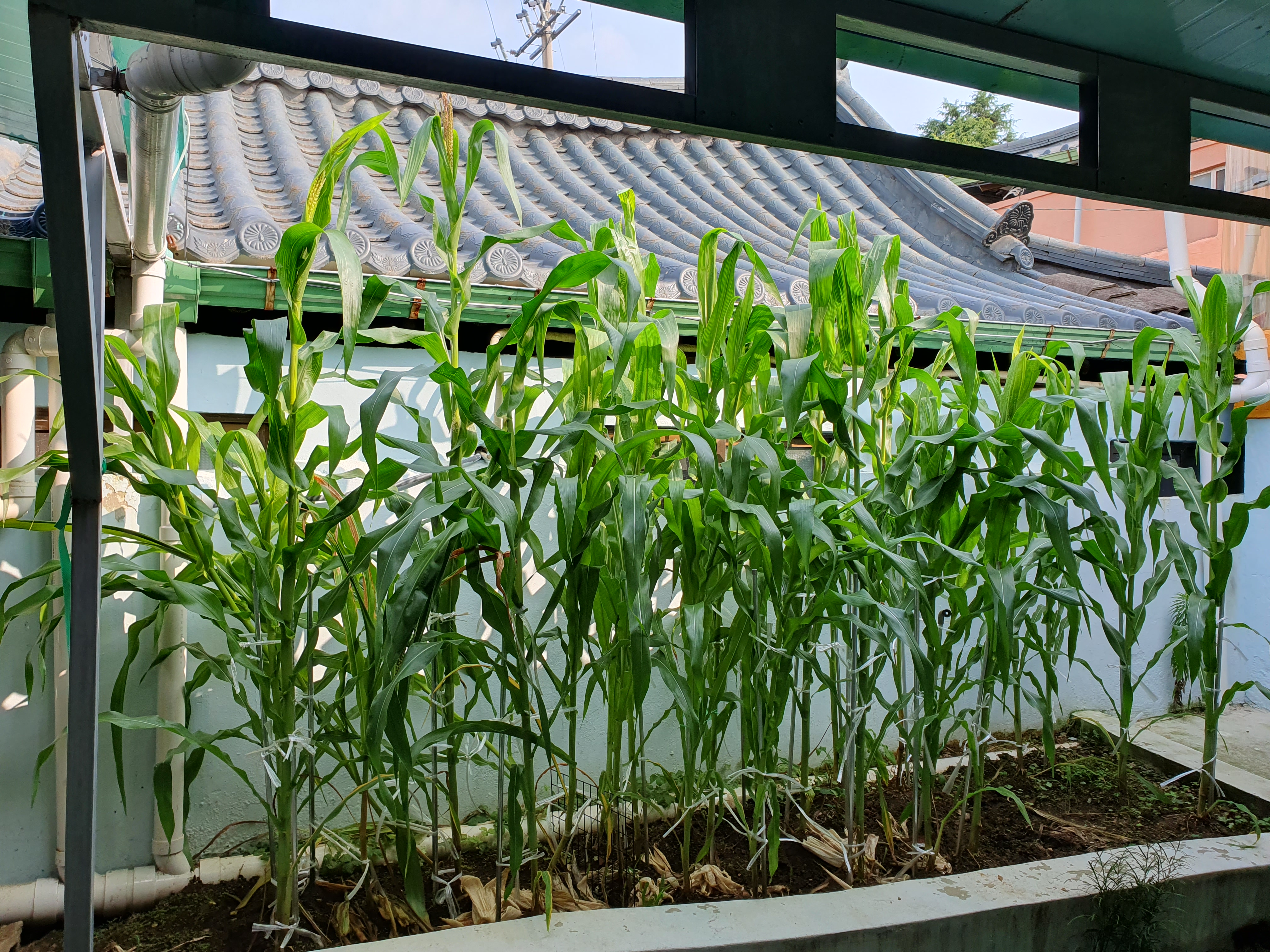 오늘도 저녁에 옥수수에 물 듬뿍 줍니다.