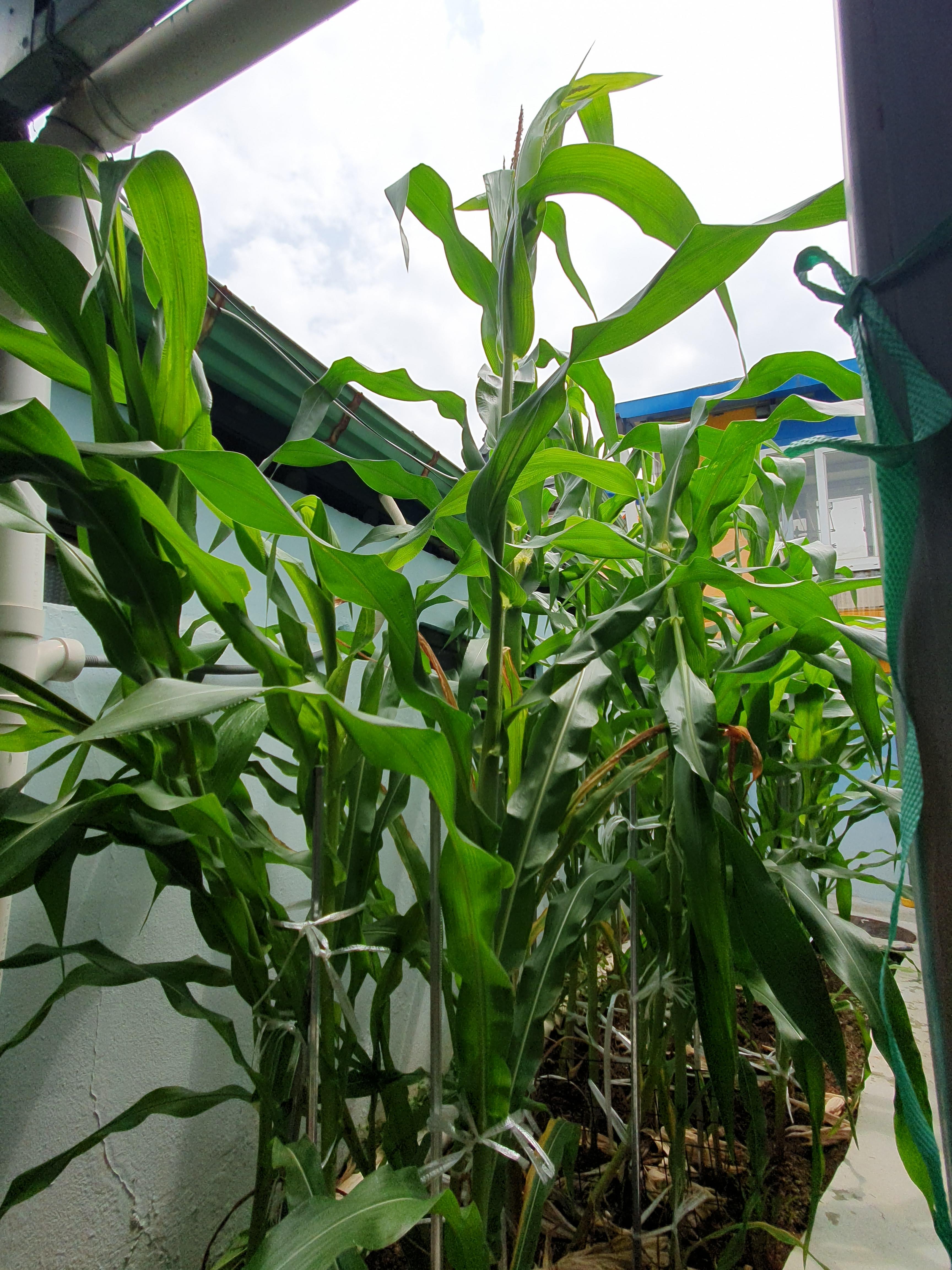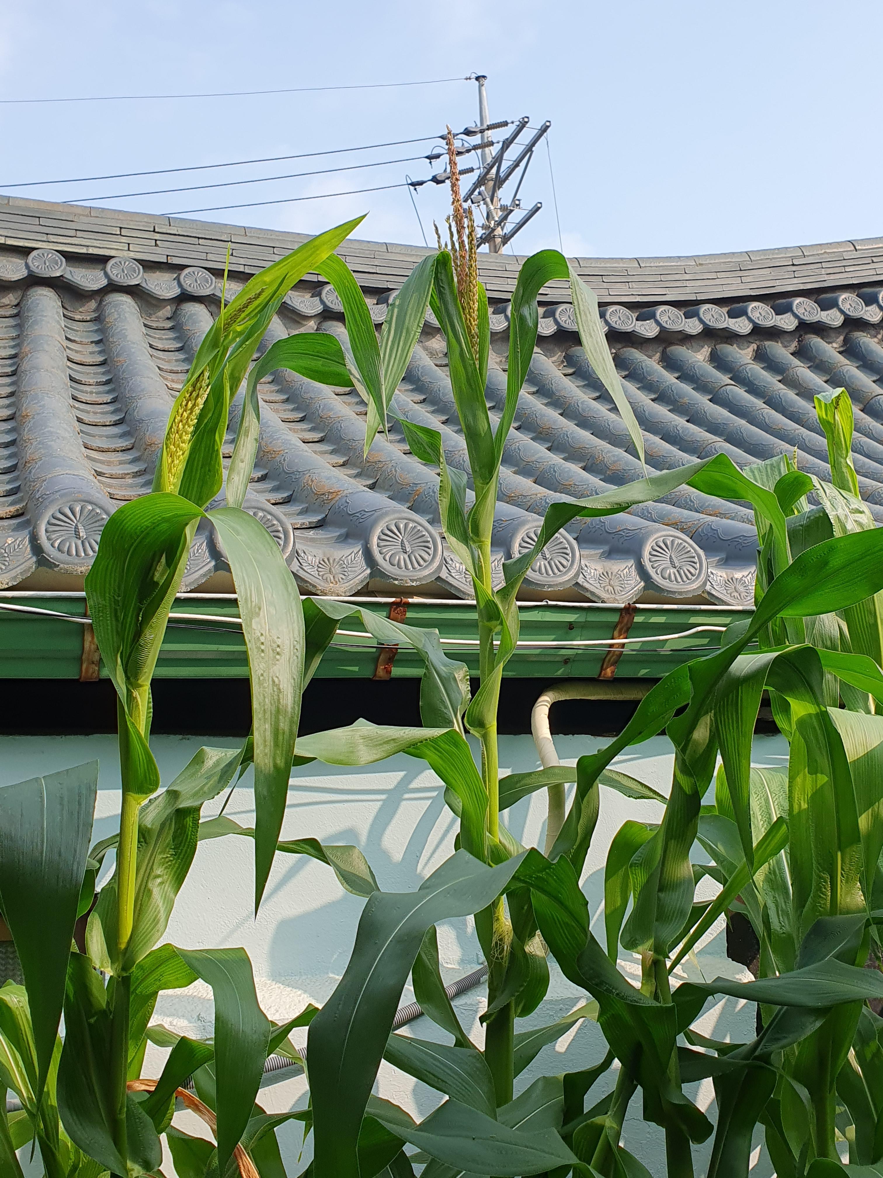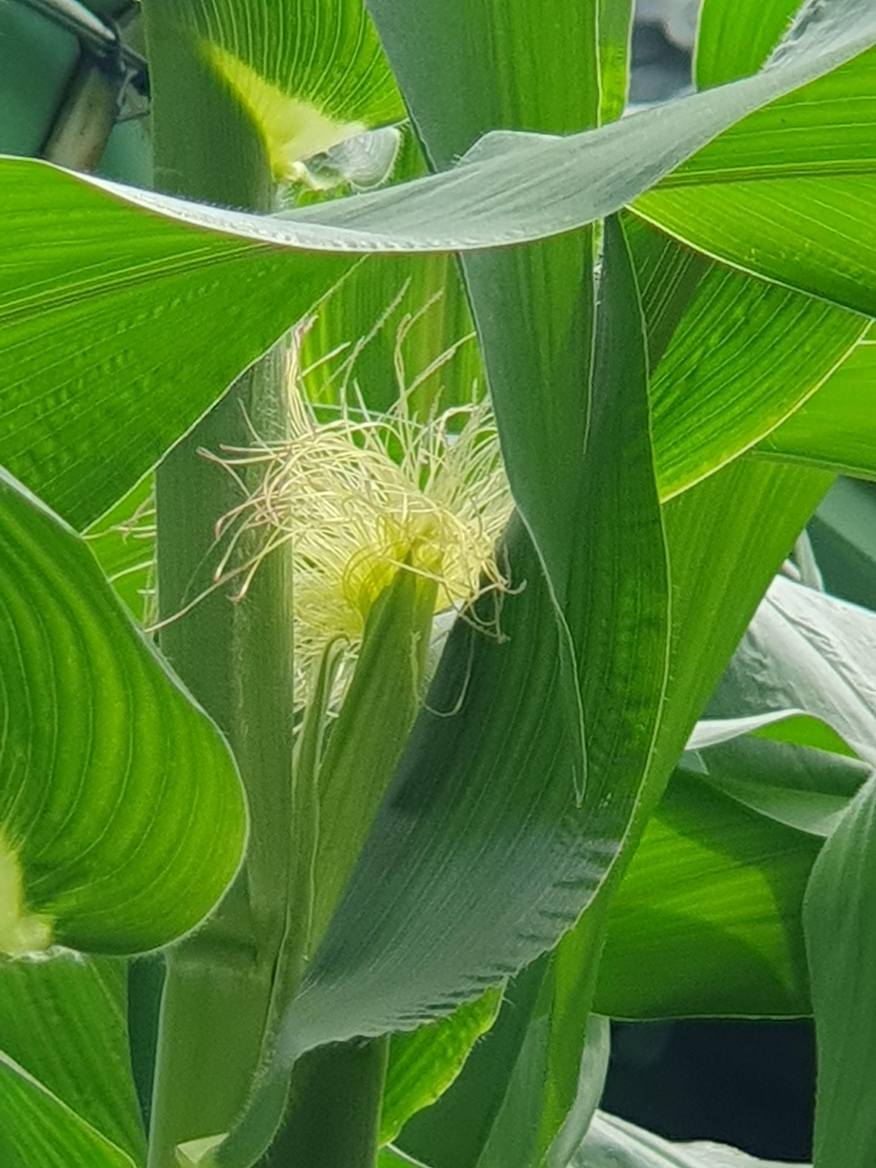 옥수수 개꼬리가 나고, 그 다음날 옥수수 수염이 나왔네요.