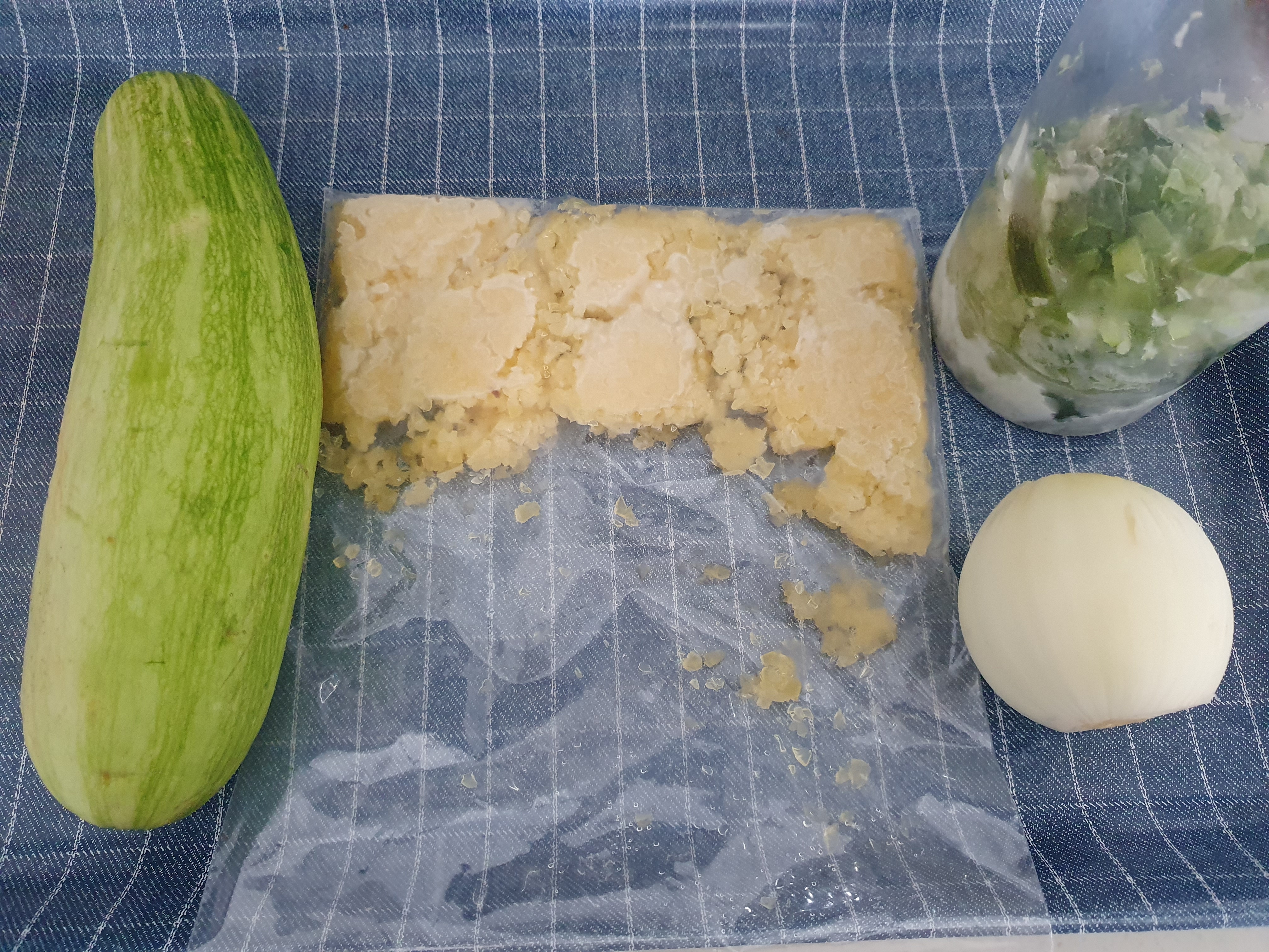 호박, 양파, 마늘 다진 거, 파를 준비합니다. 그외 소스로는 올리브유, 참치액, 통깨를 준비합니다.