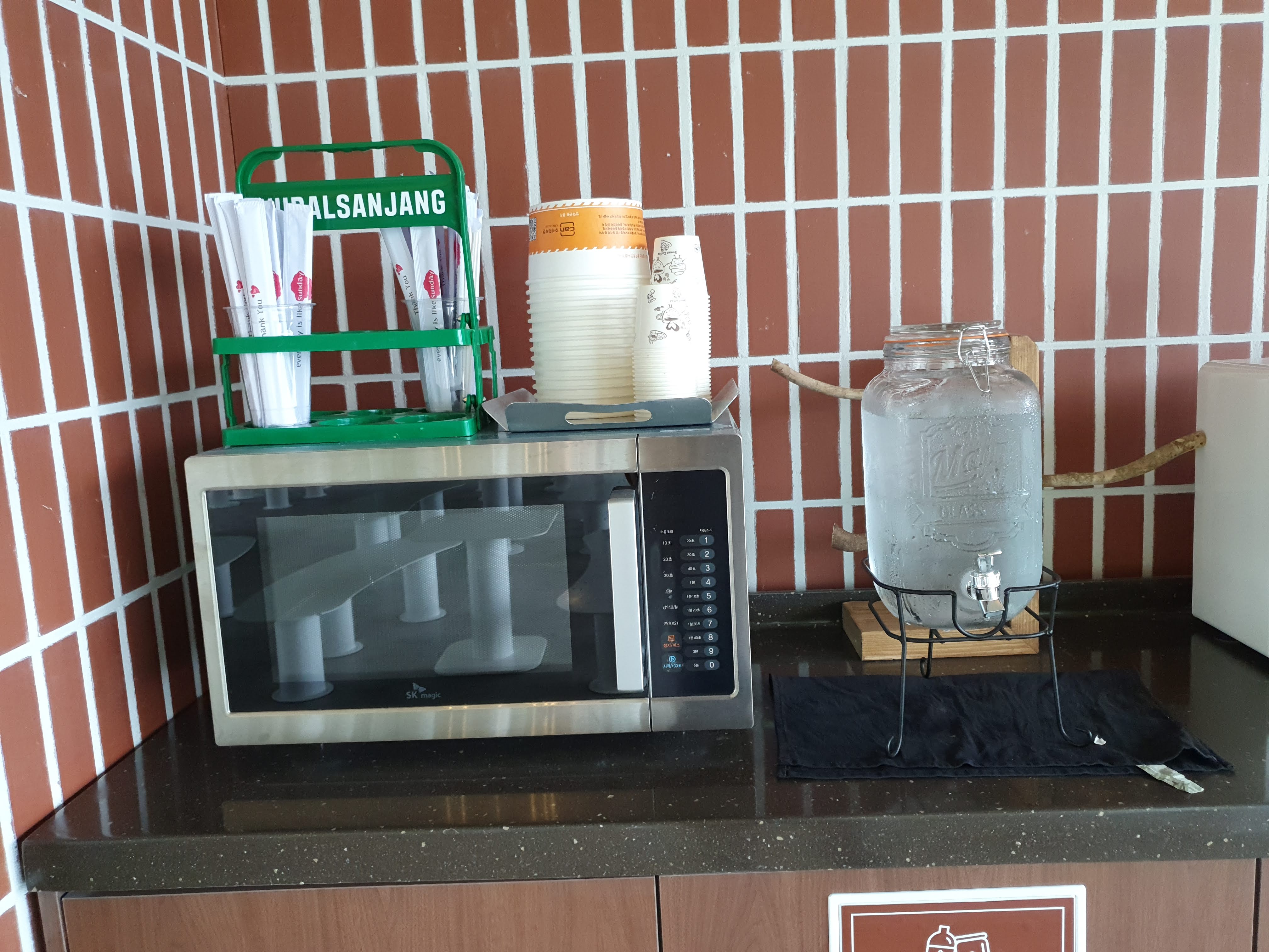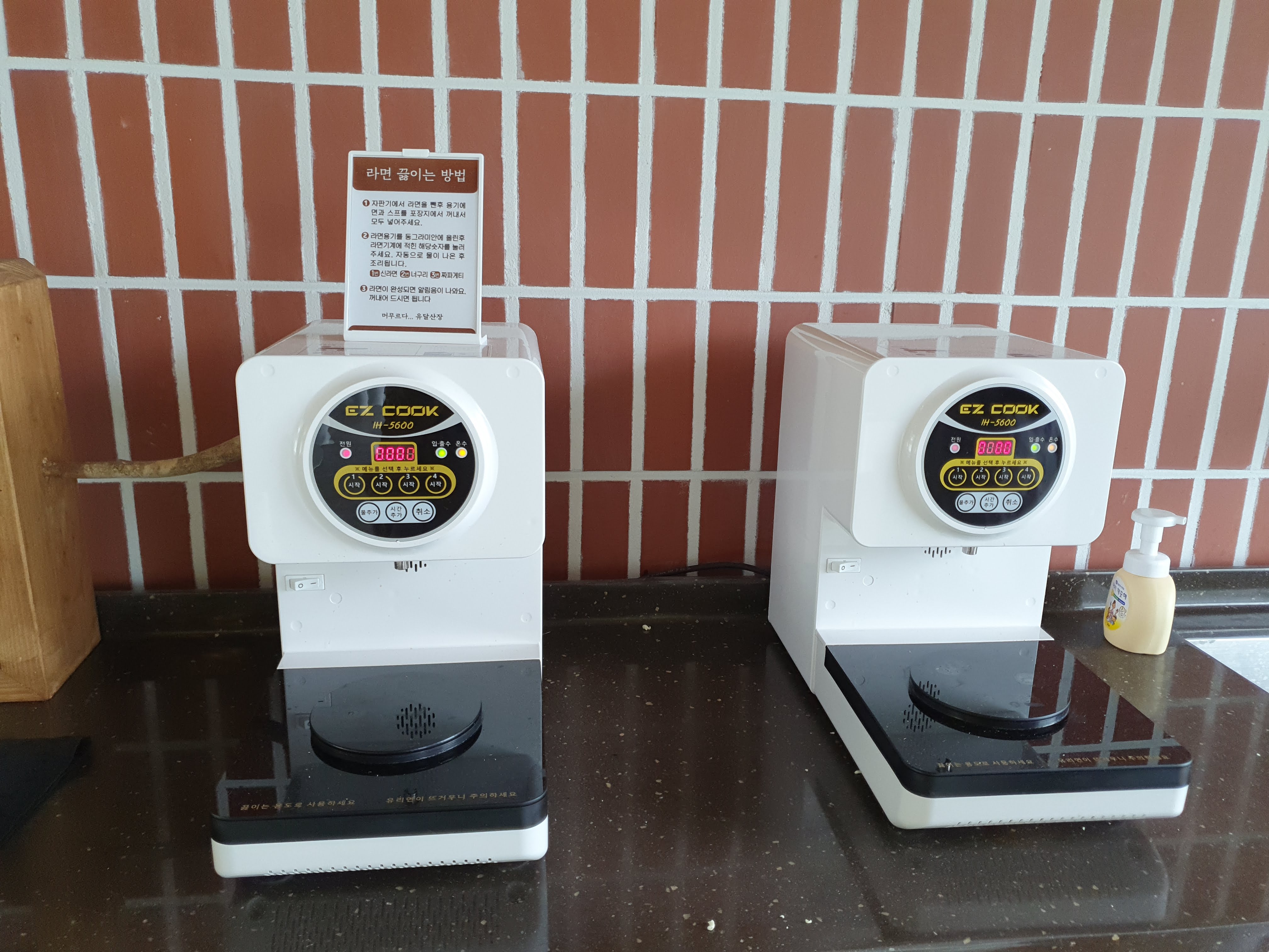 유달산장에서는 키오스크로 주문을 합니다. 옆에 라면 끓여 먹는 기계도 있습니다.