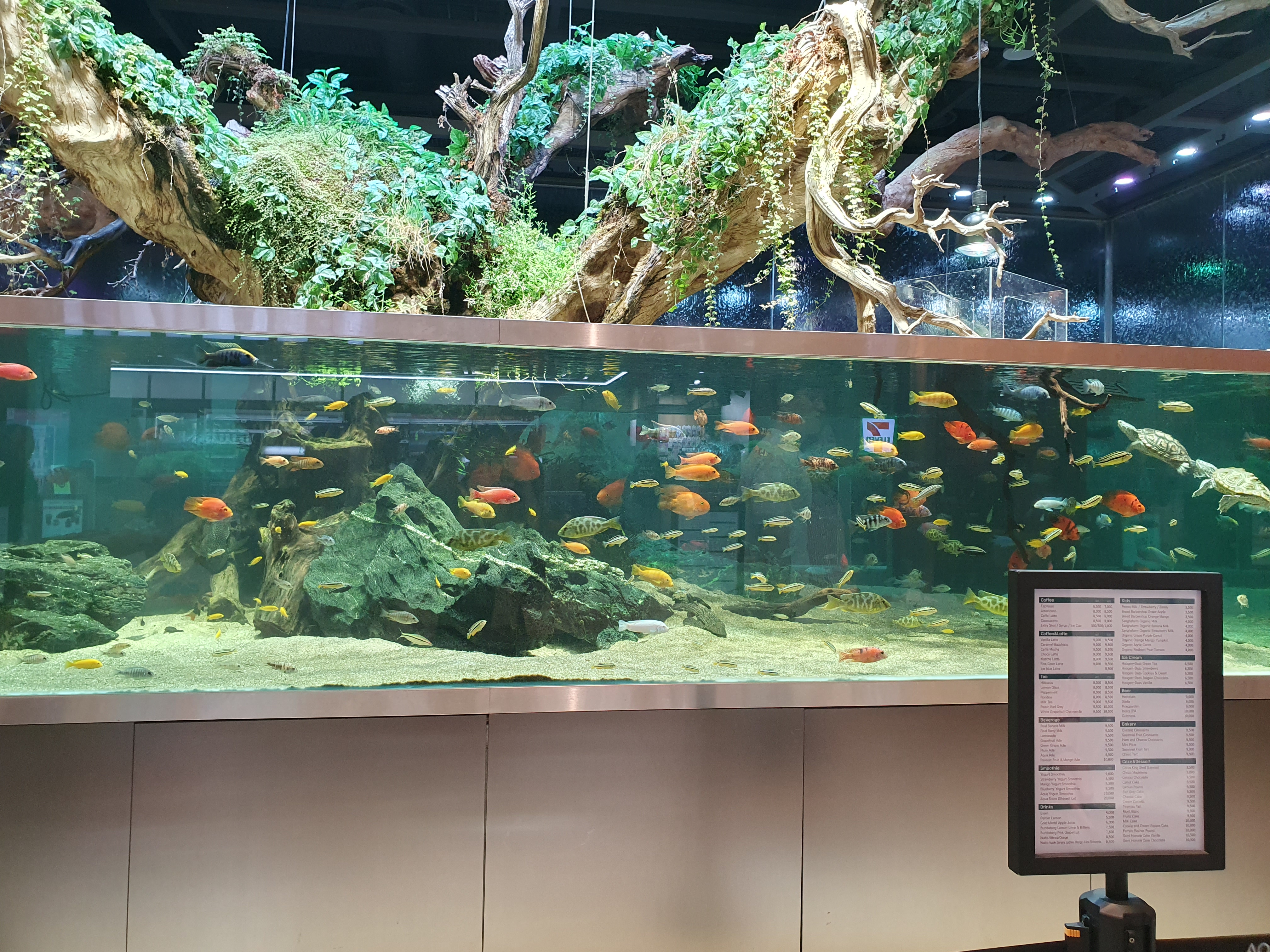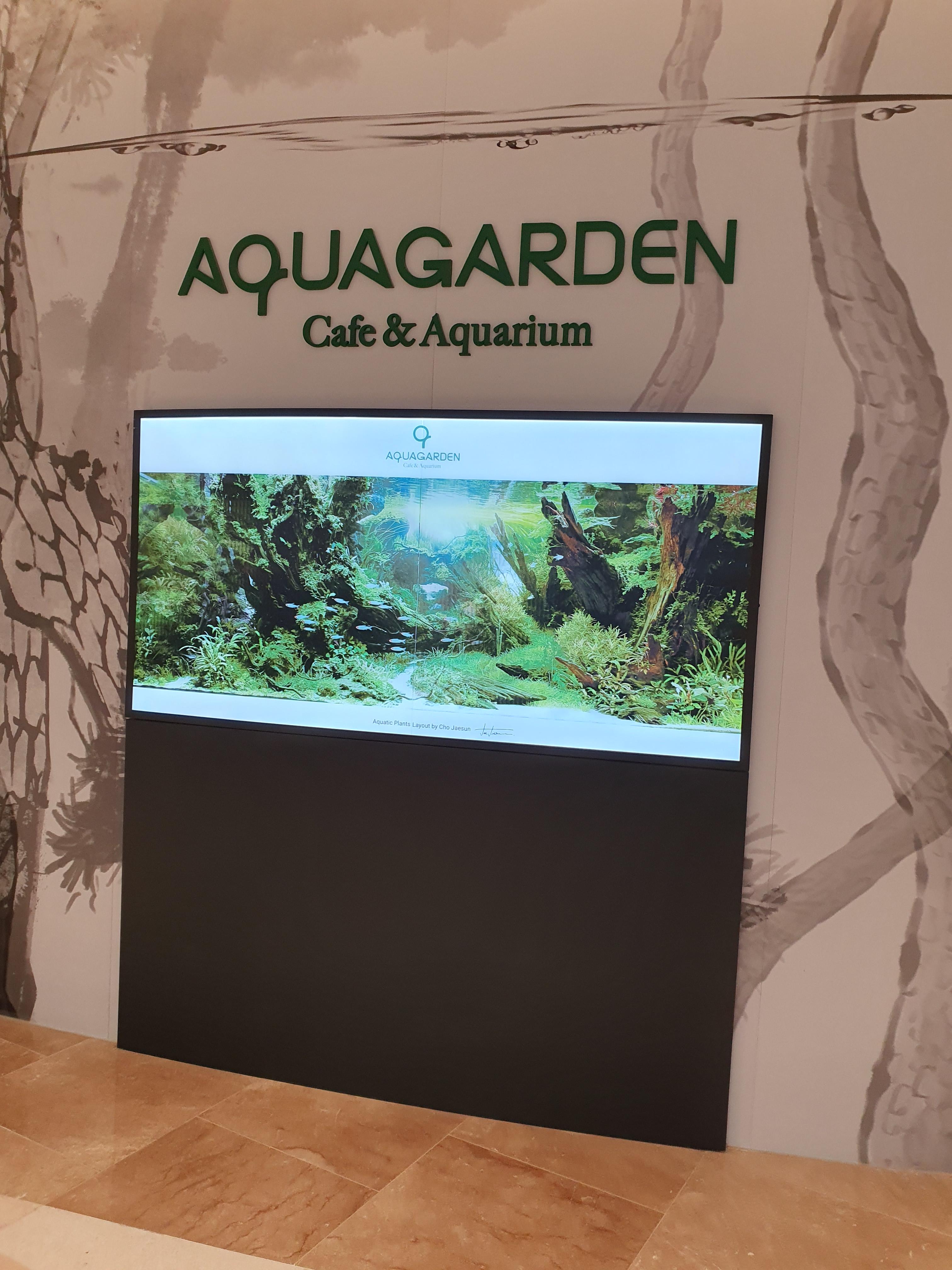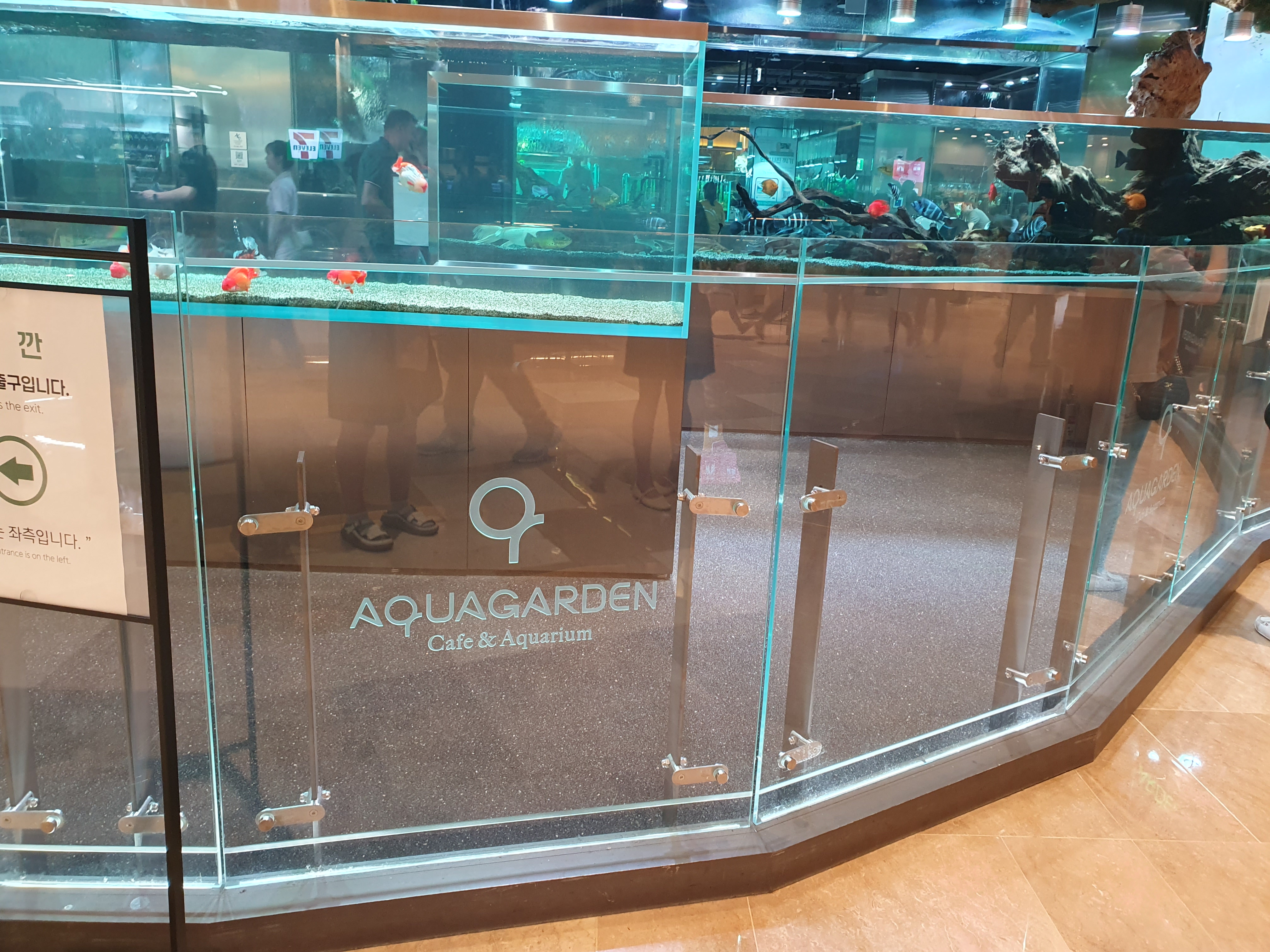 큰 수족관 앞에서 물고기를 보며 커피를 마시면 더 시원한 느낌이 드는 거 같습니다.