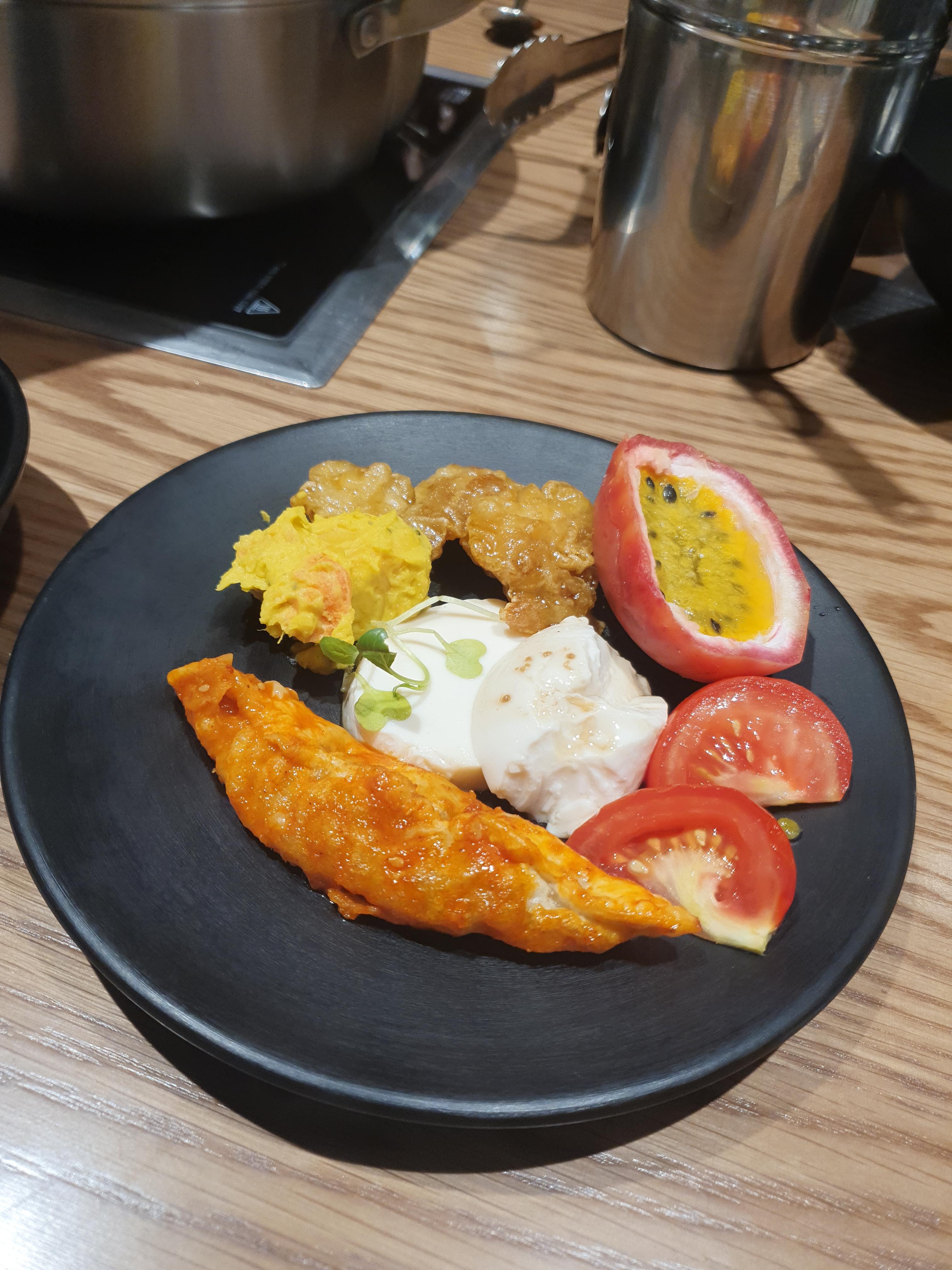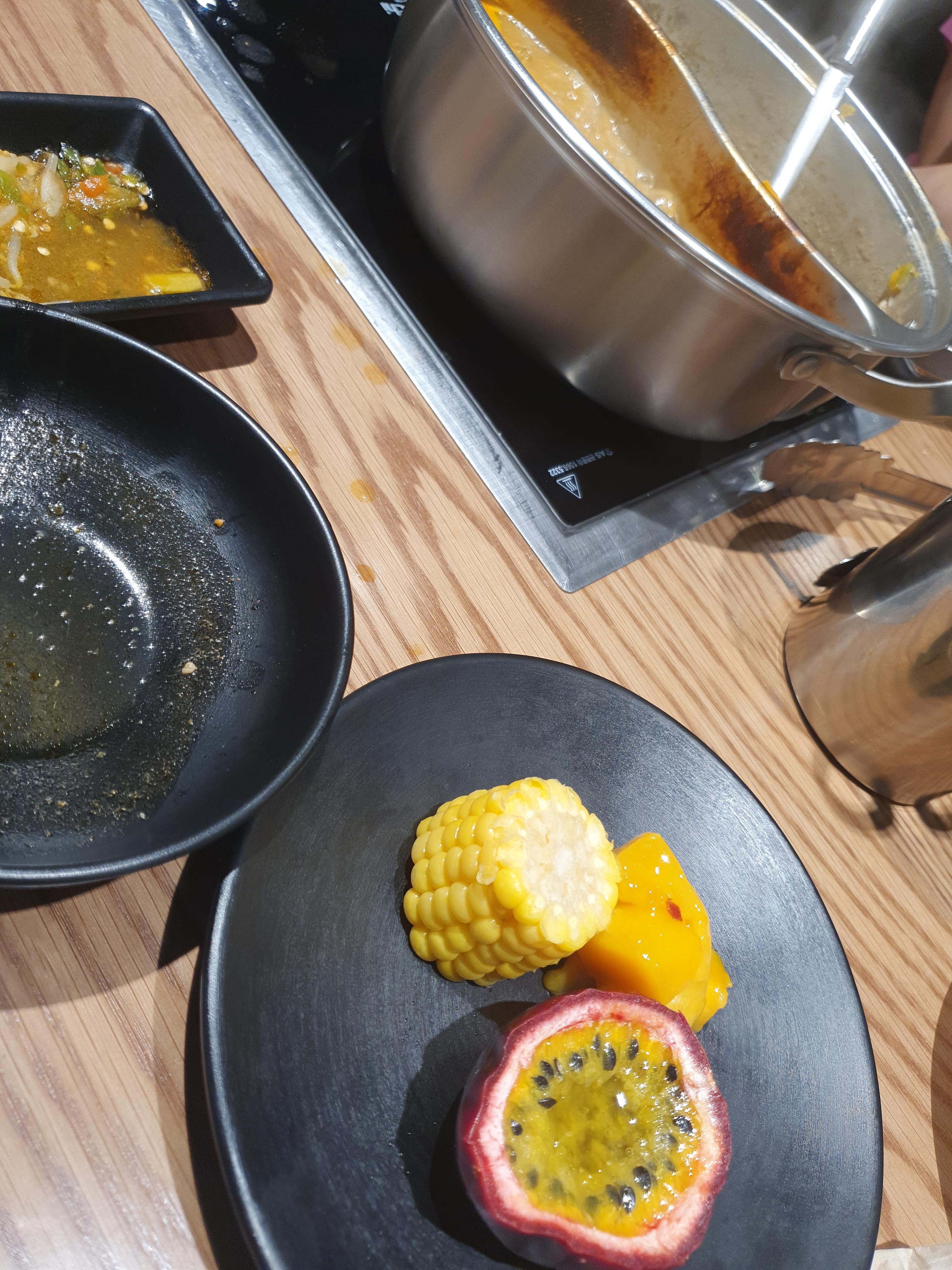 먼저 샐러드바에서 간단하게 입가심을 합니다. 샤브샤브집인데도 샐러드바가 풍성했습니다. 패션후르츠 열대과일이 새콤하니 맛있었습니다.