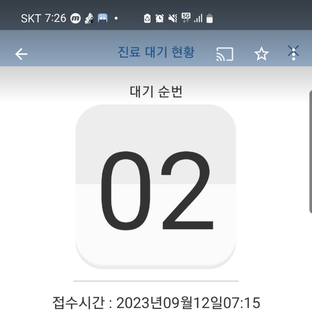 다행히 병원이 집에 가까워서 2번째로 접수를 했네요.