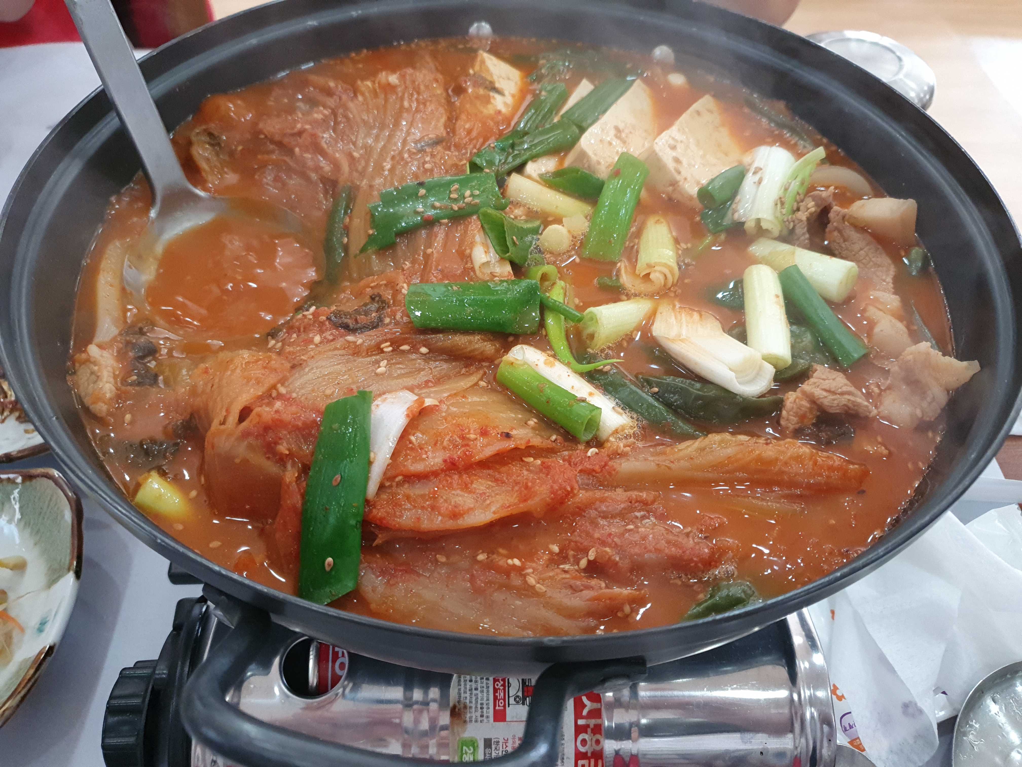 점심특선으로 돼지고기묵은지찜 먹었습니다. 목포에 있는 별미코다리전문점이었는데 묵은지찜 국물이 시원합니다.