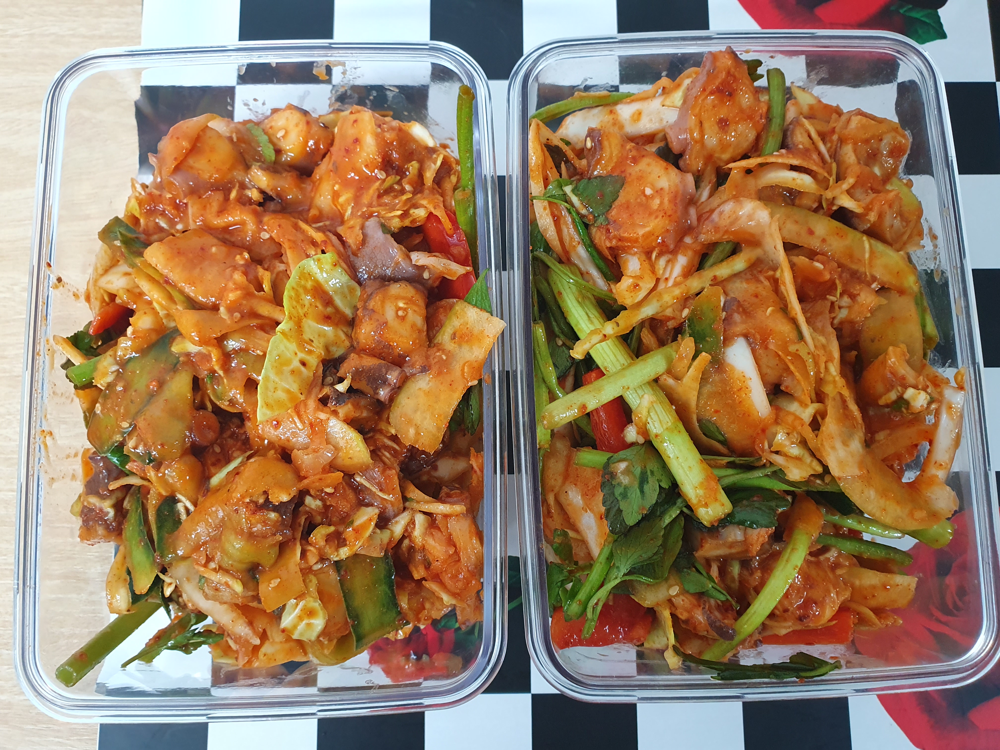 마지막에 미나리를 한 웅큼만 넣어서 무쳐 주면 봄맛을 느낄 수 있네요^^