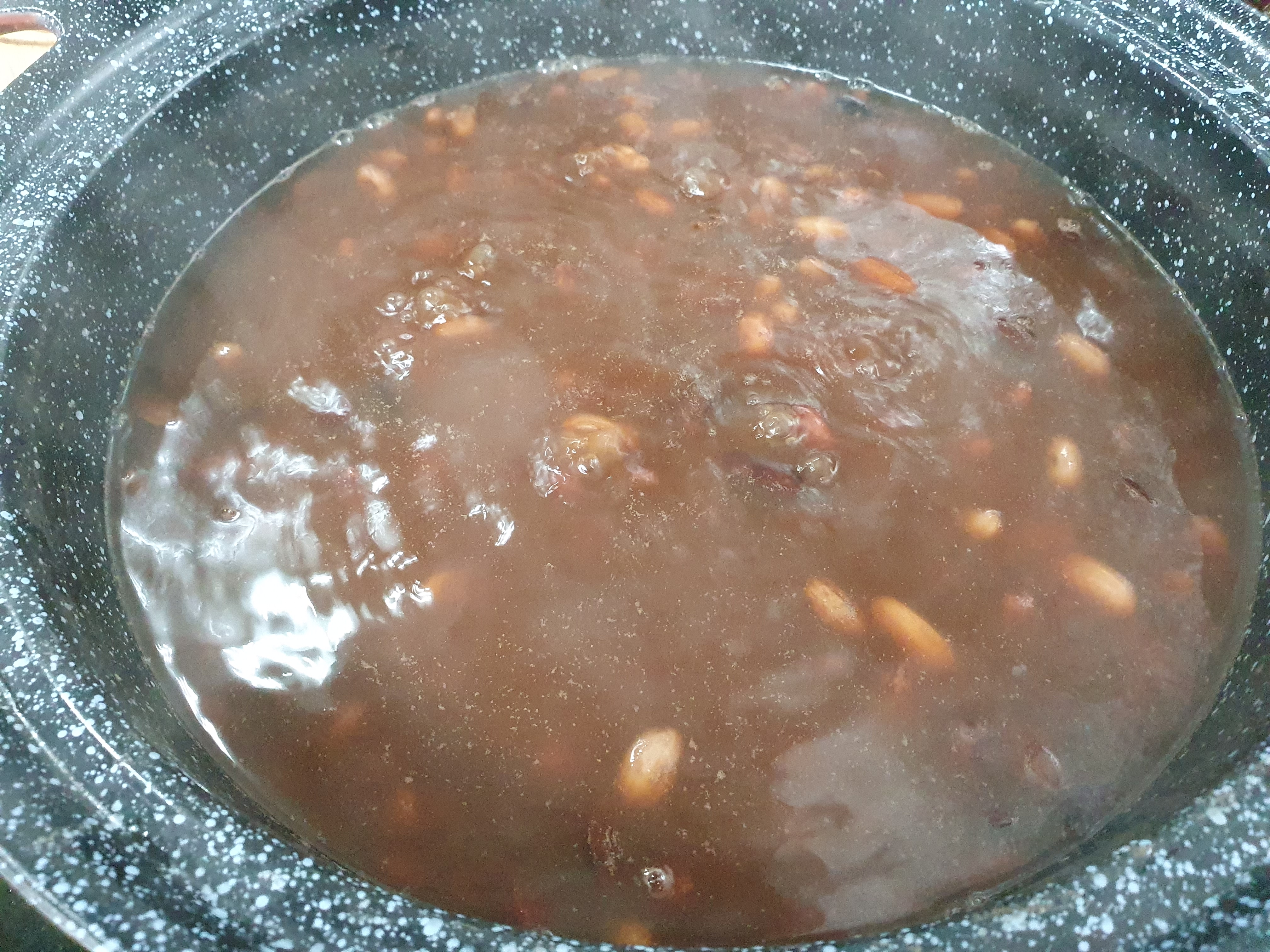 다 끓인 육수에 불린 강낭콩을 넣고 삶아 줍니다.