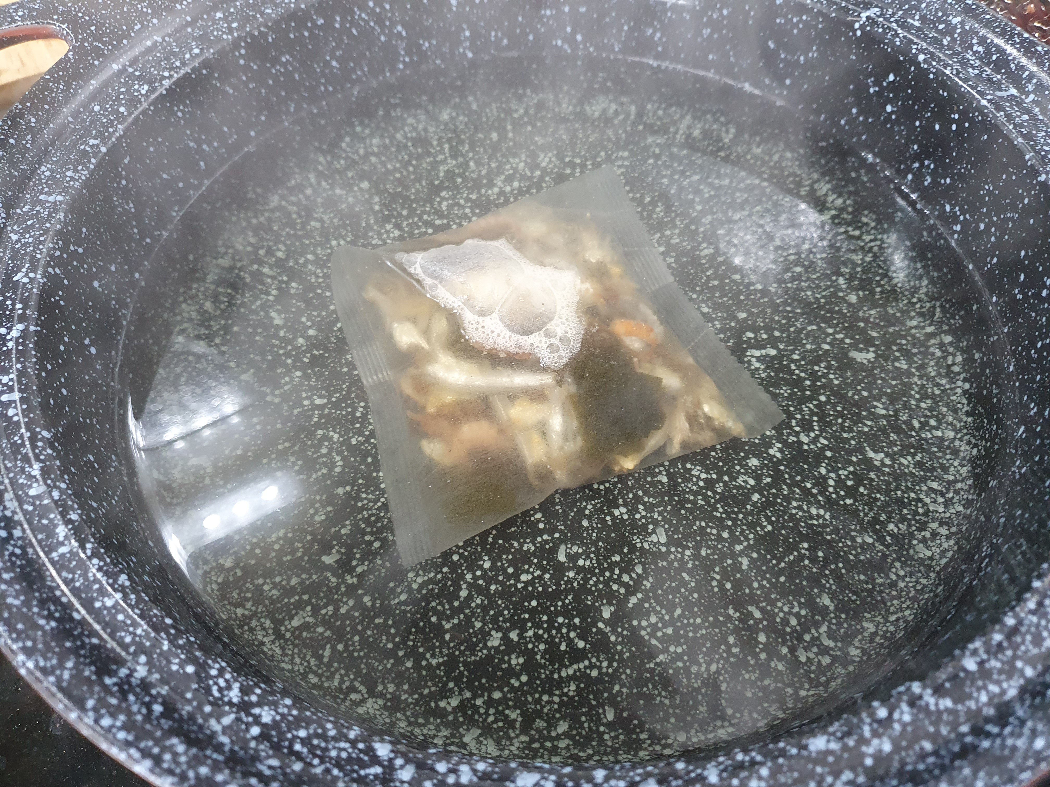 육수티벧으로 육수 국물을 만들어 줍니다.