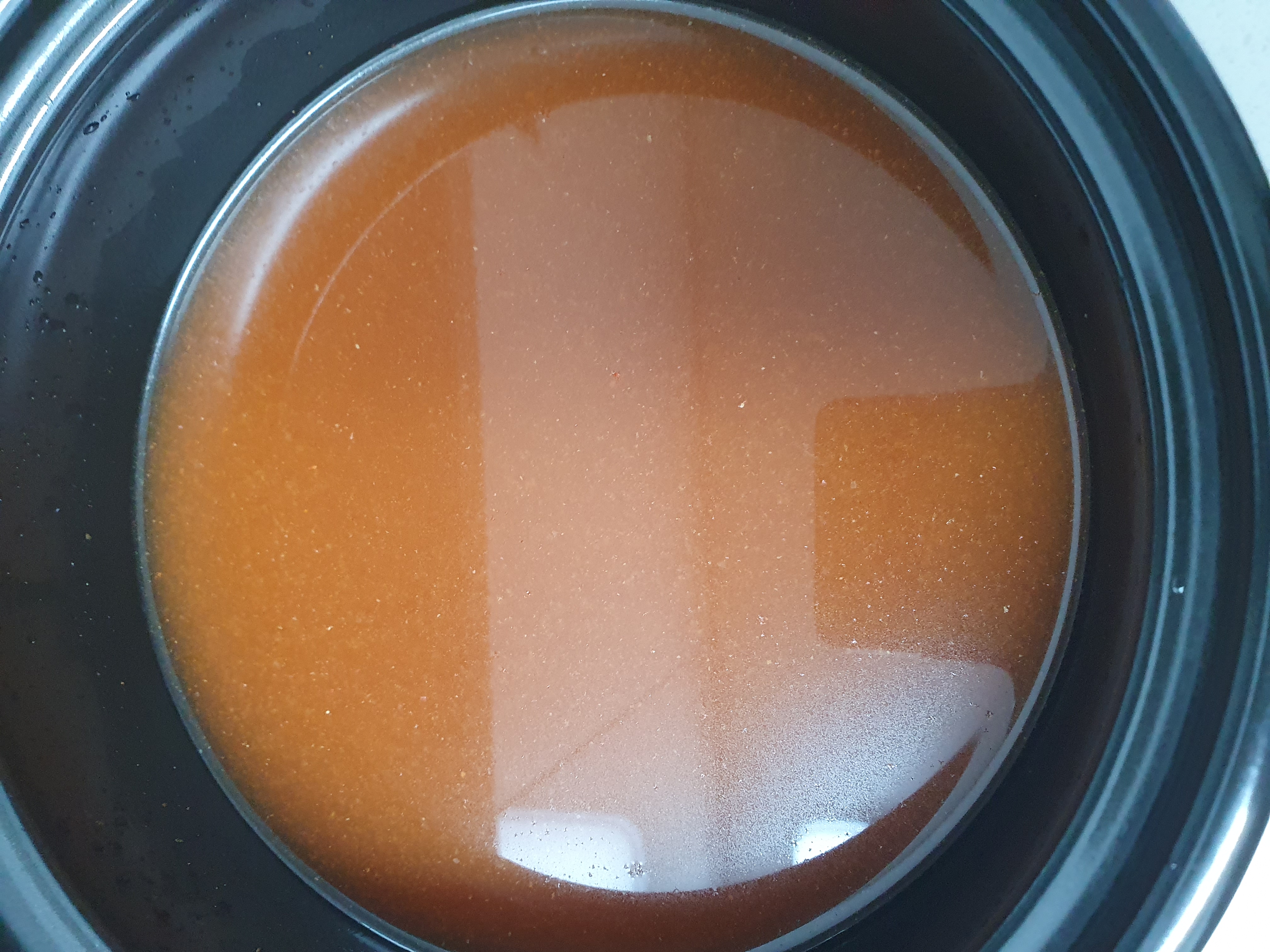 뚝배기에 복분자고추장과 집된장을 한 수저씩 넣어서 풀고