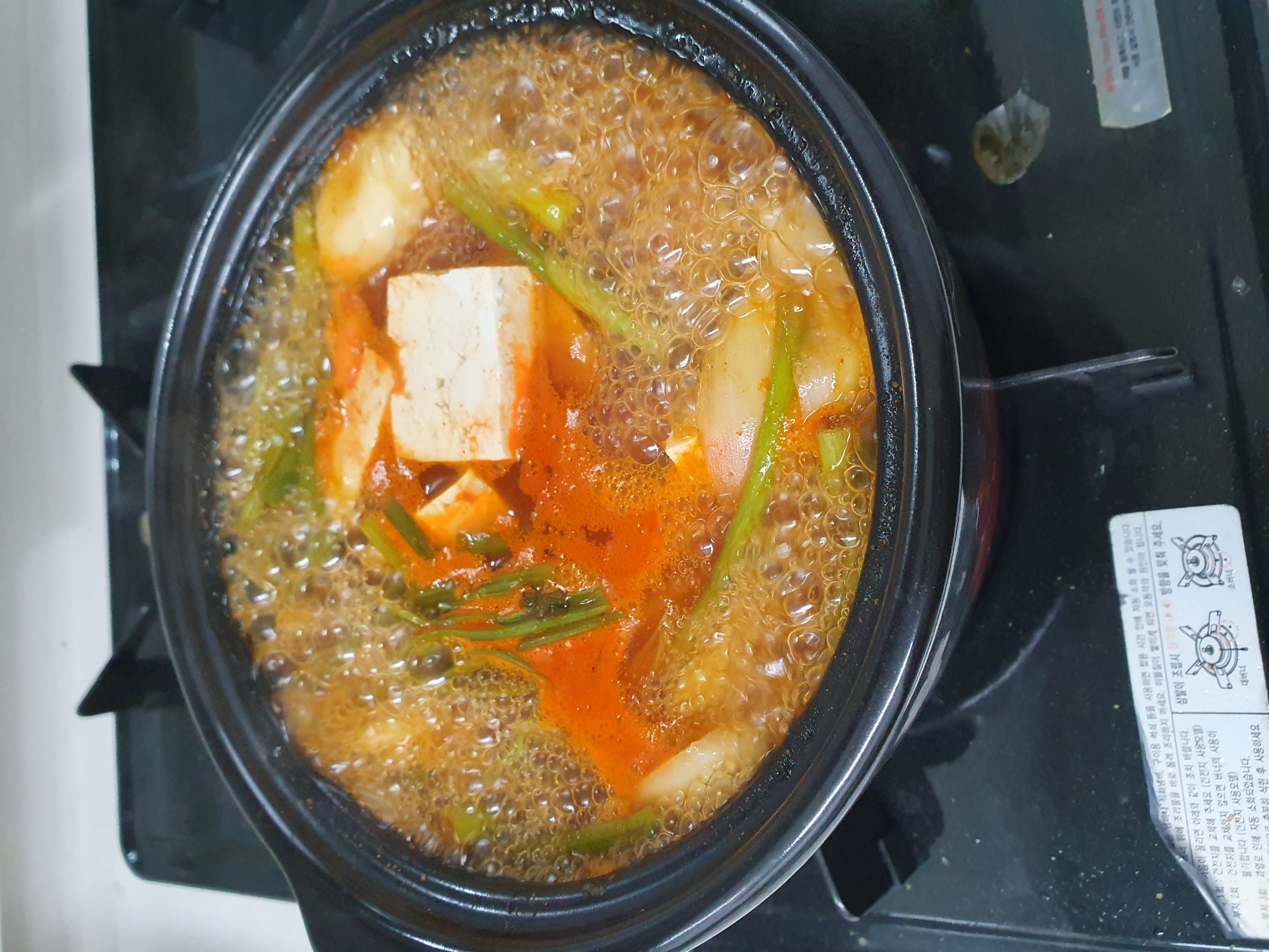된장찌개가 센 불에서 한 번 끓어 오르면 간을 맞추면 됩니다.