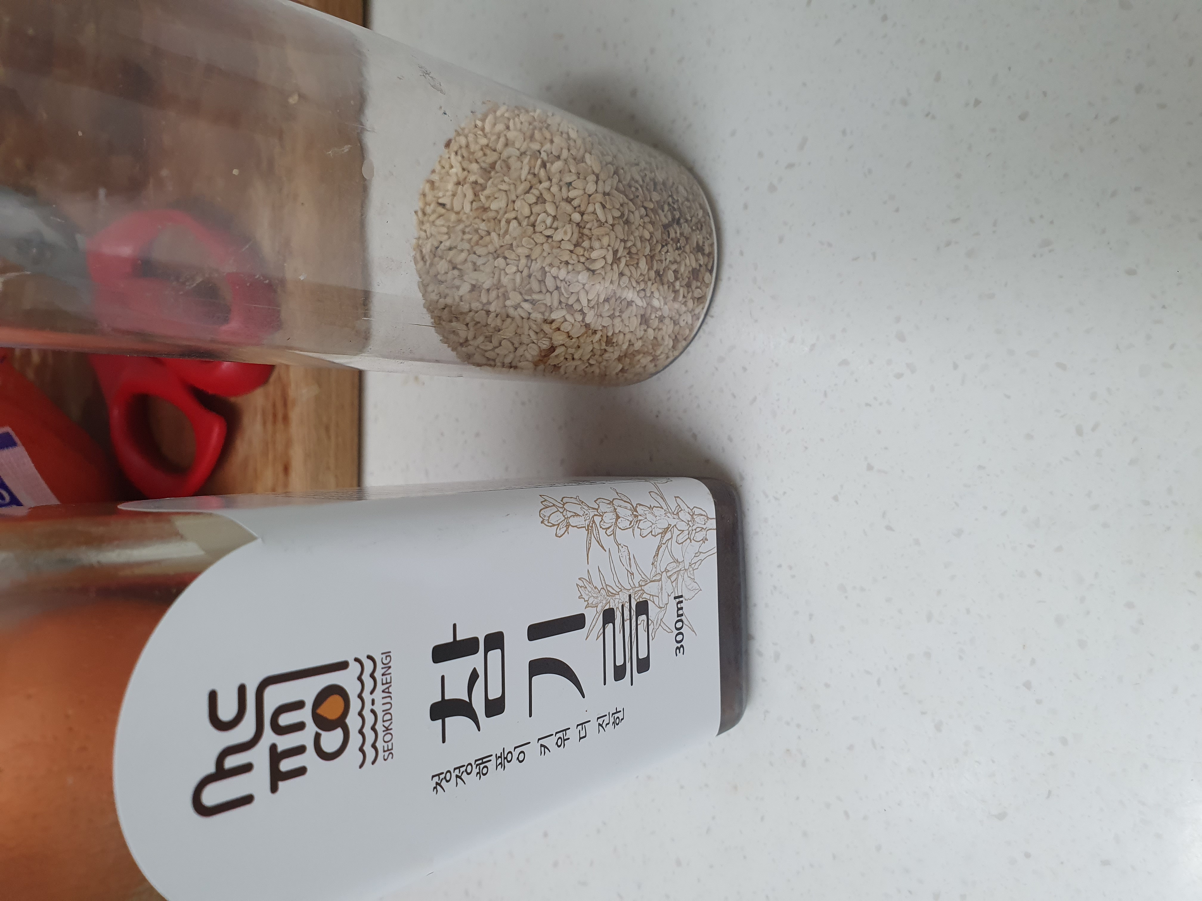 3번의 볶아줌을 하고 가스불을 끈 다음에 통깨와 참기를을 넣고 섞어 줍니다.