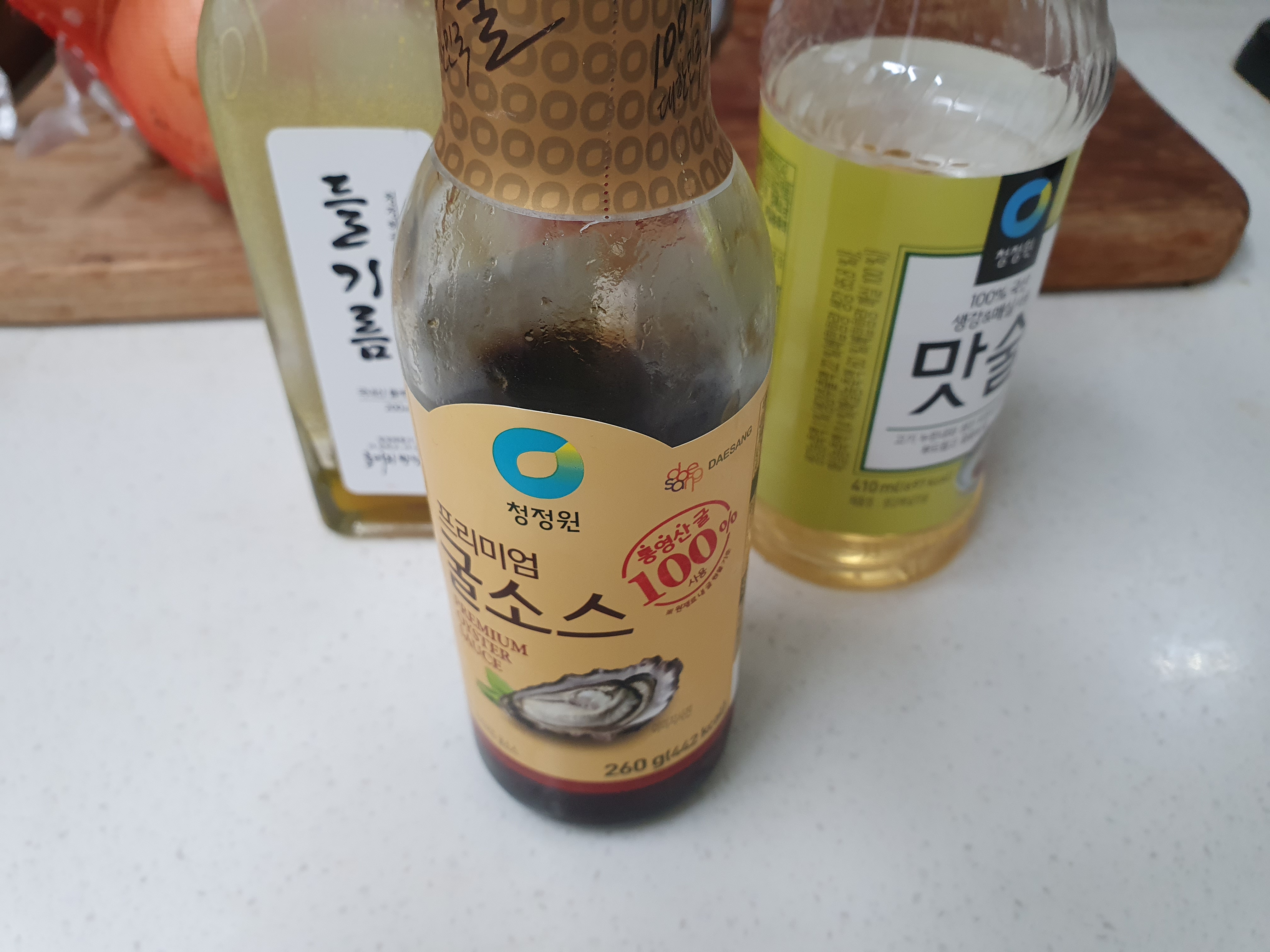 여기에 들기름, 굴소스를 넣고 조금 더 볶습니다.