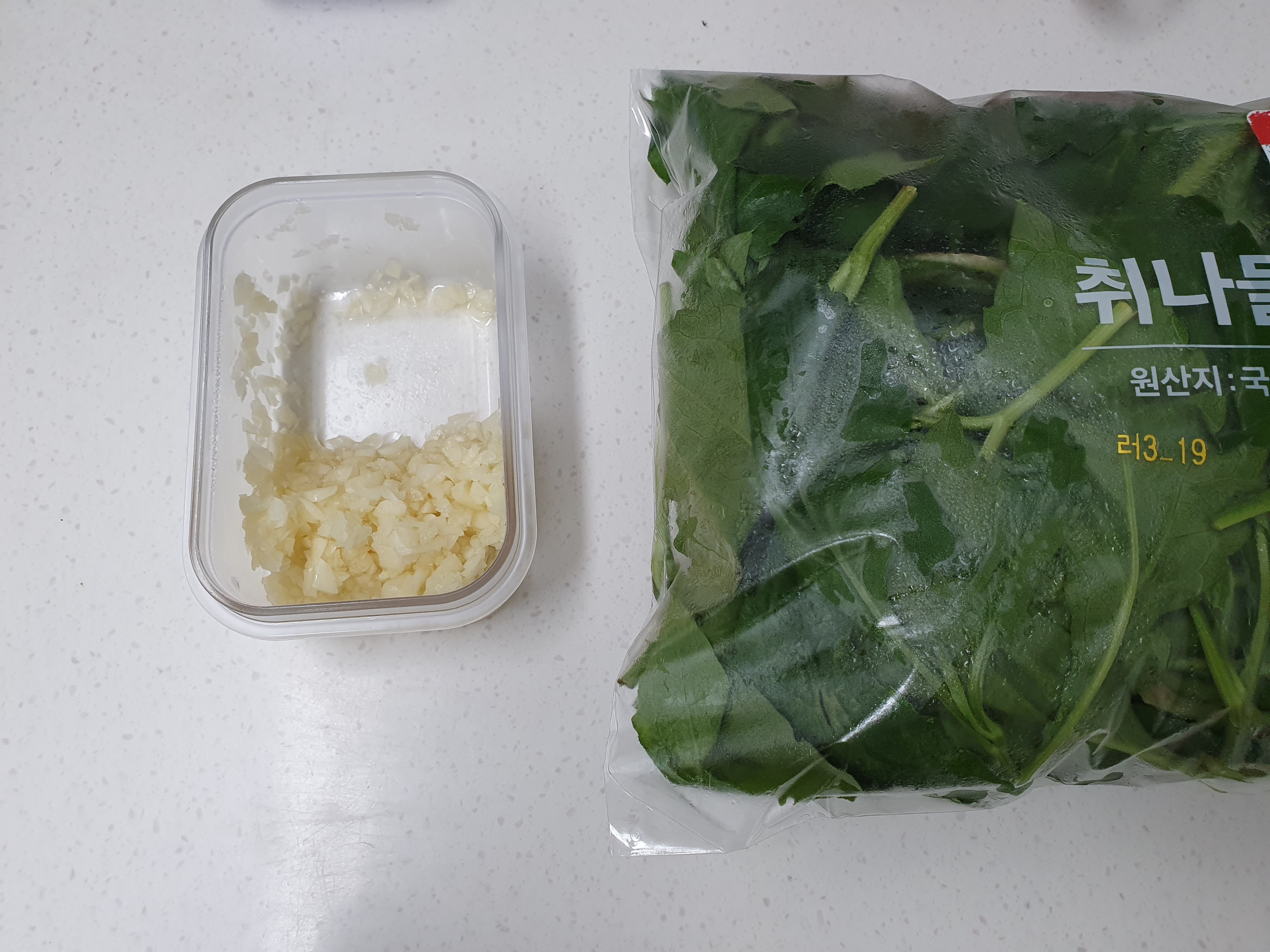 재료는 간단합니다. 마늘과 취나물을 준비합니다.