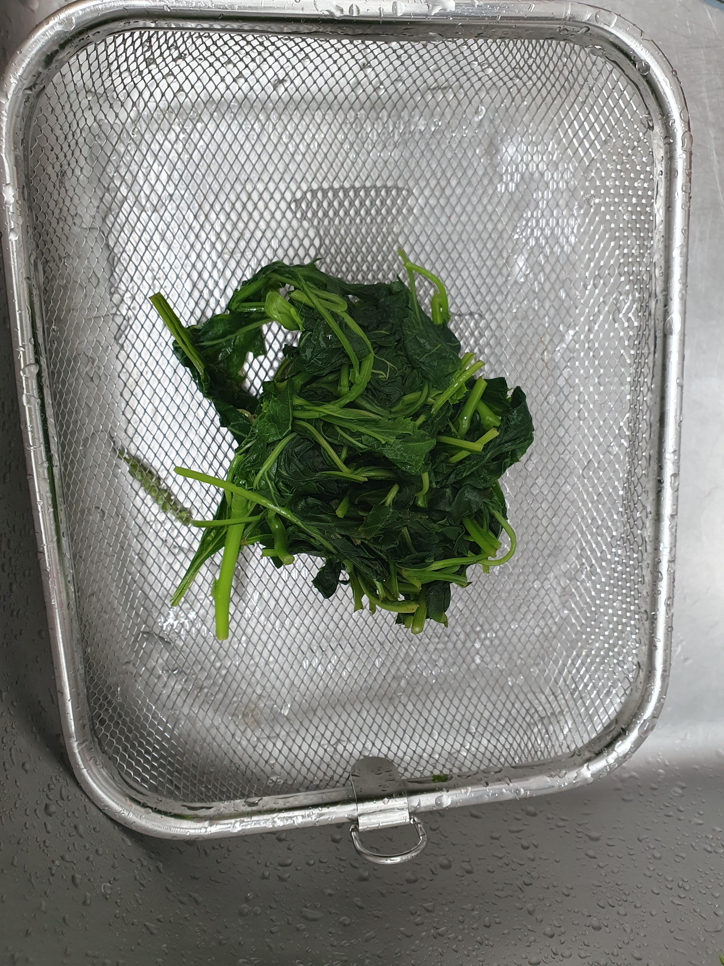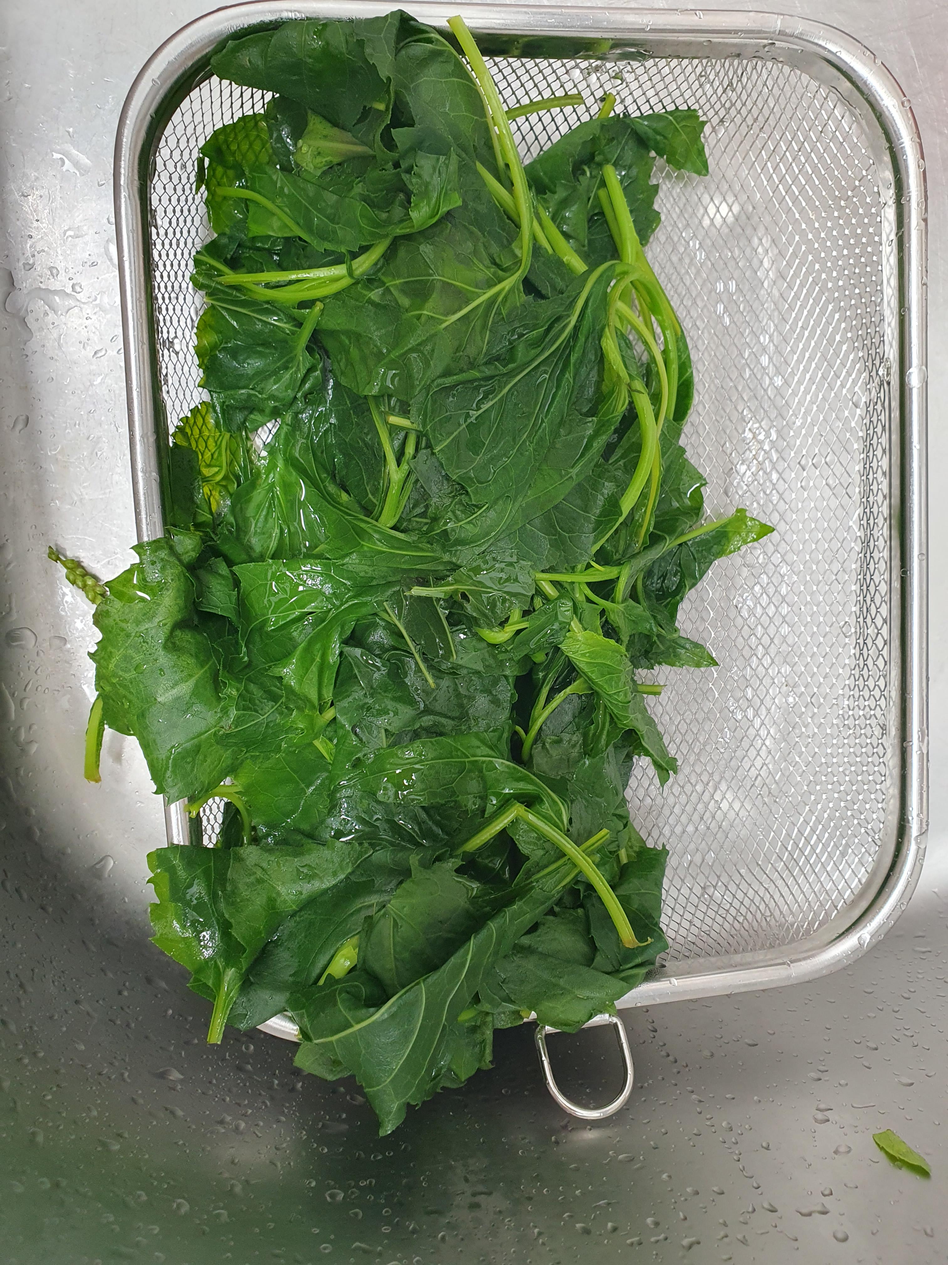 끓는 물에 숨이 죽을 정도로 데쳐 줍니다.