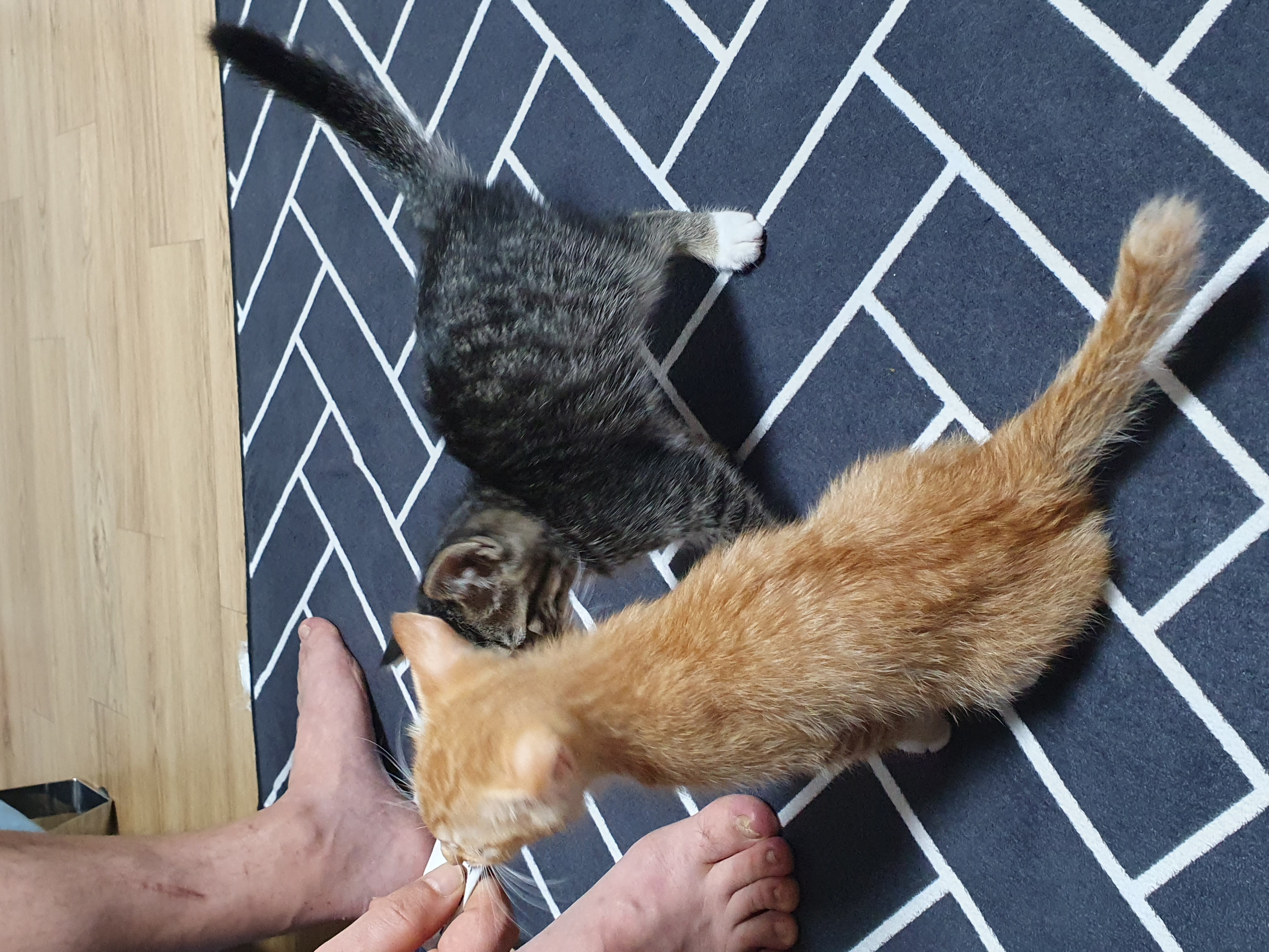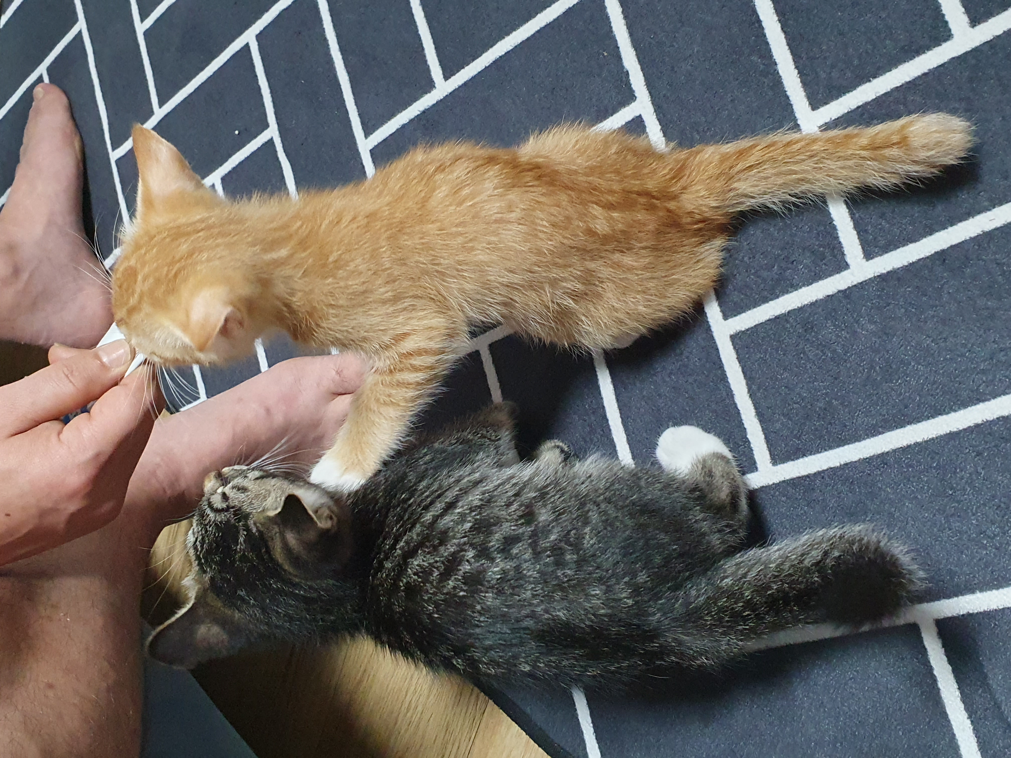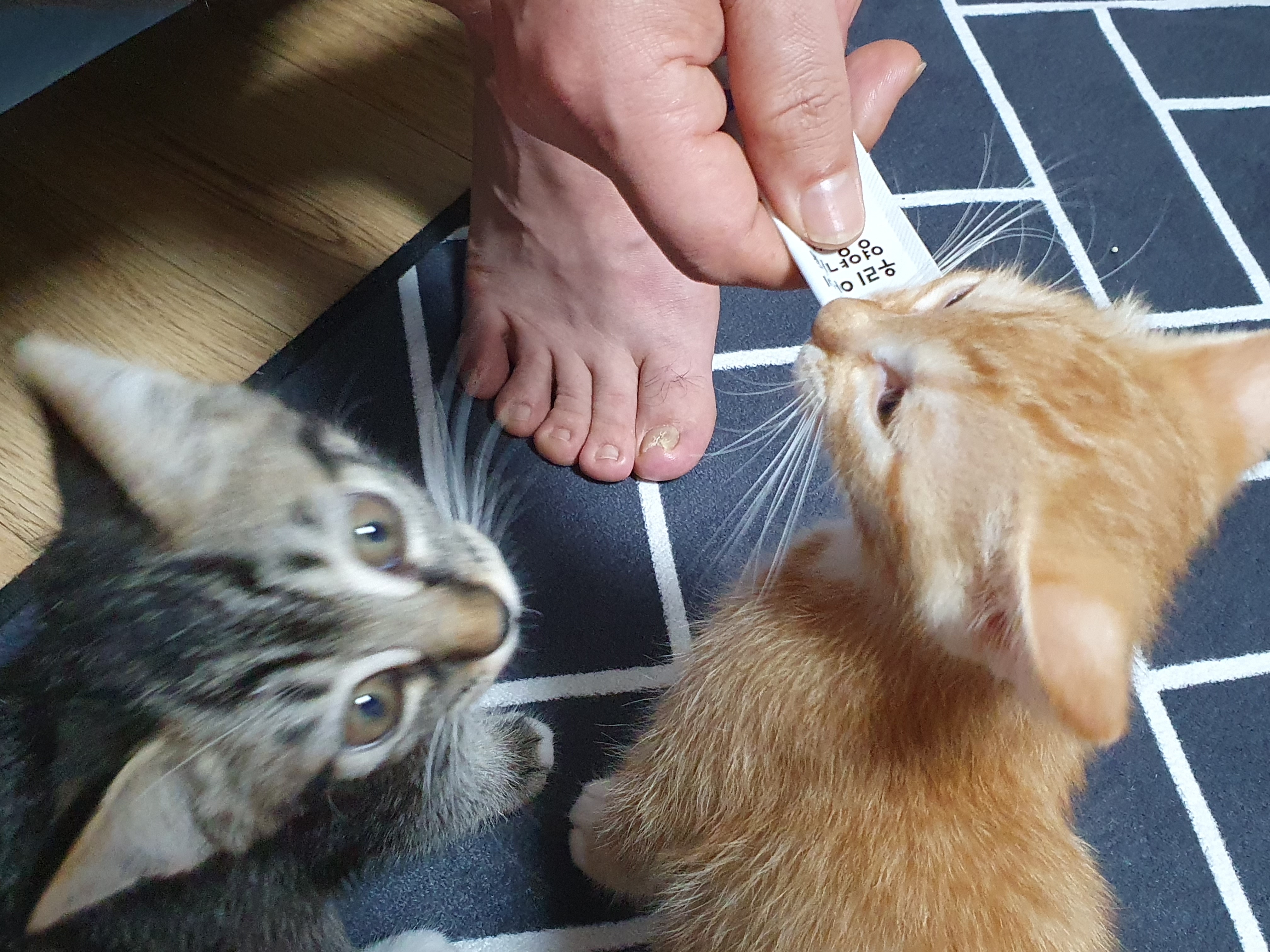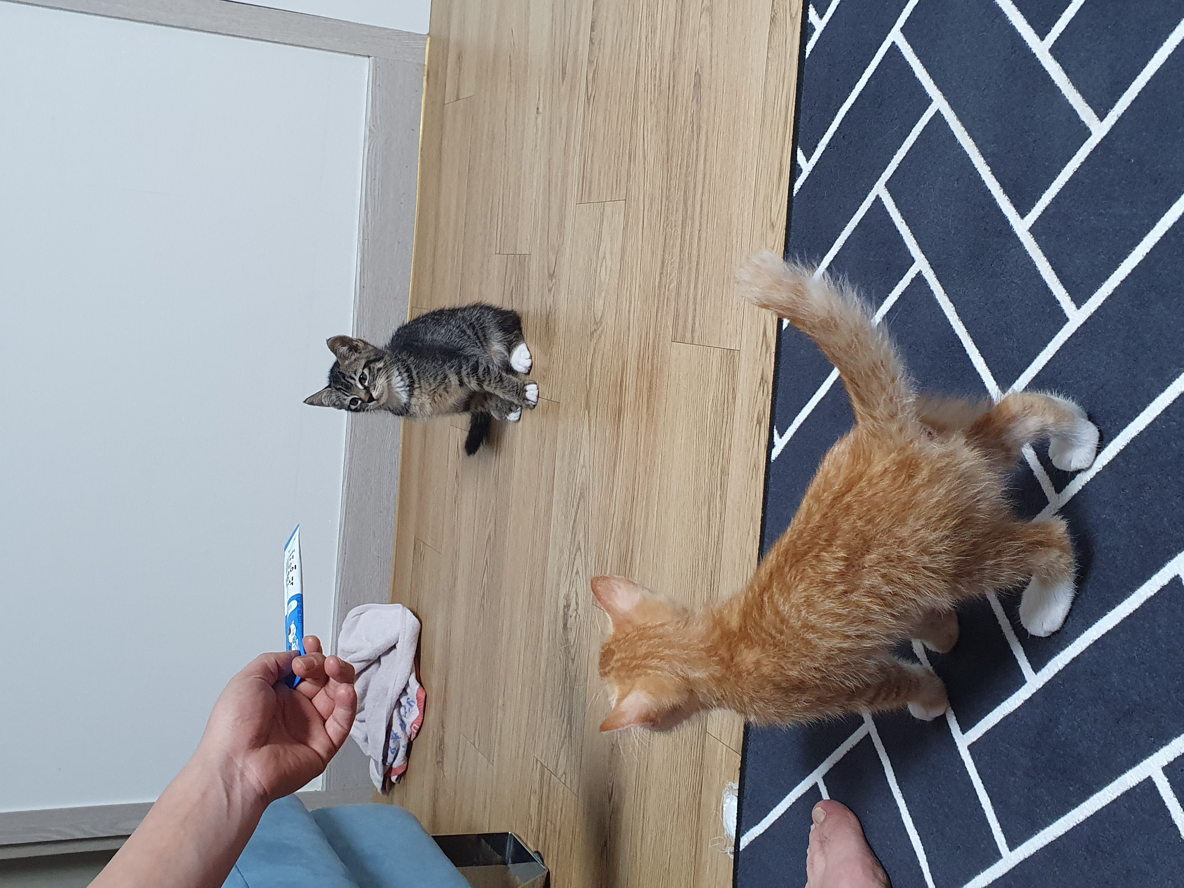 송이가 먼저 앉았습니다. 남집사가 송이한테 먼저 츄르를 주려고 합니다.