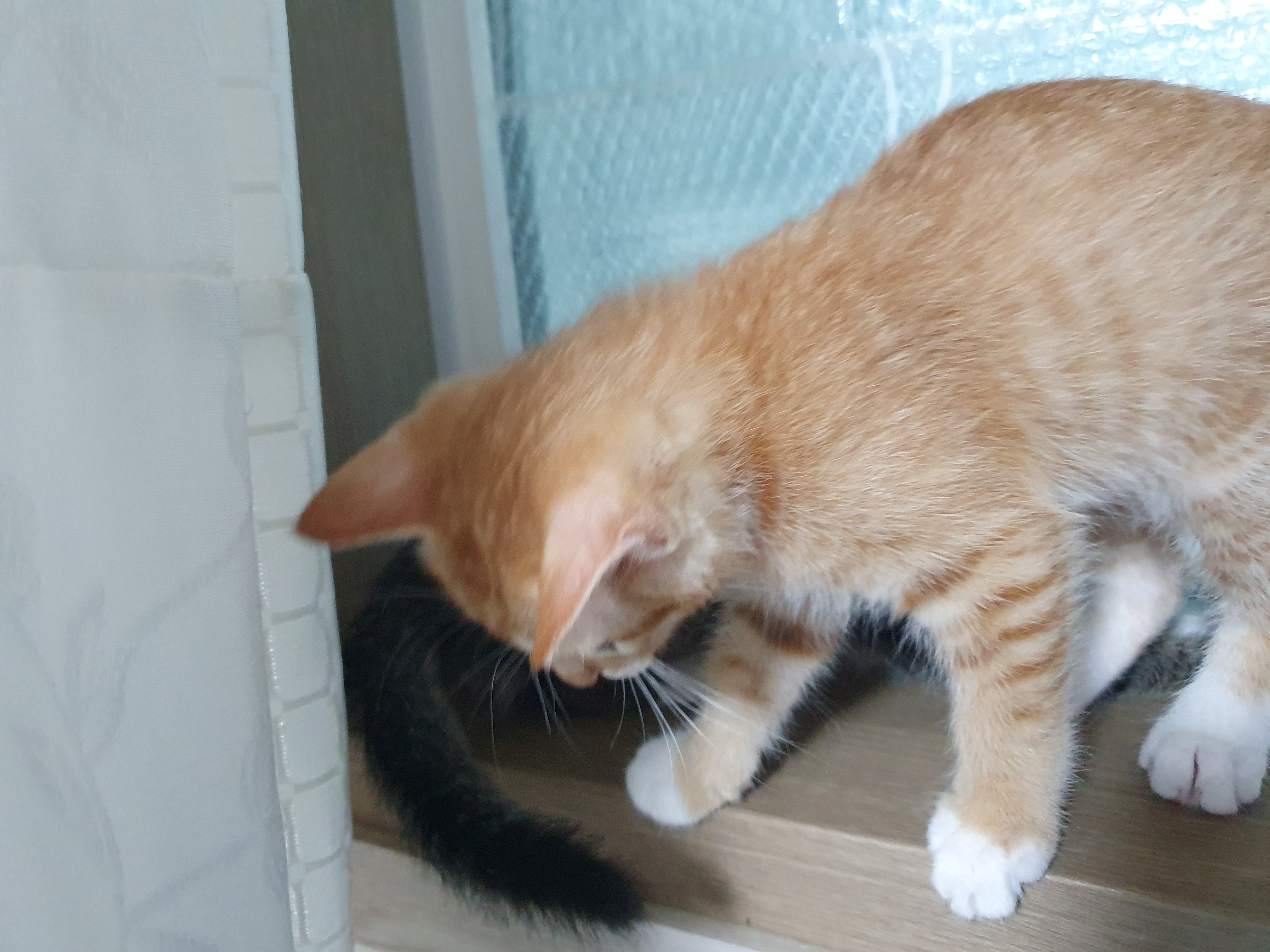 이때, 샘난 새옹이가 먼저 남집사쪽으로 가서 앉습니다. 먼저 츄르를 먹게 된 새옹
